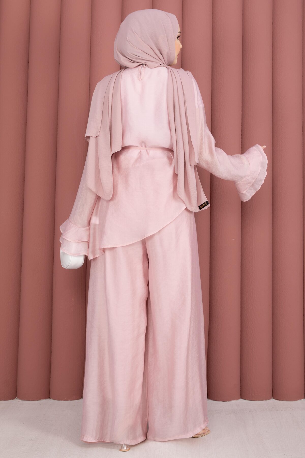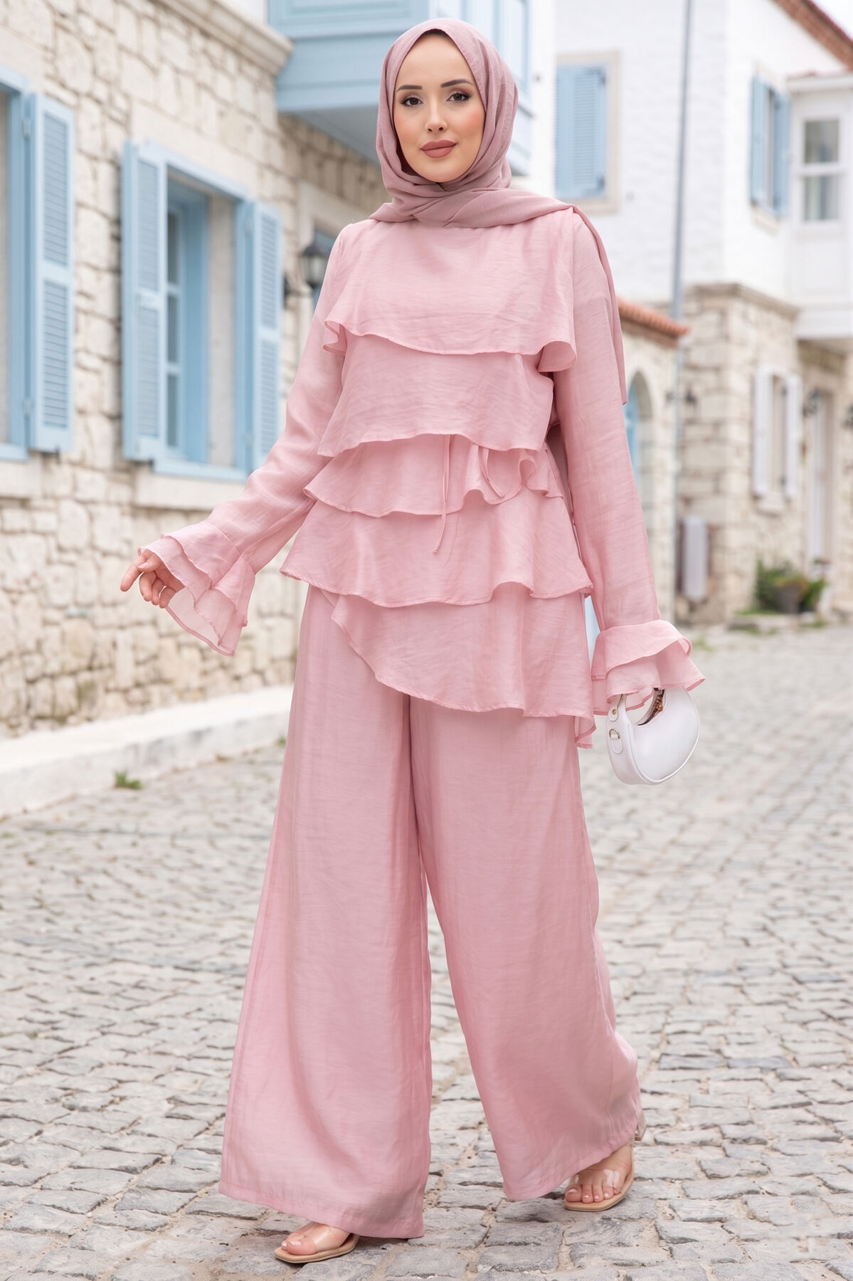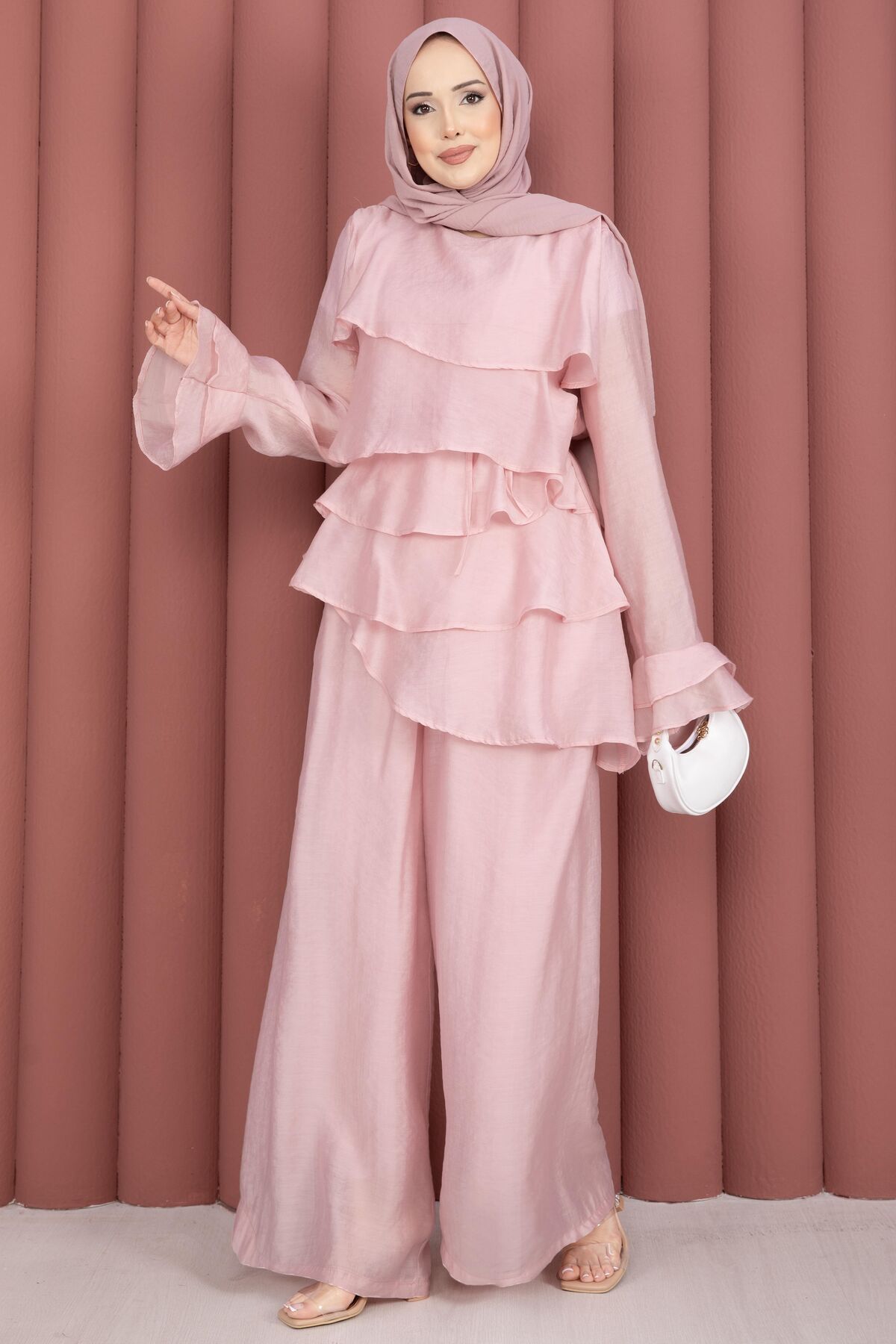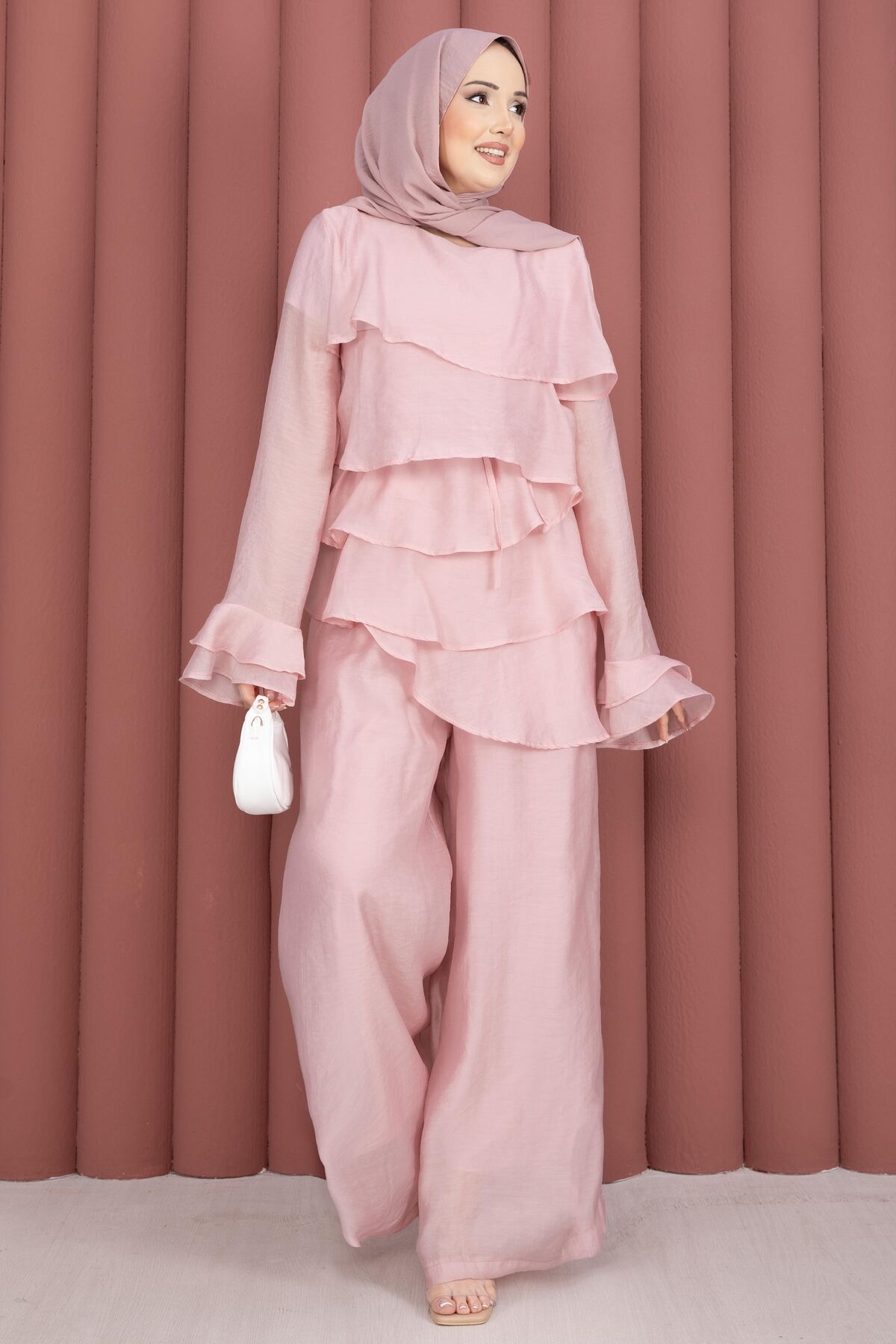 Kat Kat Fırfırlı Tunik Pantolon İkili Takım Pembe