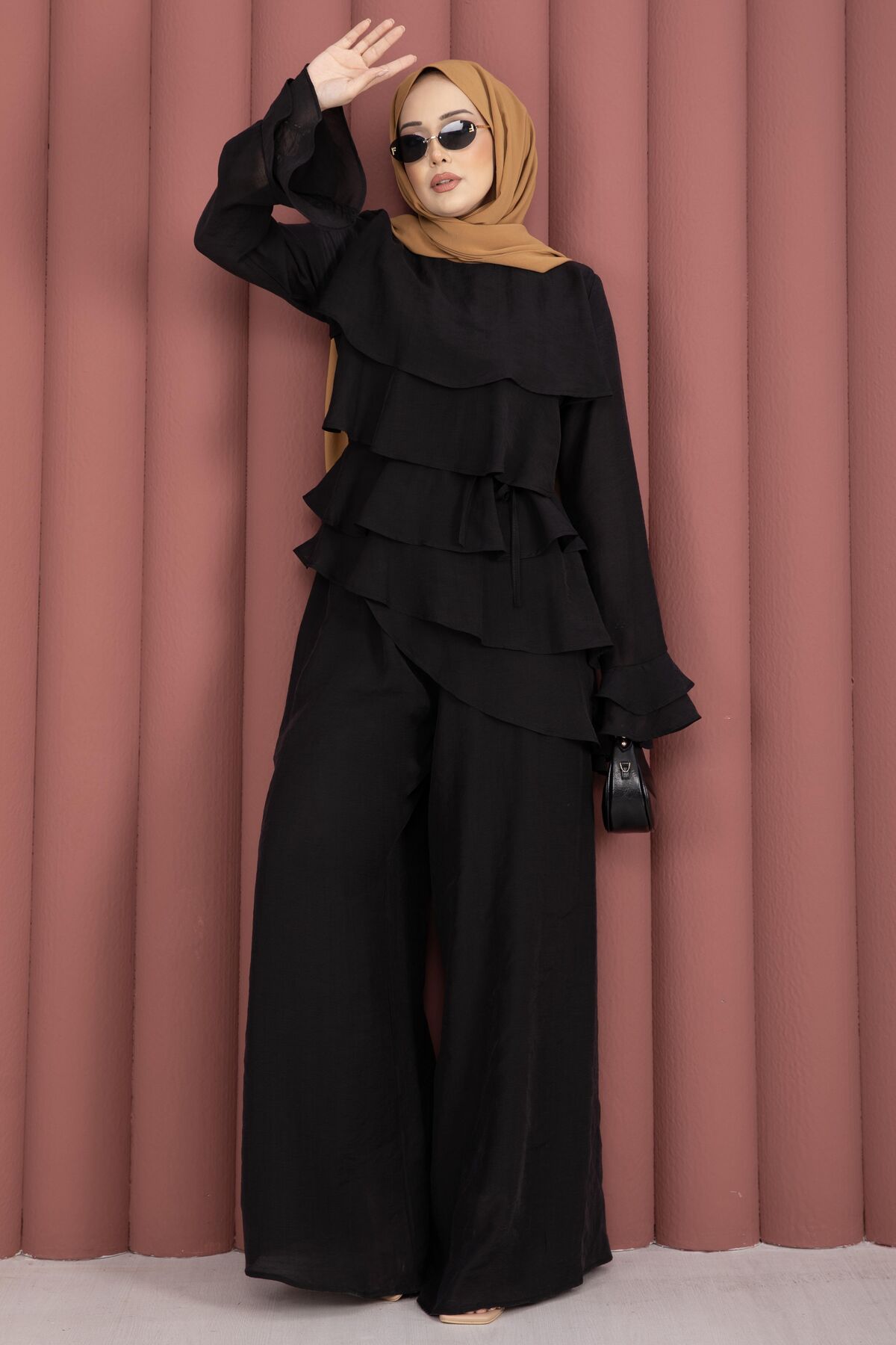 Kat Kat Fırfırlı Tunik Pantolon İkili Takım Siyah Yorumları