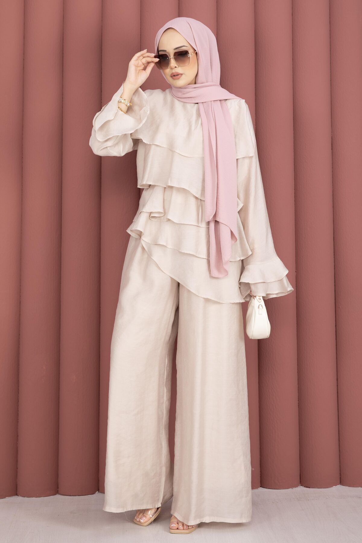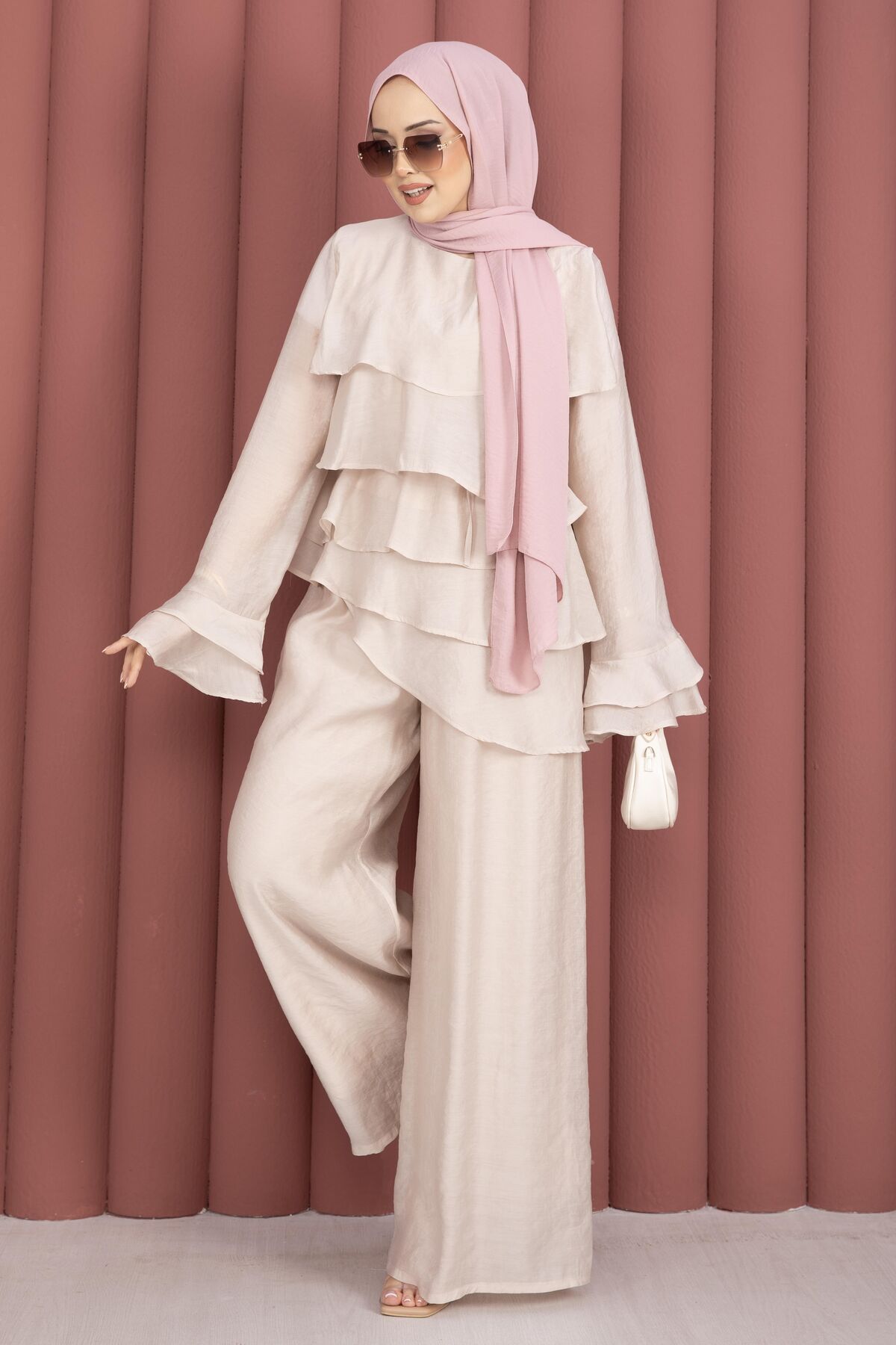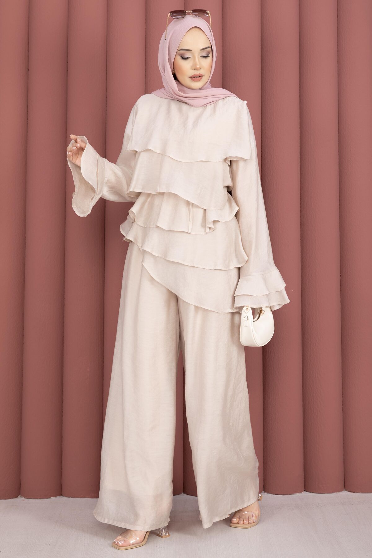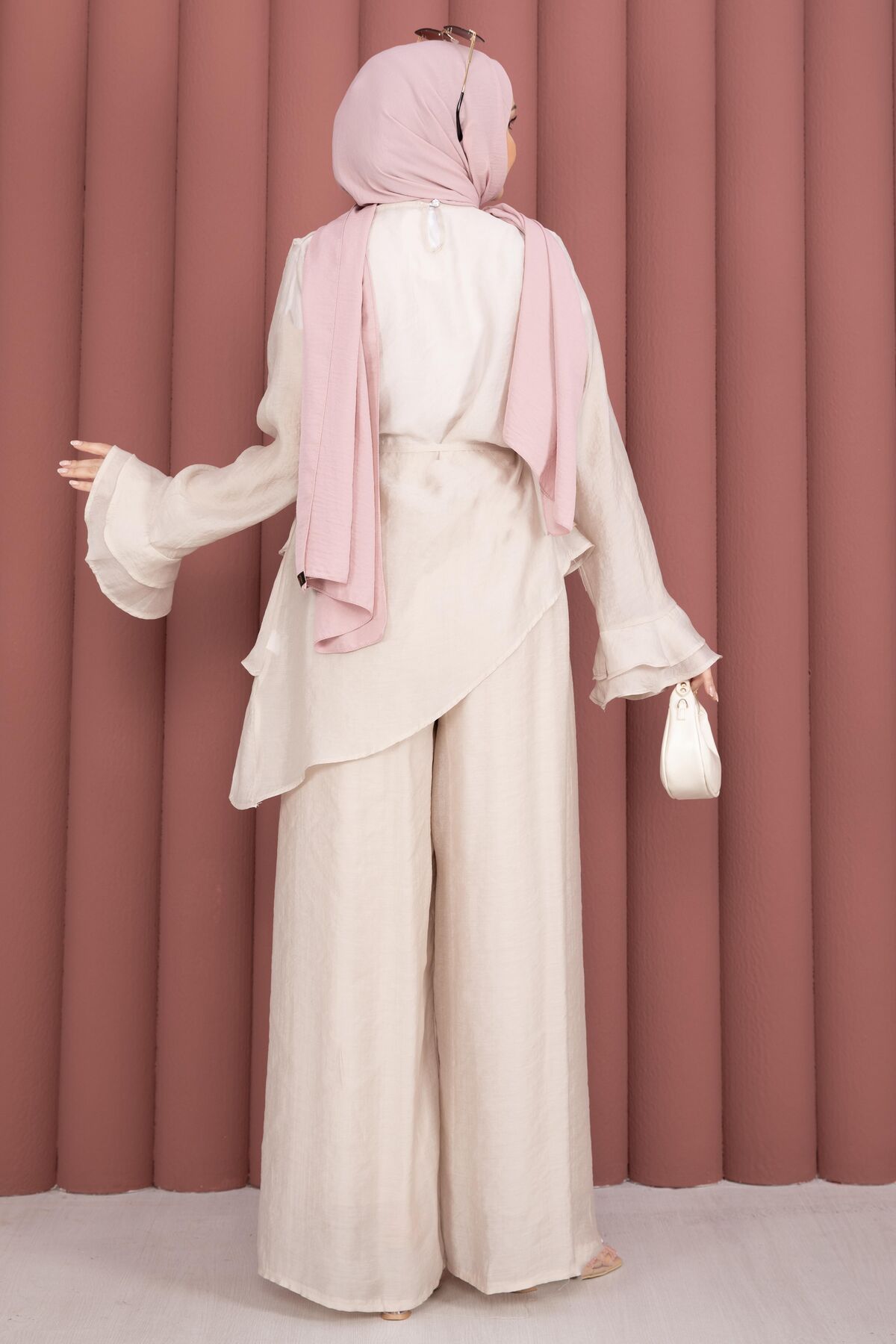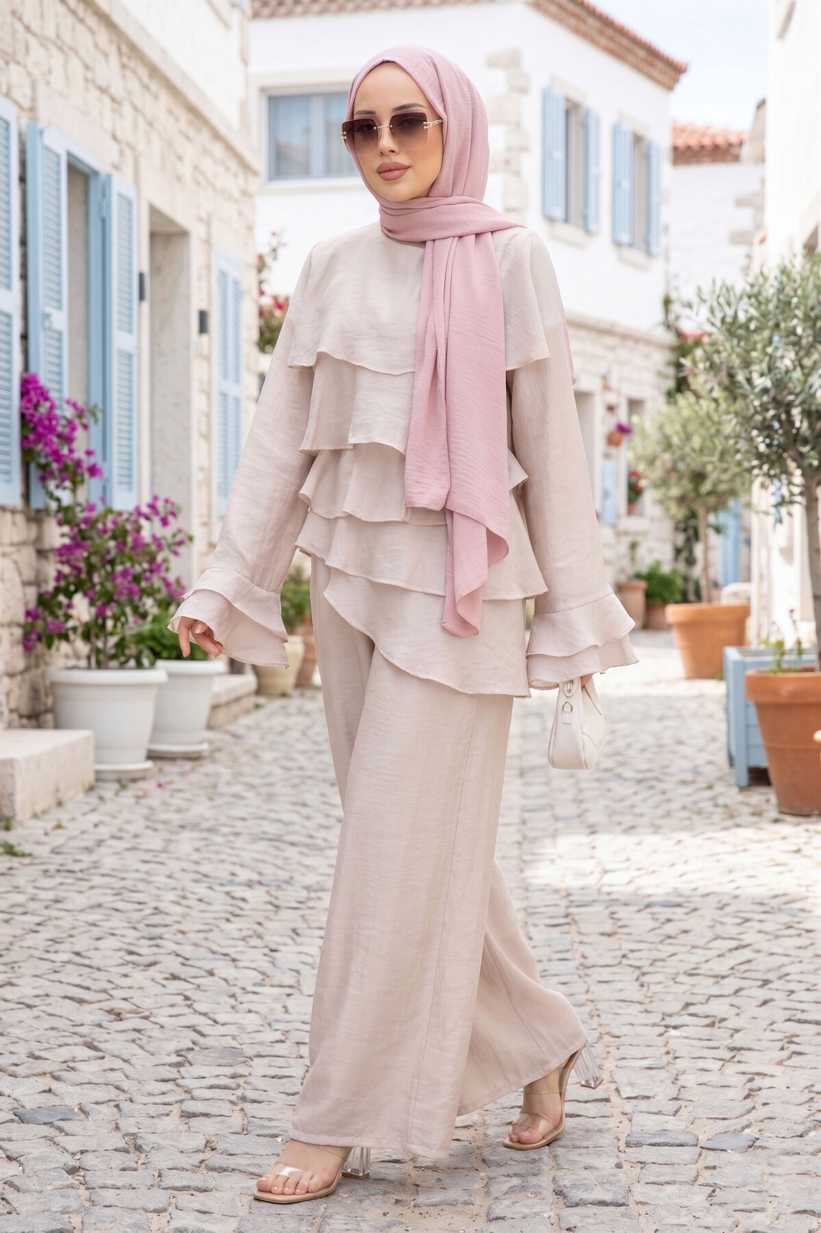 Kat Kat Fırfırlı Tunik Pantolon İkili Takım Taş