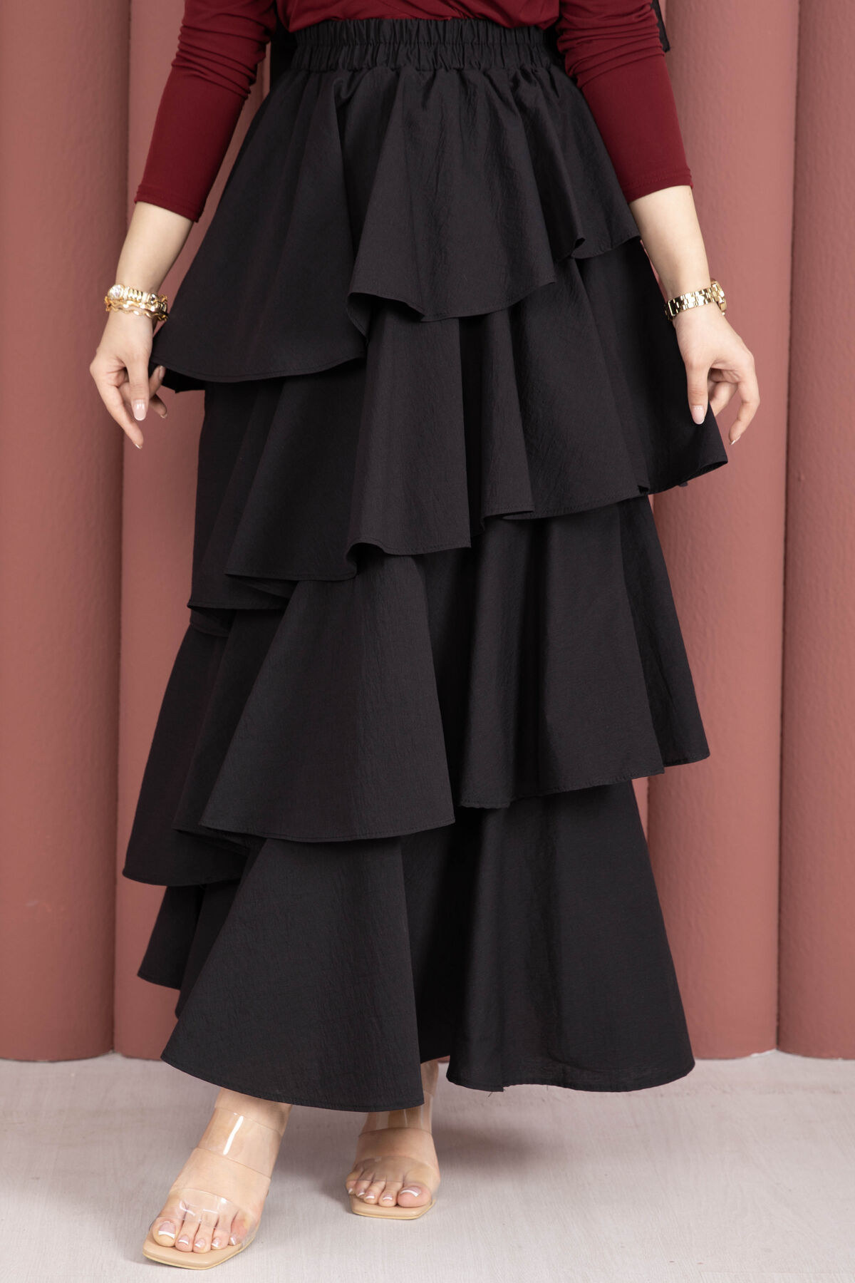 Kat Kat Volanlı Etek Siyah