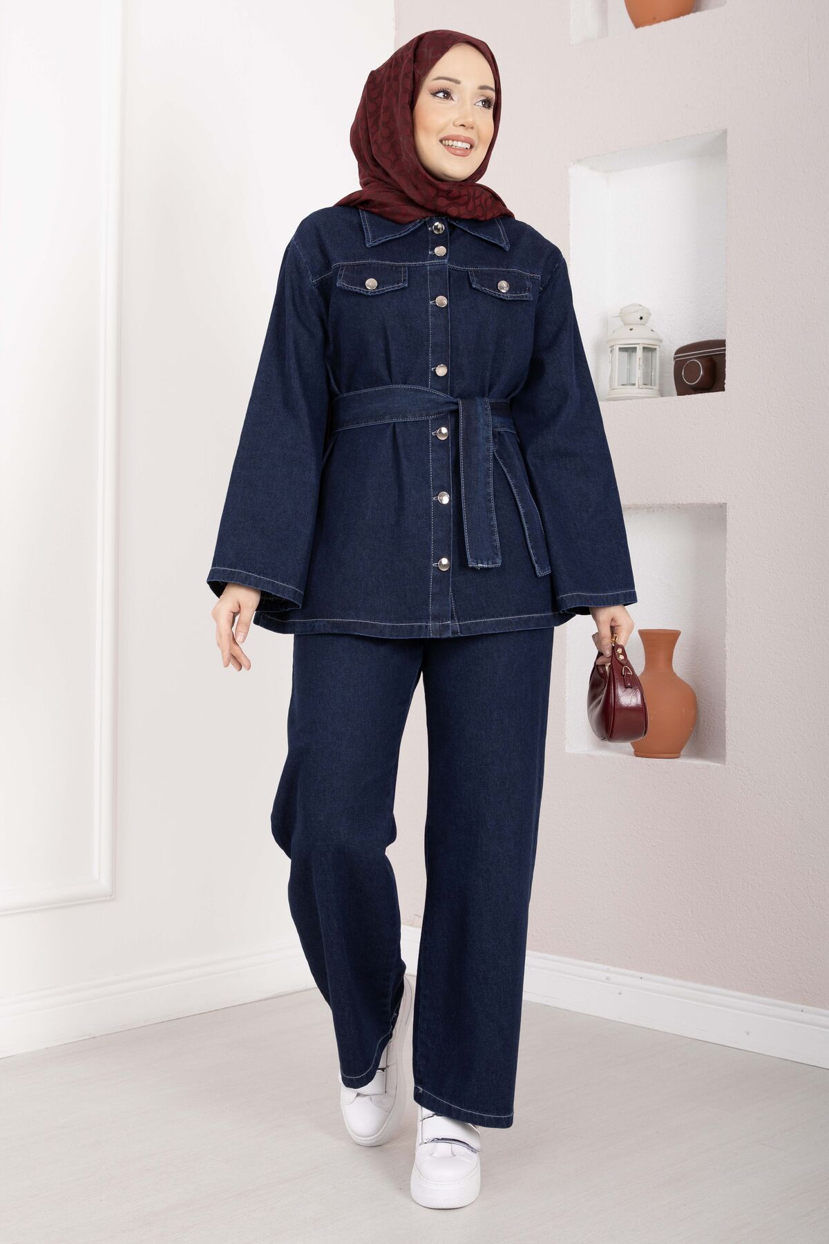 Modern ve güçlü duruşuyla öne çıkan Kemer Detaylı Ceket Pantolon Kot Takım, günlük ve casual kombinlerde rahatlıkla tercih edilebilecek şık bir tasarıma sahiptir. Tok yapılı kumaşı sayesinde formunu korur ve gün boyu konfor sunar.