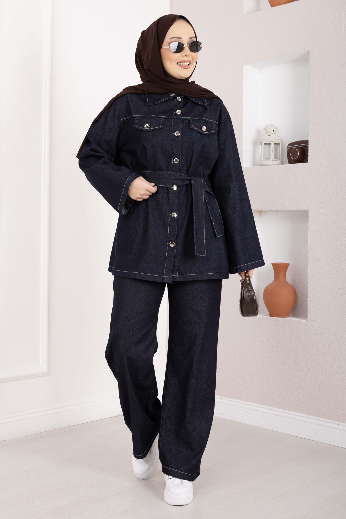 Modern ve güçlü duruşuyla öne çıkan Kemer Detaylı Ceket Pantolon Kot Takım, günlük ve casual kombinlerde rahatlıkla tercih edilebilecek şık bir tasarıma sahiptir. Tok yapılı kumaşı sayesinde formunu korur ve gün boyu konfor sunar.