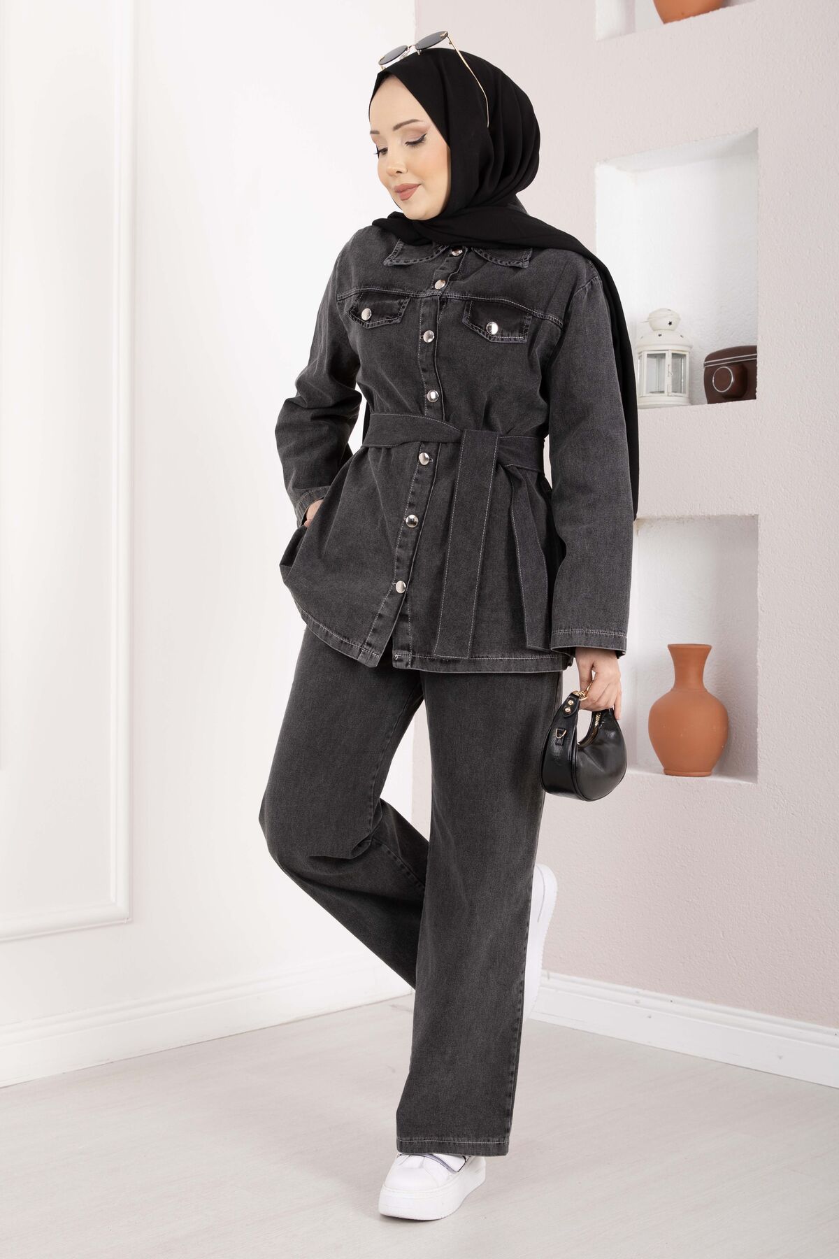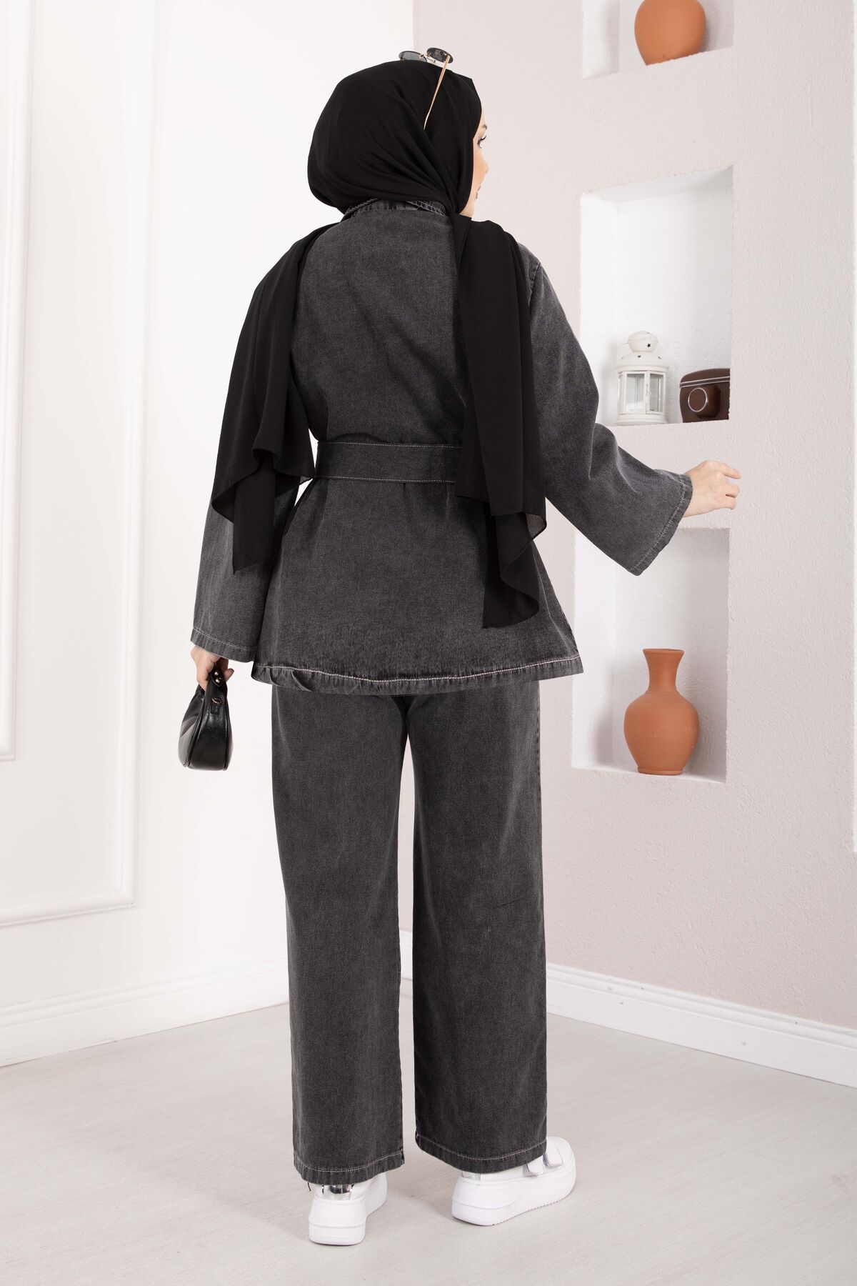 Kemer Detaylı Ceket Pantolon Kot Takım Siyah Yorumları