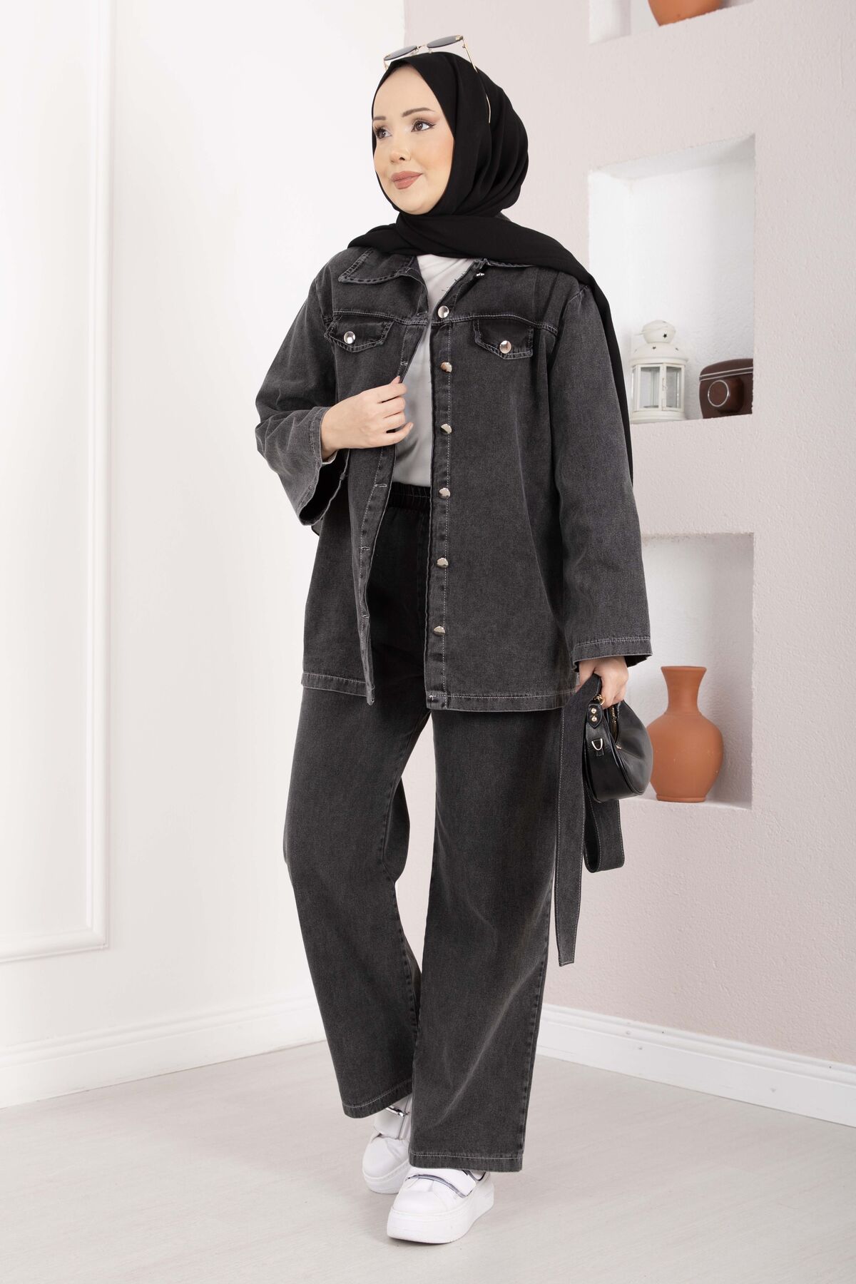 Modern ve güçlü duruşuyla öne çıkan Kemer Detaylı Ceket Pantolon Kot Takım, günlük ve casual kombinlerde rahatlıkla tercih edilebilecek şık bir tasarıma sahiptir. Tok yapılı kumaşı sayesinde formunu korur ve gün boyu konfor sunar.