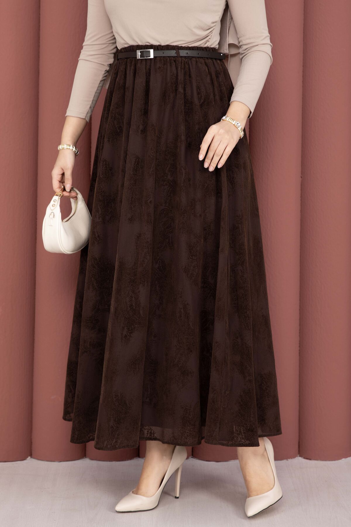 Kemer Detaylı Desenli Tül Etek