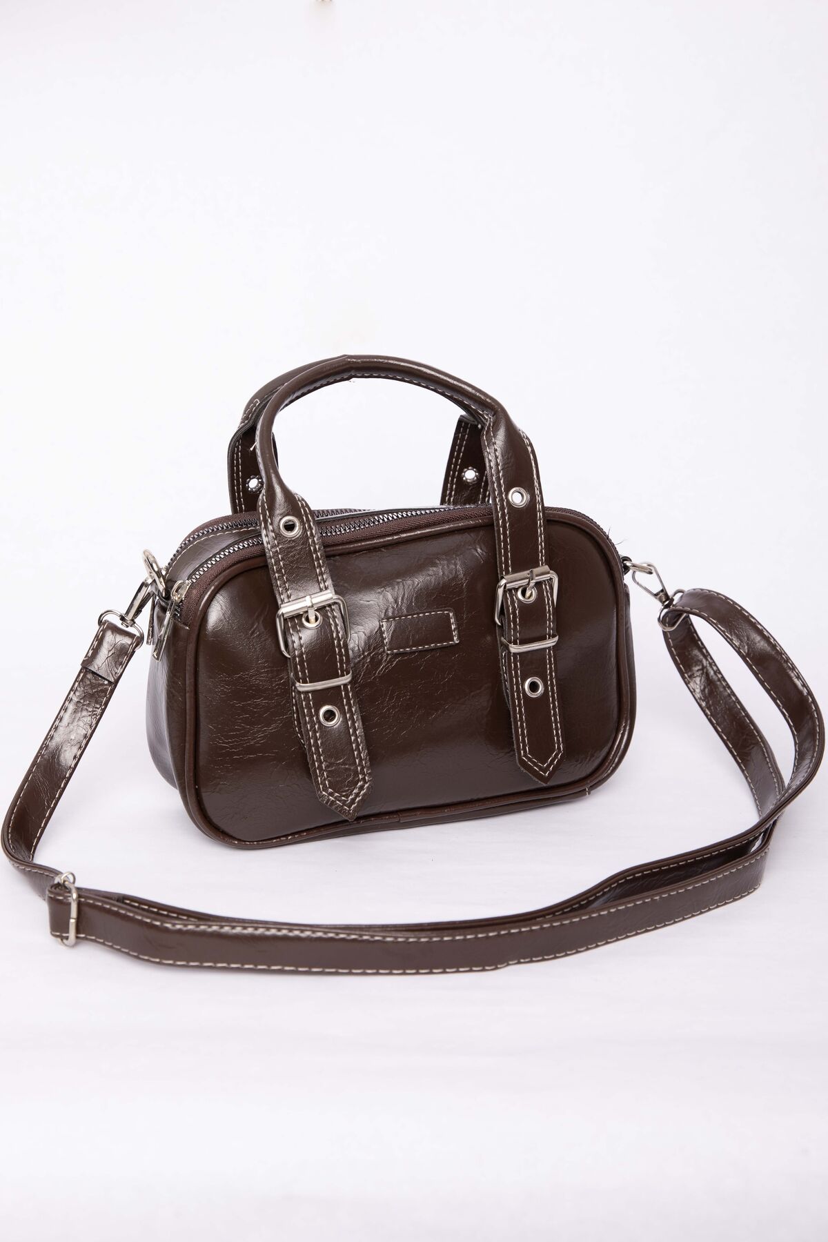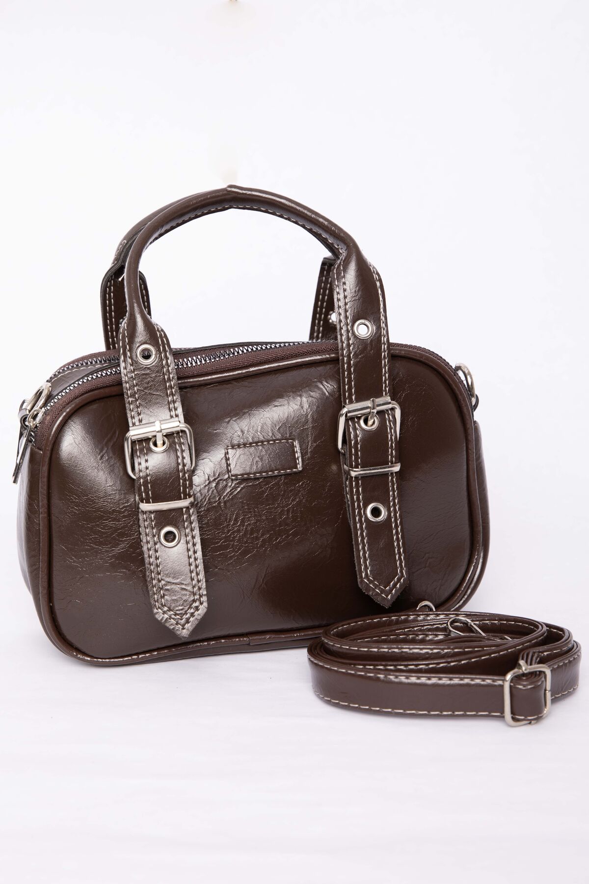 Kemer Detaylı El & Omuz Çantası Kahve