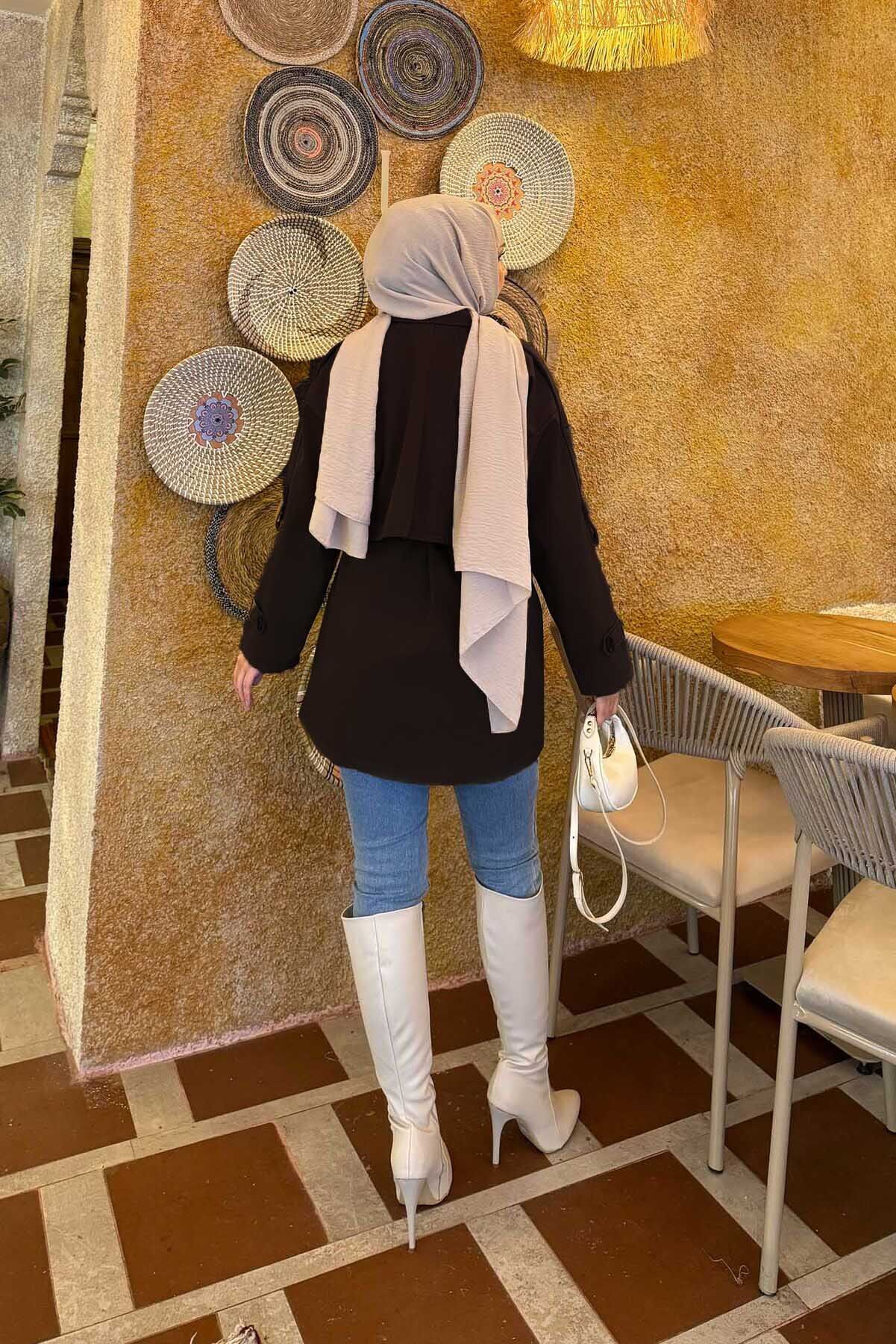 - Ürün Sonbahar & Kış modasıdır. Önden düğmeli yandan ceplidir. Belden seyyar kuşaklıdır. Aller detaylıdır. Kol manşetleri ve omuz kısmı düğme detaylı.