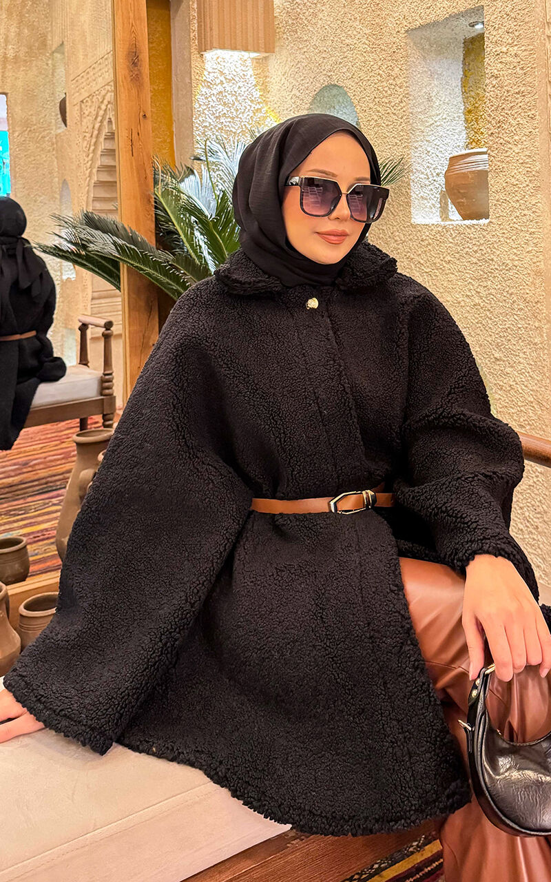 - Ürün Sonbahar & Kış modasıdır. Kemerli kuzu pançomuz önden tek düğmeli ve kemerlidir.