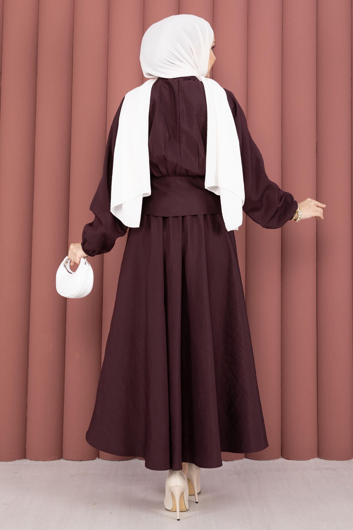 Kendinden Kuşaklı Toka Detaylı Etekli İkili Takım Mürdüm