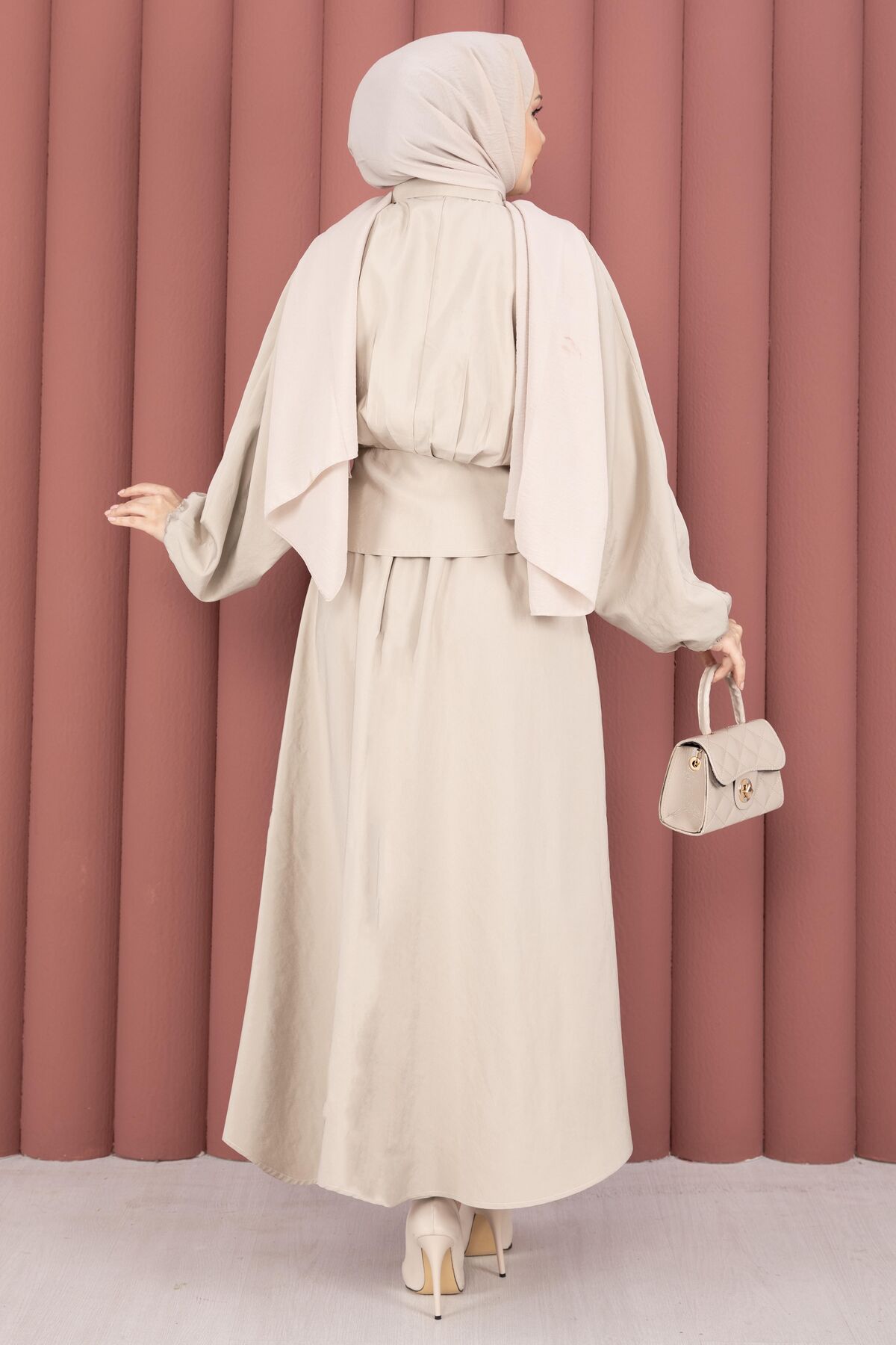 Kendinden Kuşaklı Toka Detaylı Etekli İkili Takım Taş