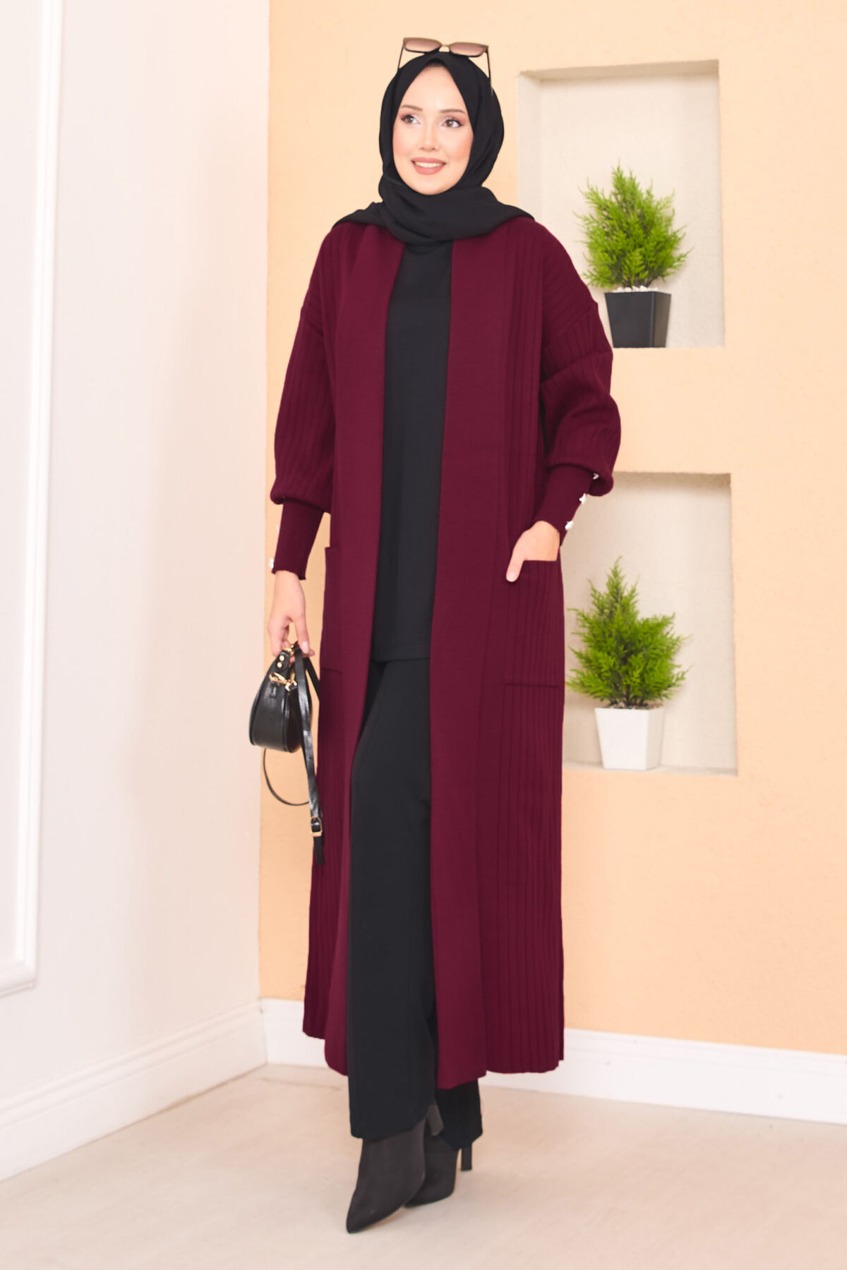Kol Ucu Düğmeli Şal Yaka Tesettür Triko Hırka Bordo Yorumları