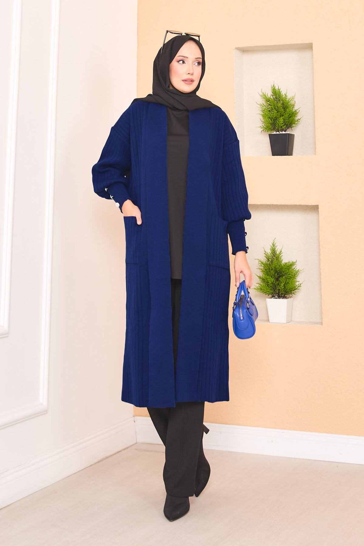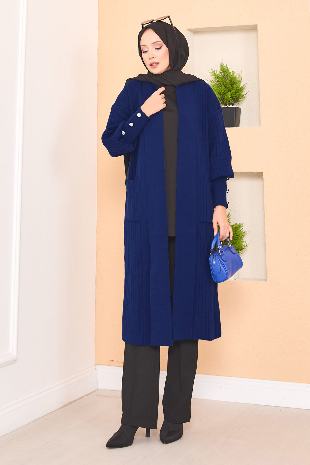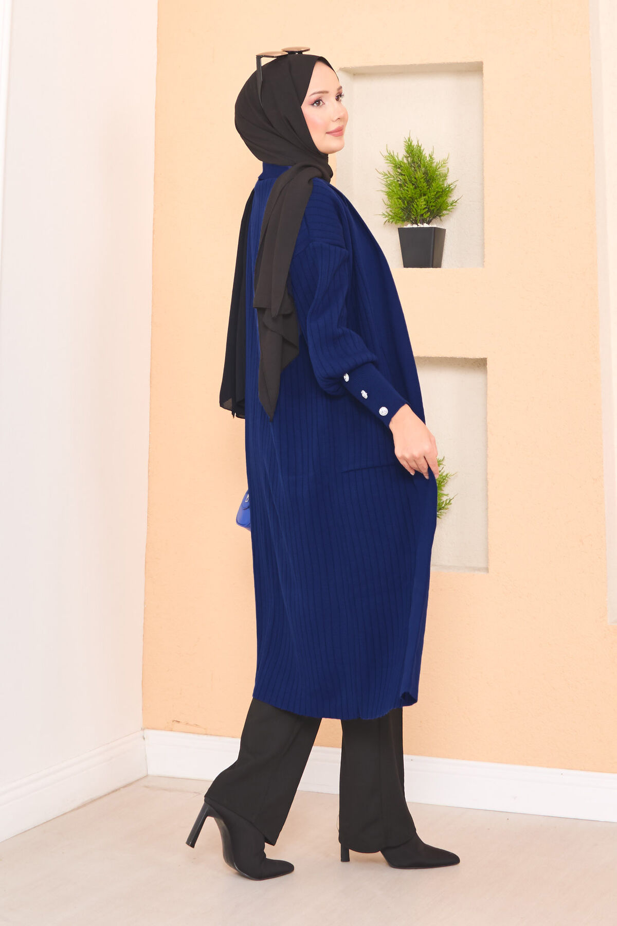 Kol Ucu Düğmeli Şal Yaka Tesettür Triko Hırka Lacivert Yorumları