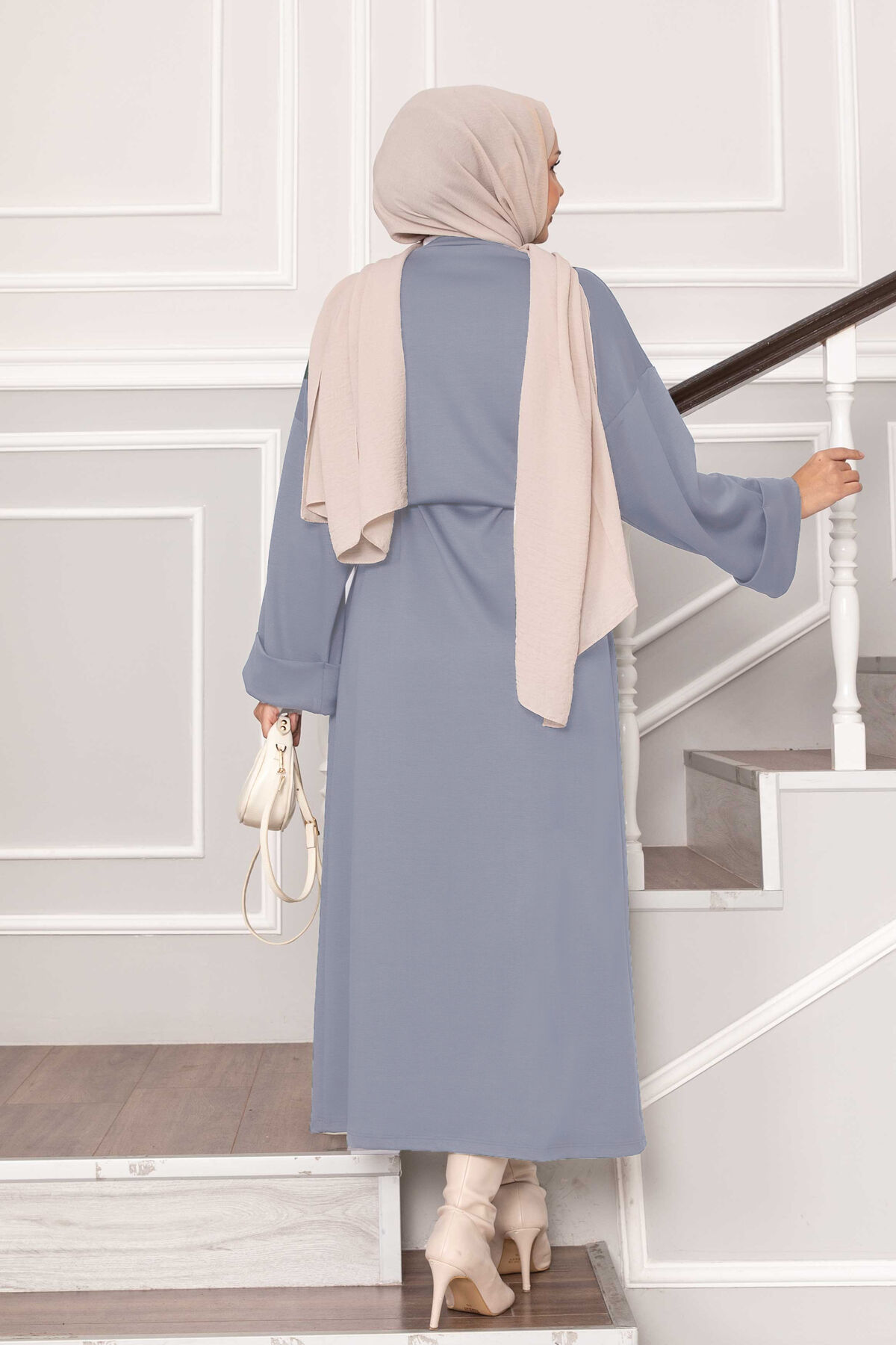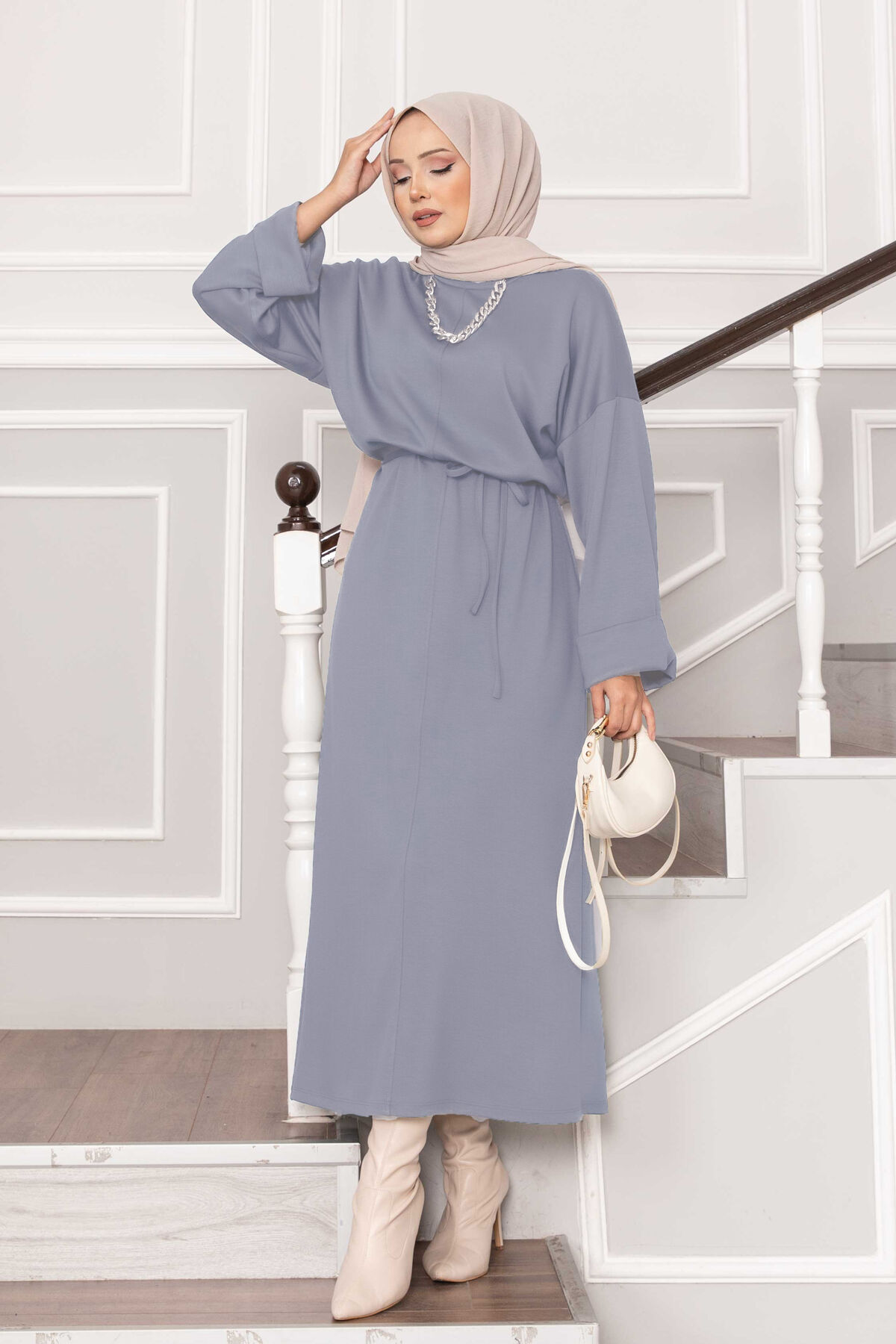 - Ürün Sonbahar & Kış modasıdır. Kolu katlana bilir seyyar ip kuşaklı tam boy tesettür elbise"