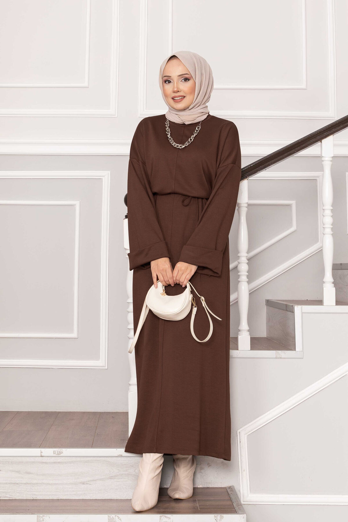 - Ürün Sonbahar & Kış modasıdır. Kolu katlana bilir seyyar ip kuşaklı tam boy tesettür elbise"