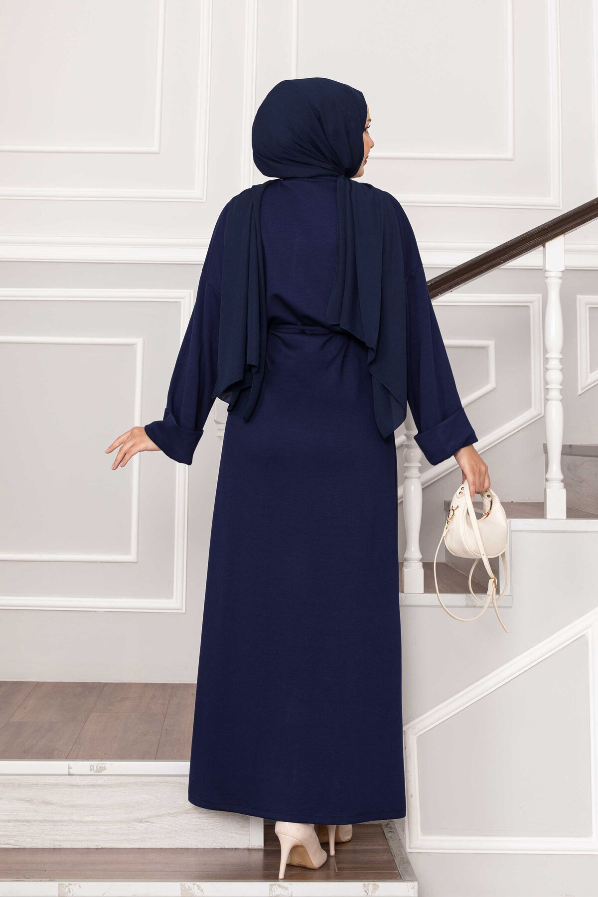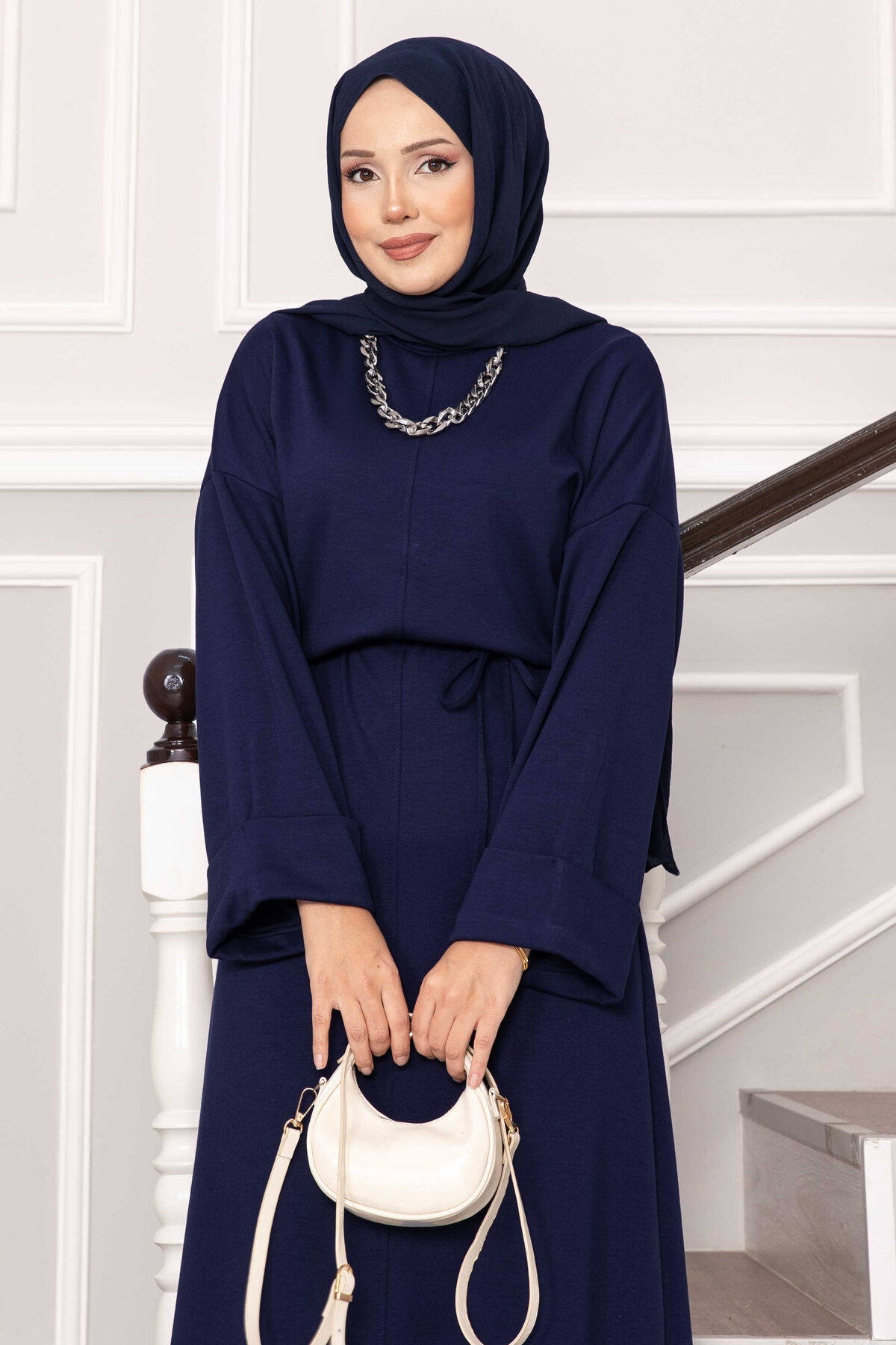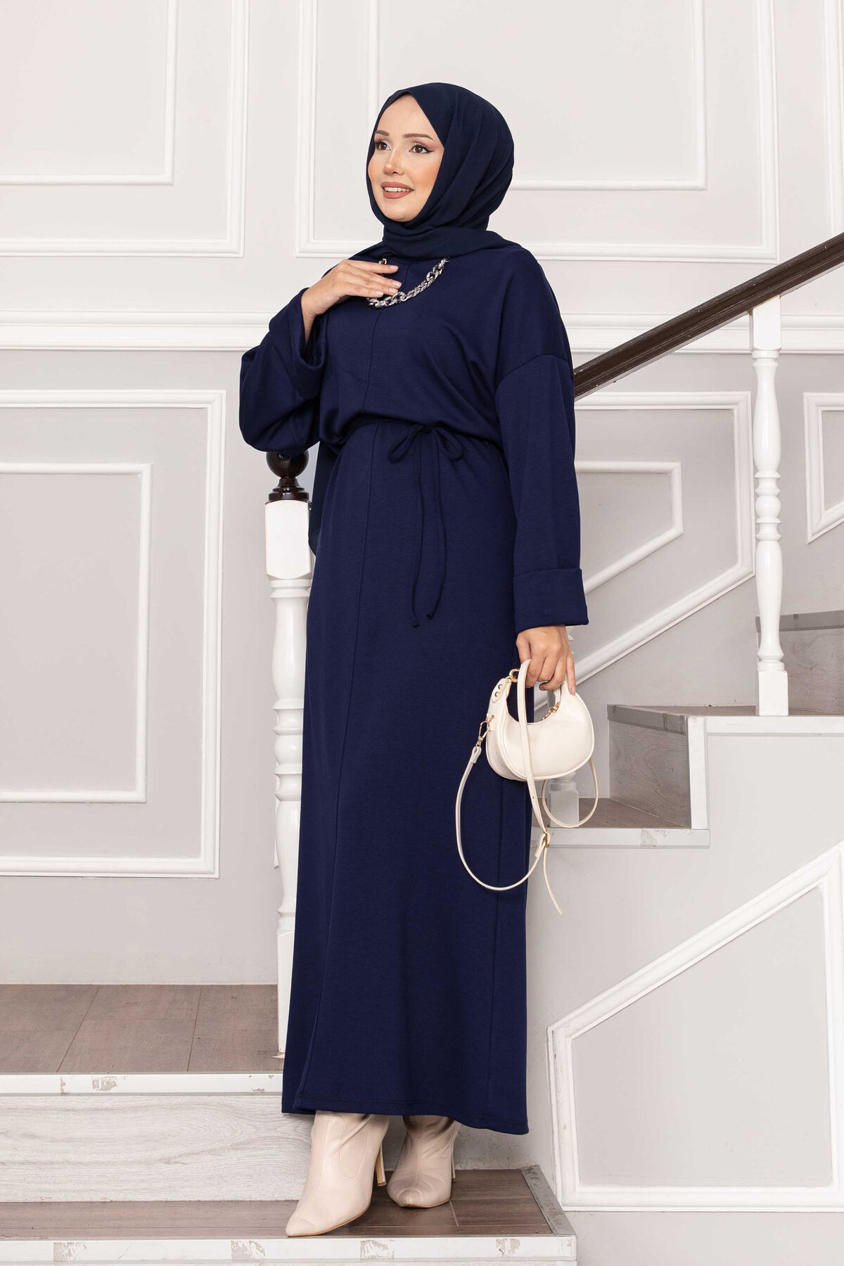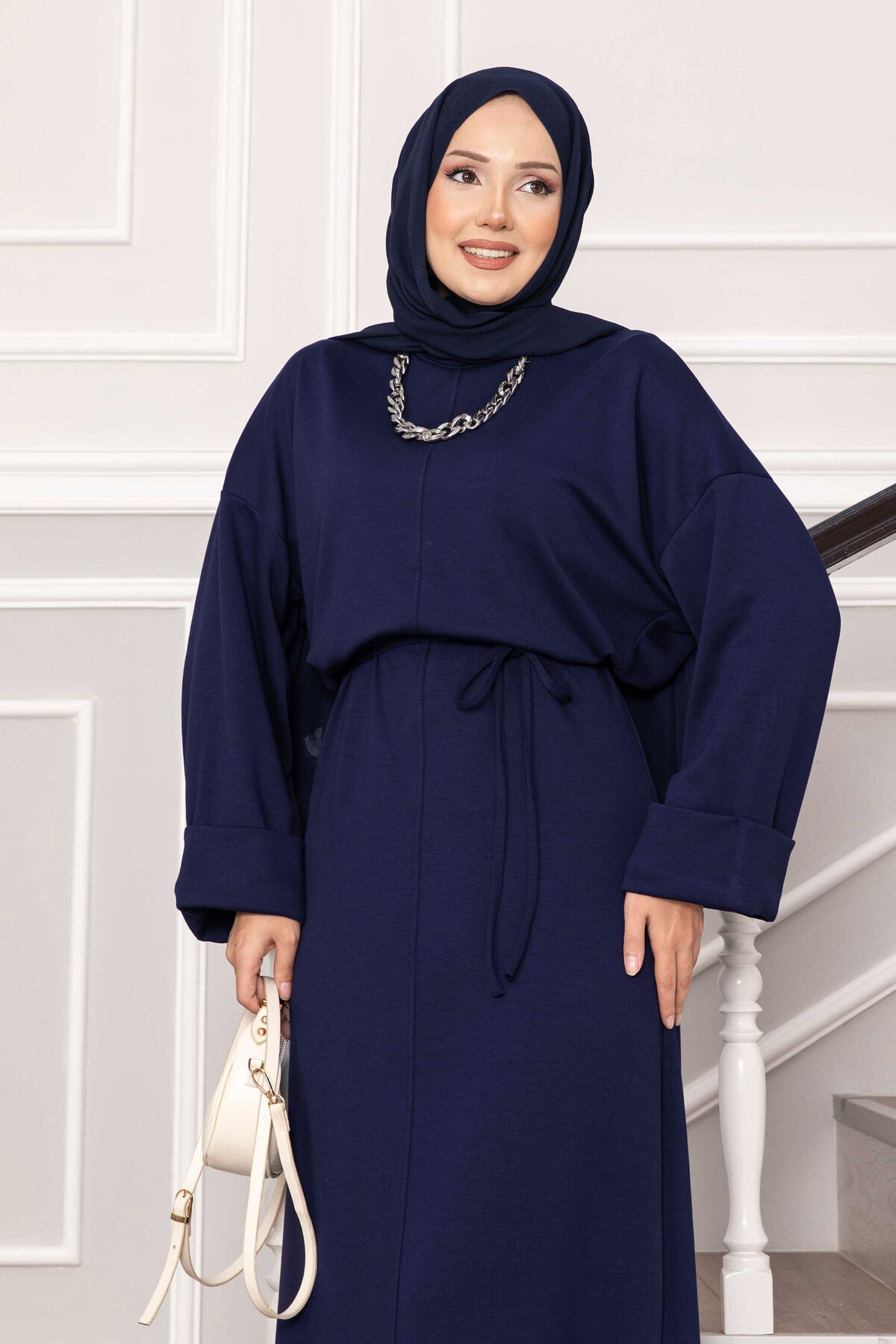 - Ürün Sonbahar & Kış modasıdır. Kolu katlana bilir seyyar ip kuşaklı tam boy tesettür elbise"