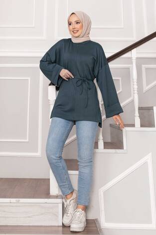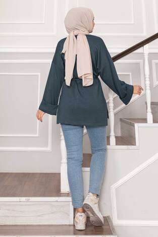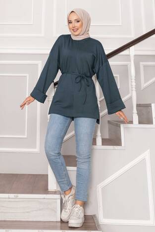 Kolu Katlamalı Kuşaklı Oyşo Tunik Çağla Yeşili