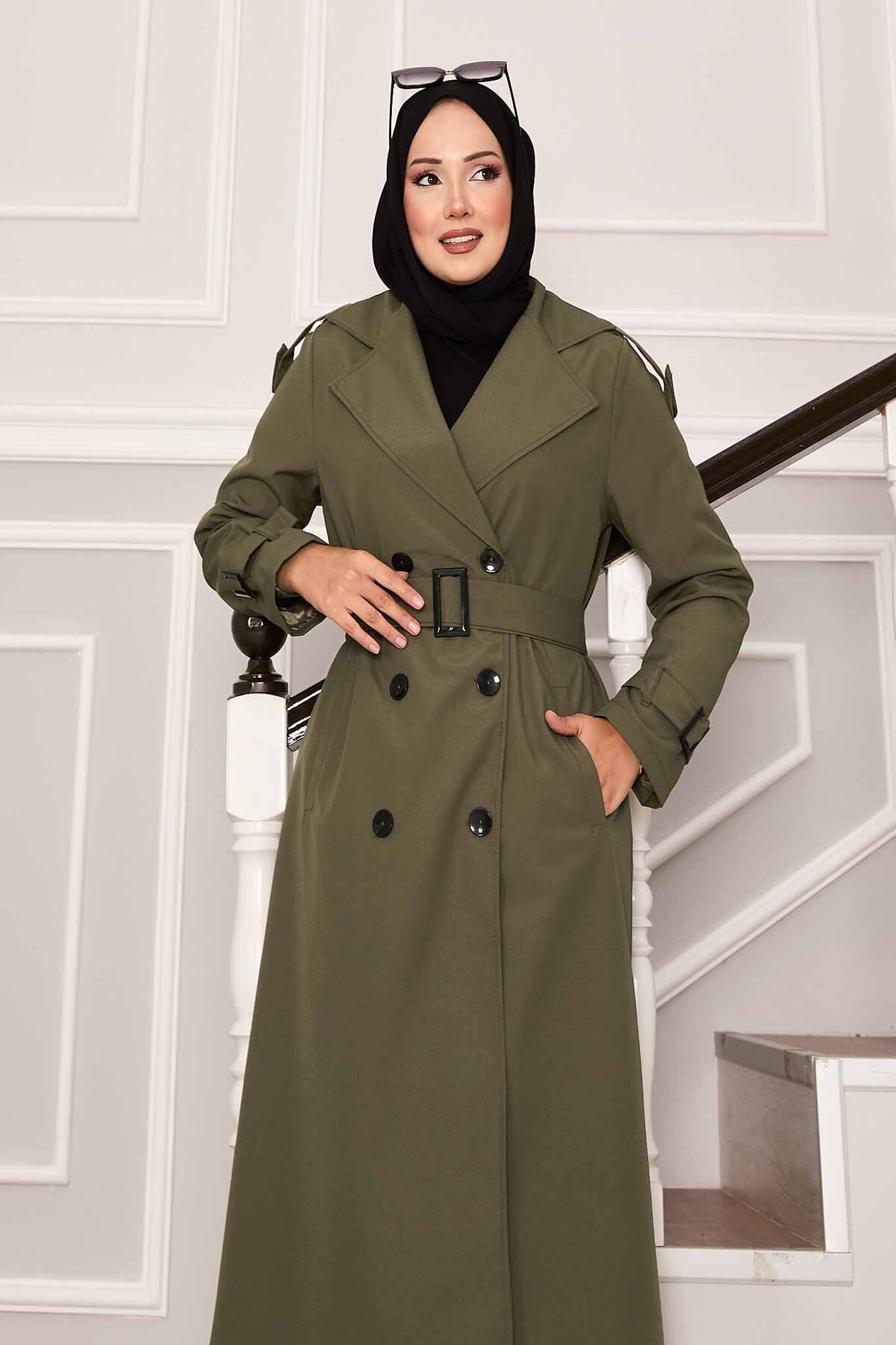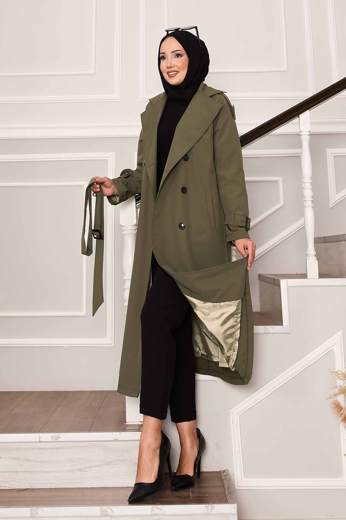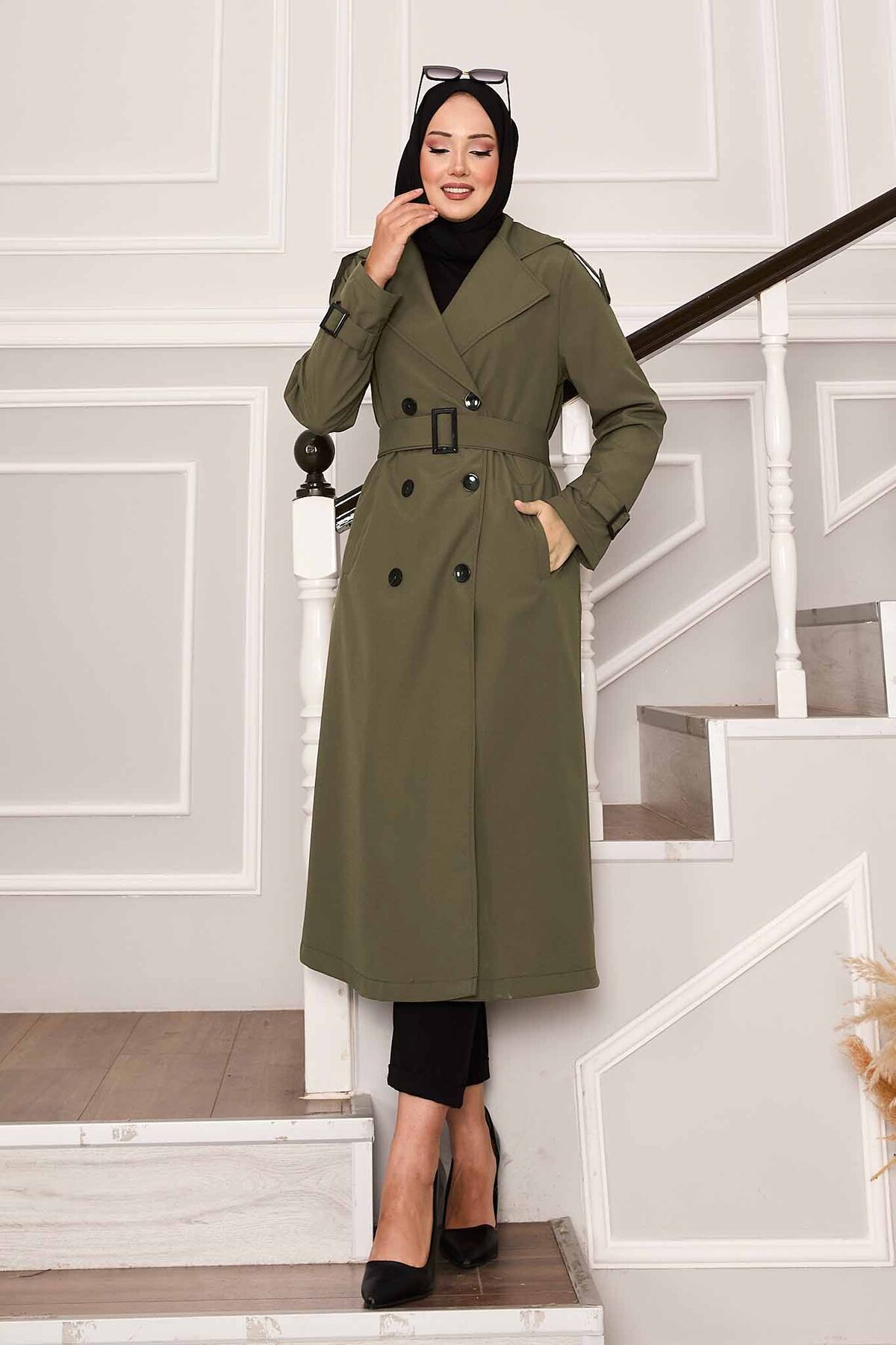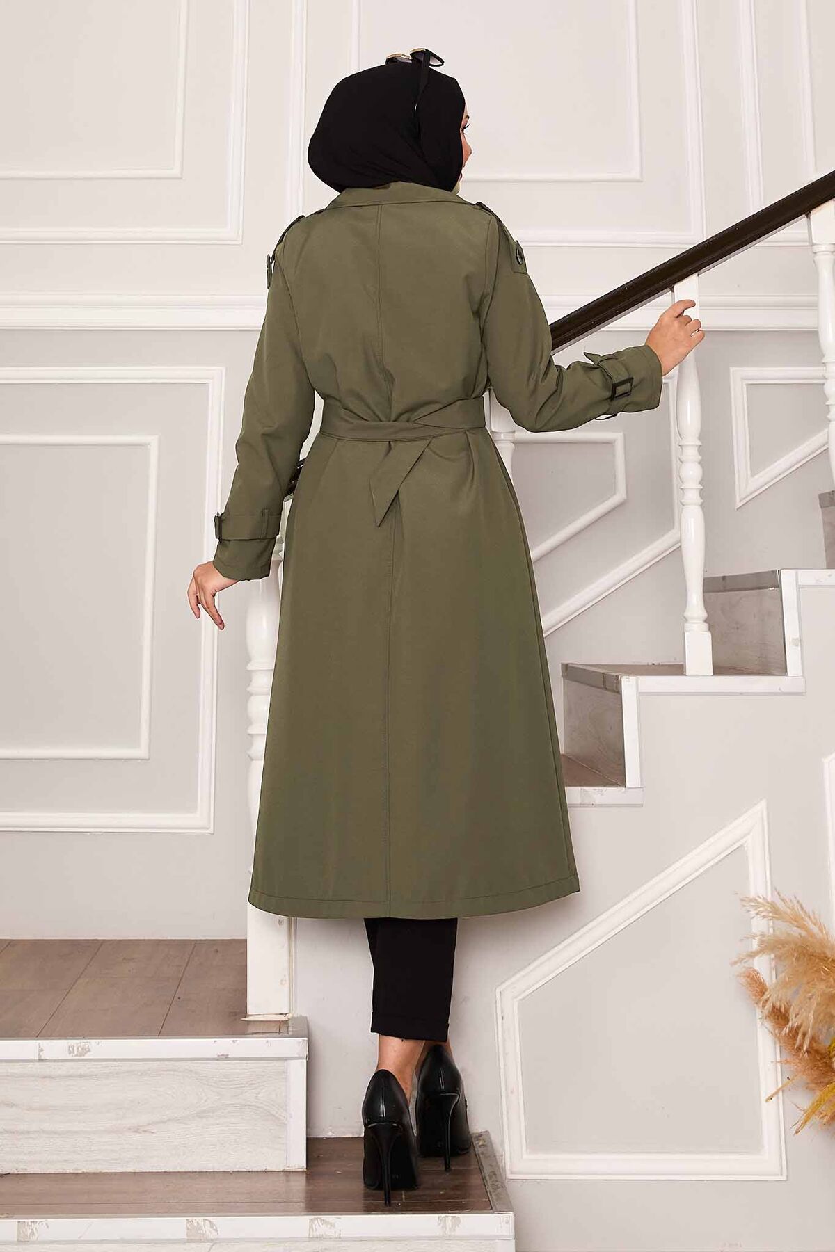Kolu Kemer Detaylı Su Geçirmez Trenç Haki