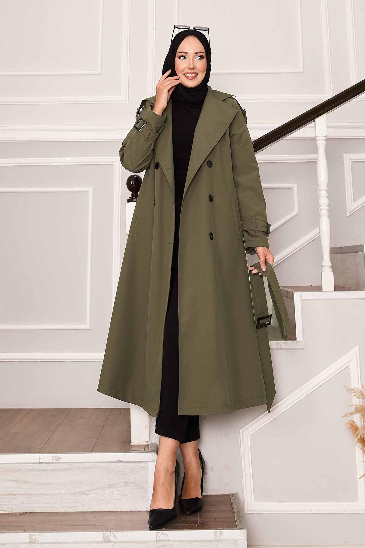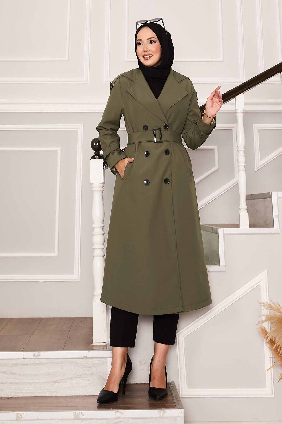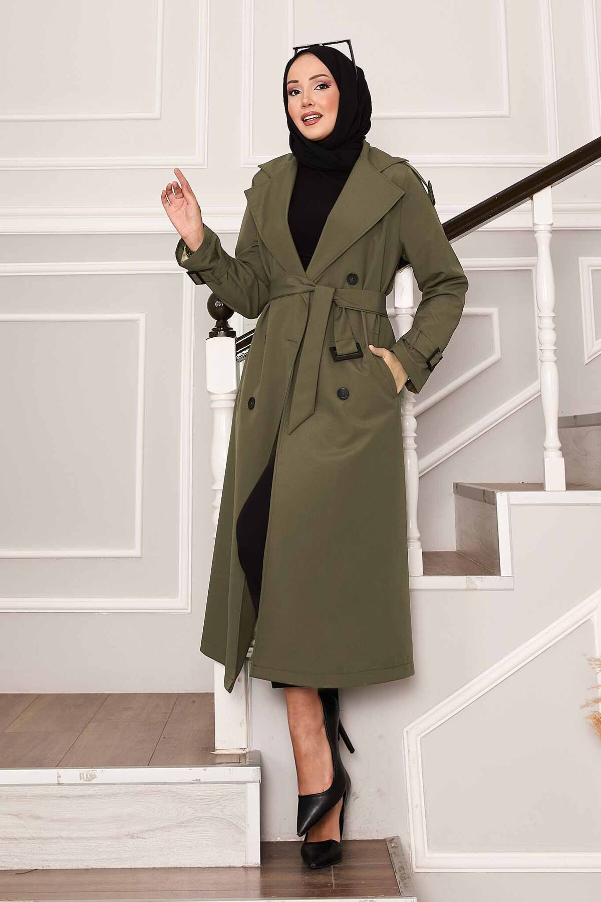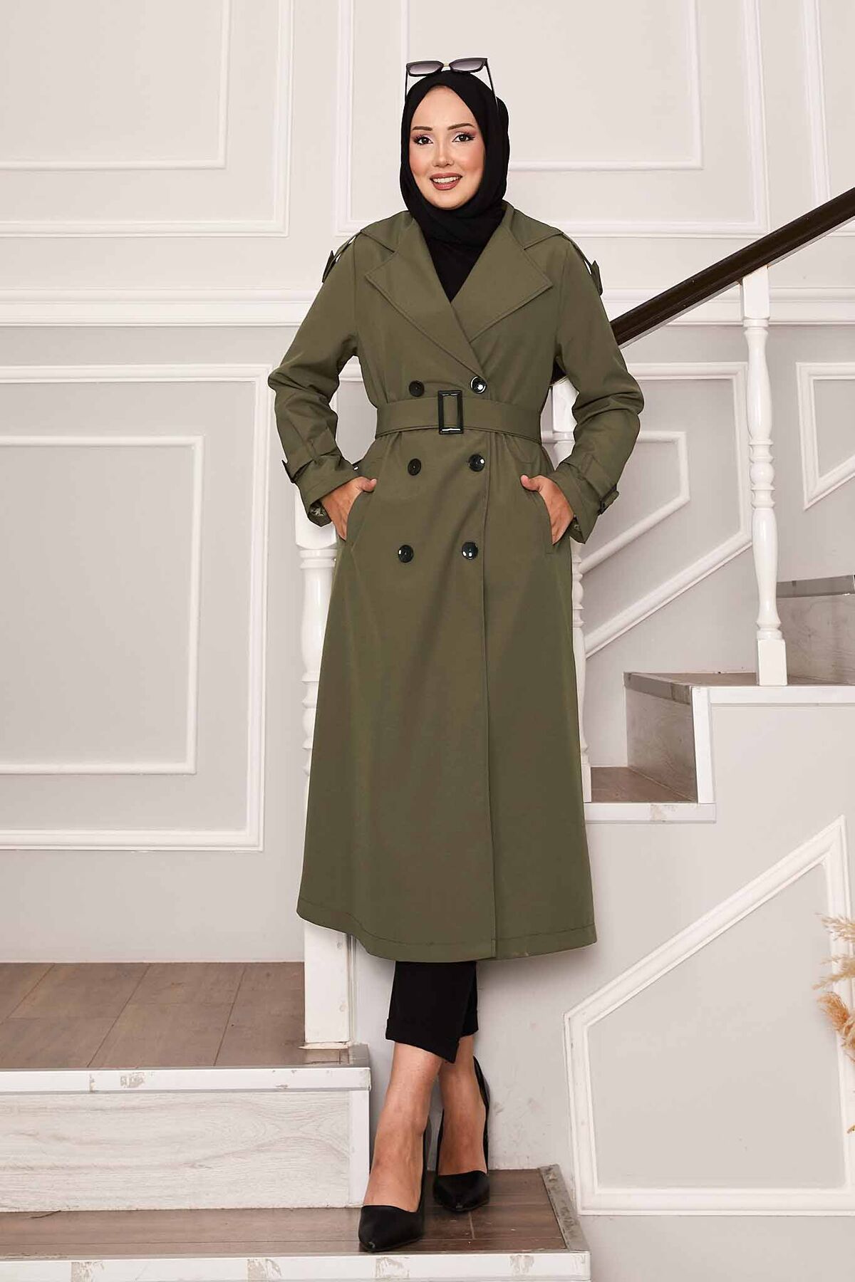Kolu Kemer Detaylı Su Geçirmez Trenç Haki
