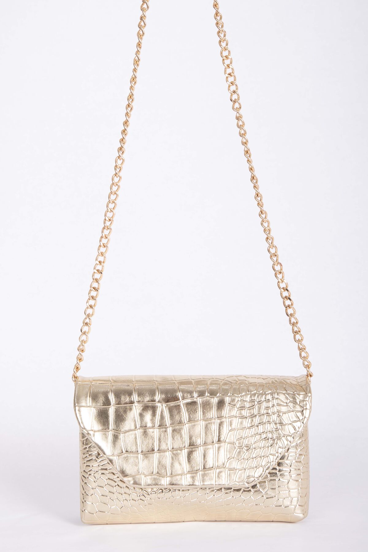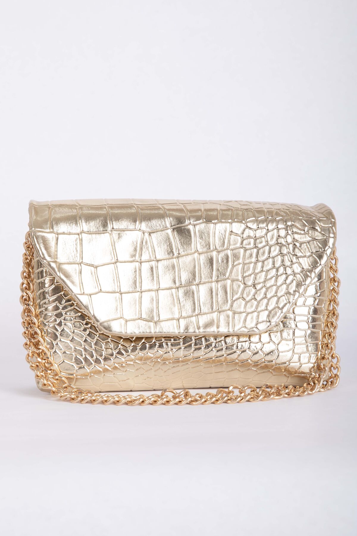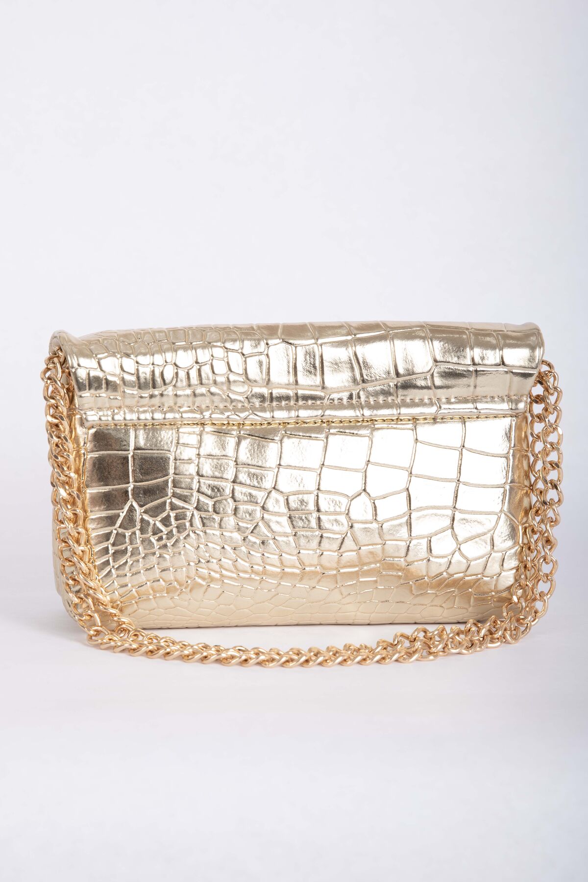 Kroko Desen Zincir Askılı Portföy Çanta Gold