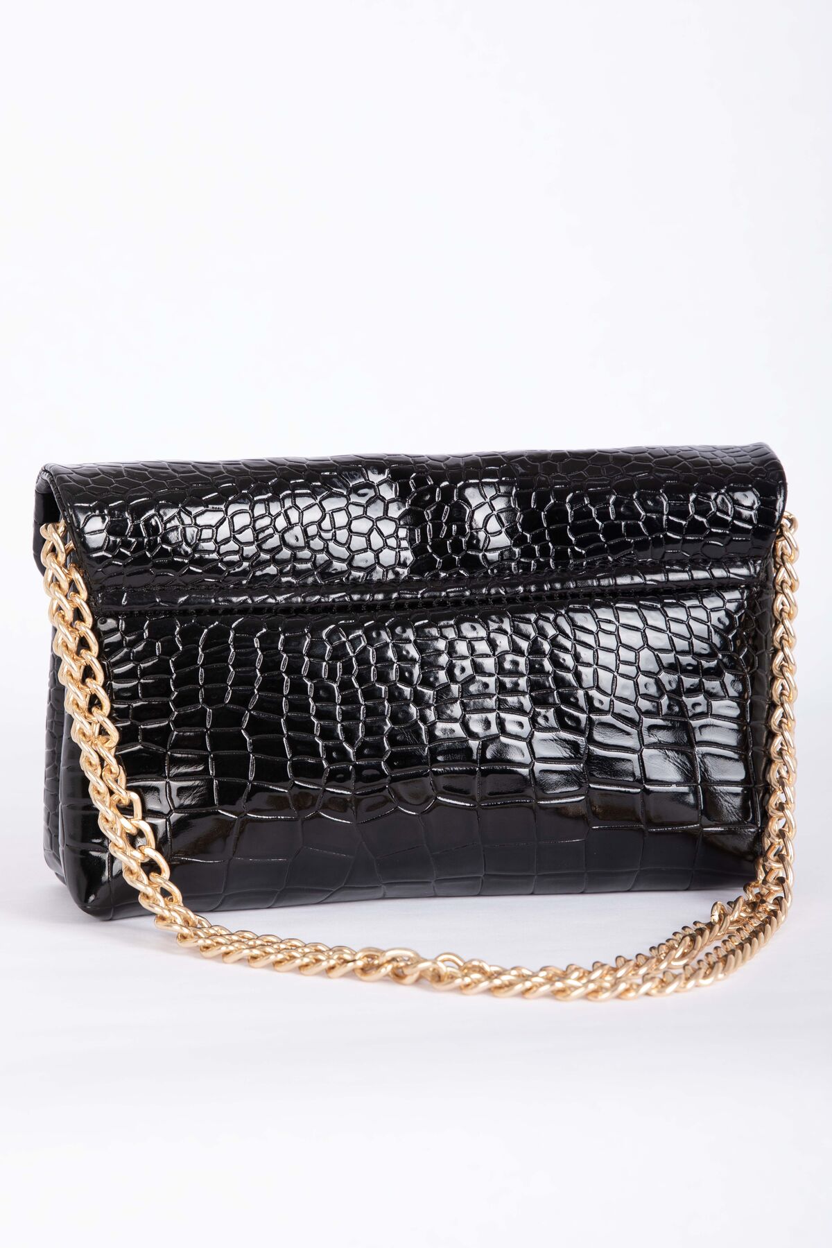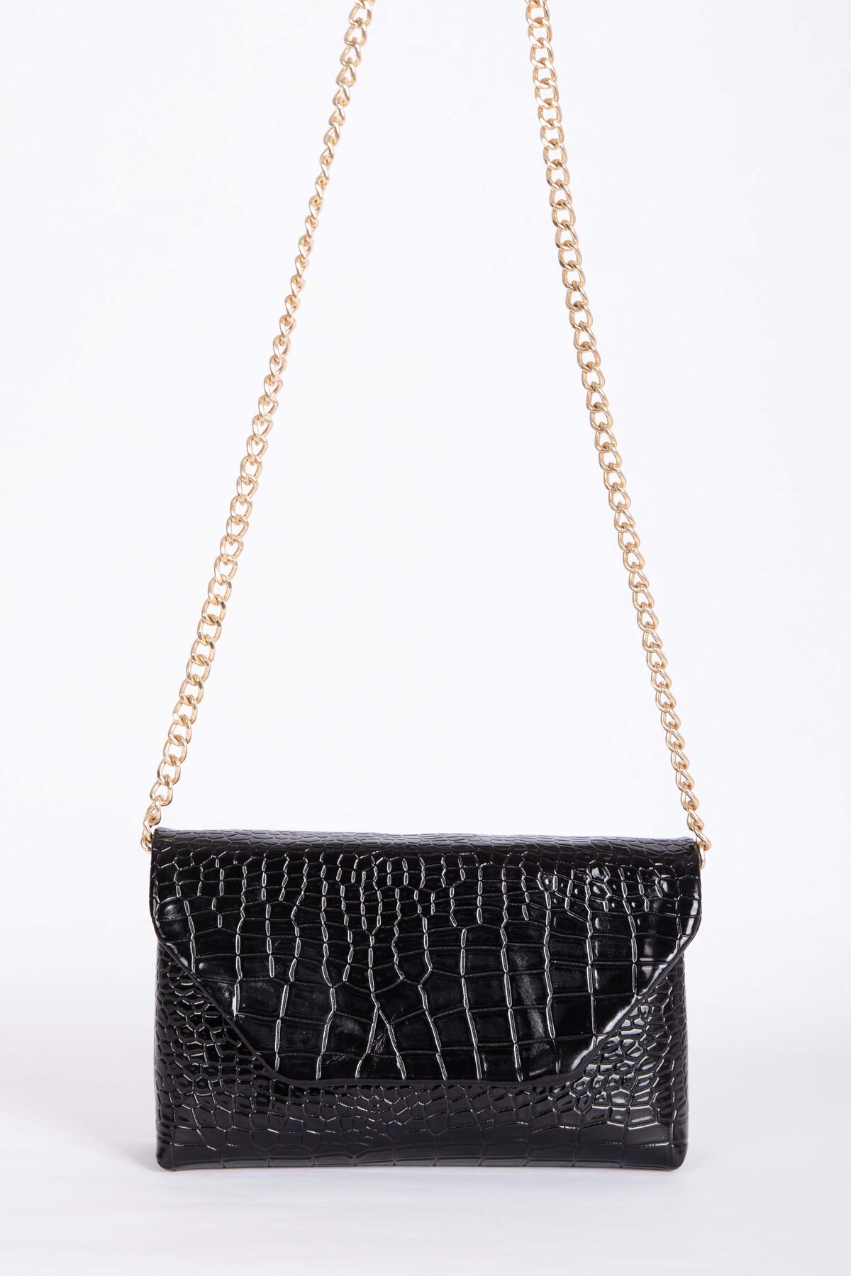 Kroko Desen Zincir Askılı Portföy Çanta Siyah