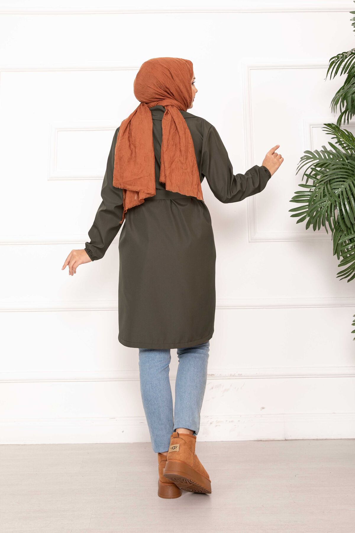 Kruvaze Yaka Kuşaklı Relax Trençkot Haki