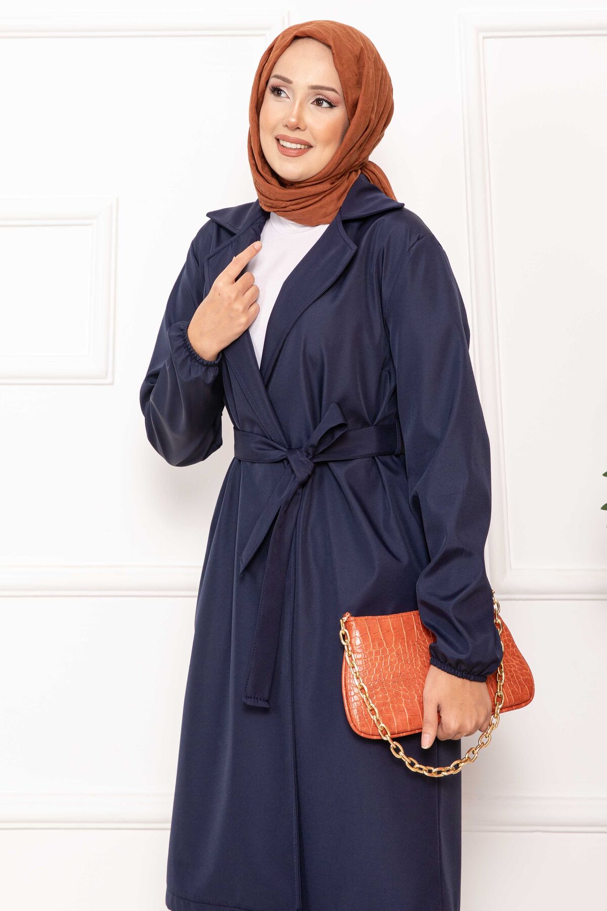 Kruvaze Yaka Kuşaklı Relax Trençkot Lacivert Yorumları