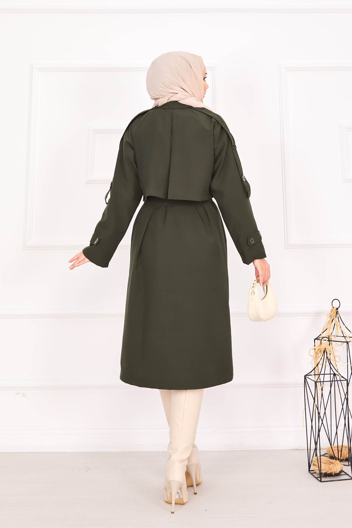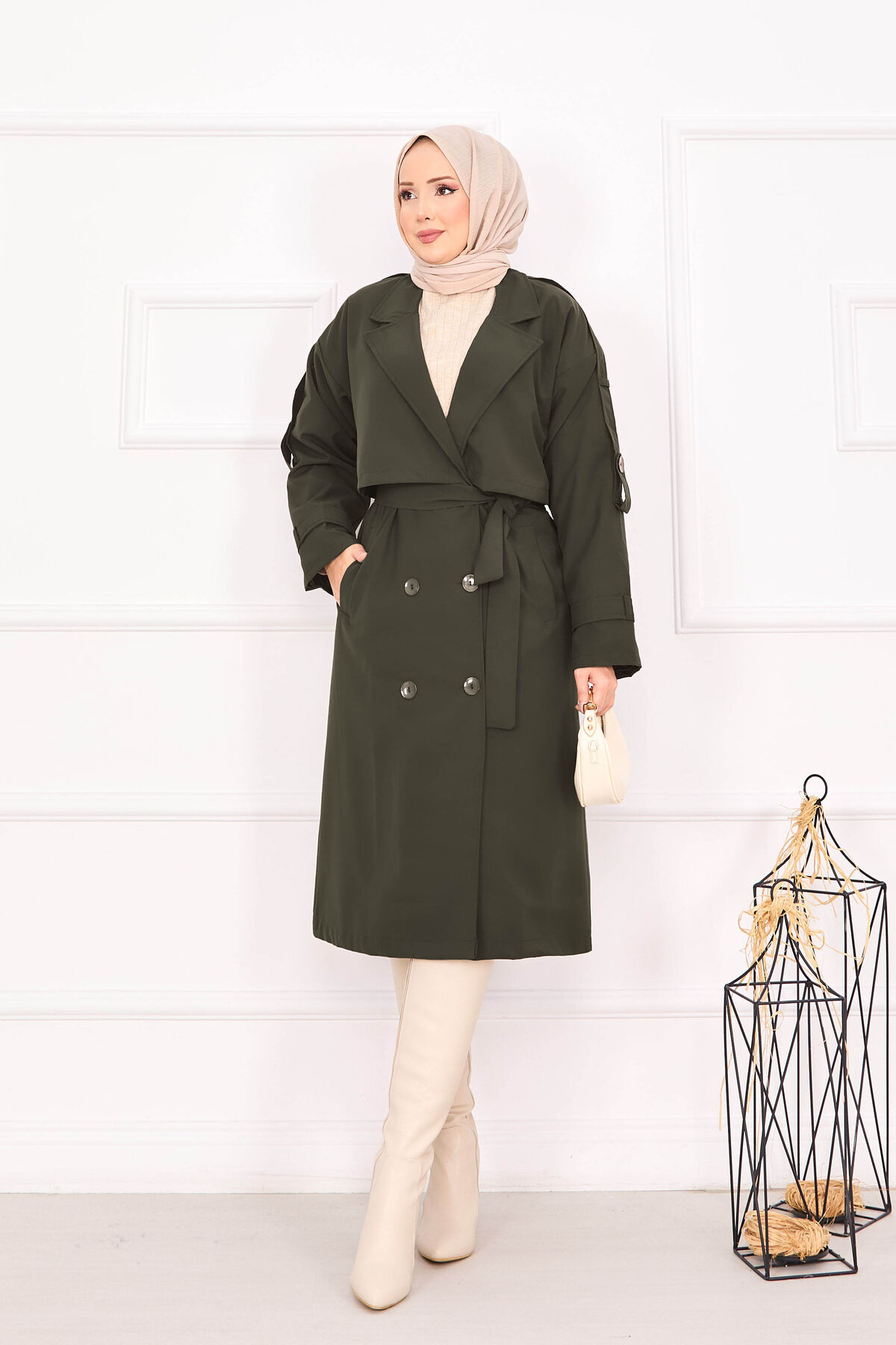 Kuşak Detaylı Omuz Apoletli Trençkot Haki