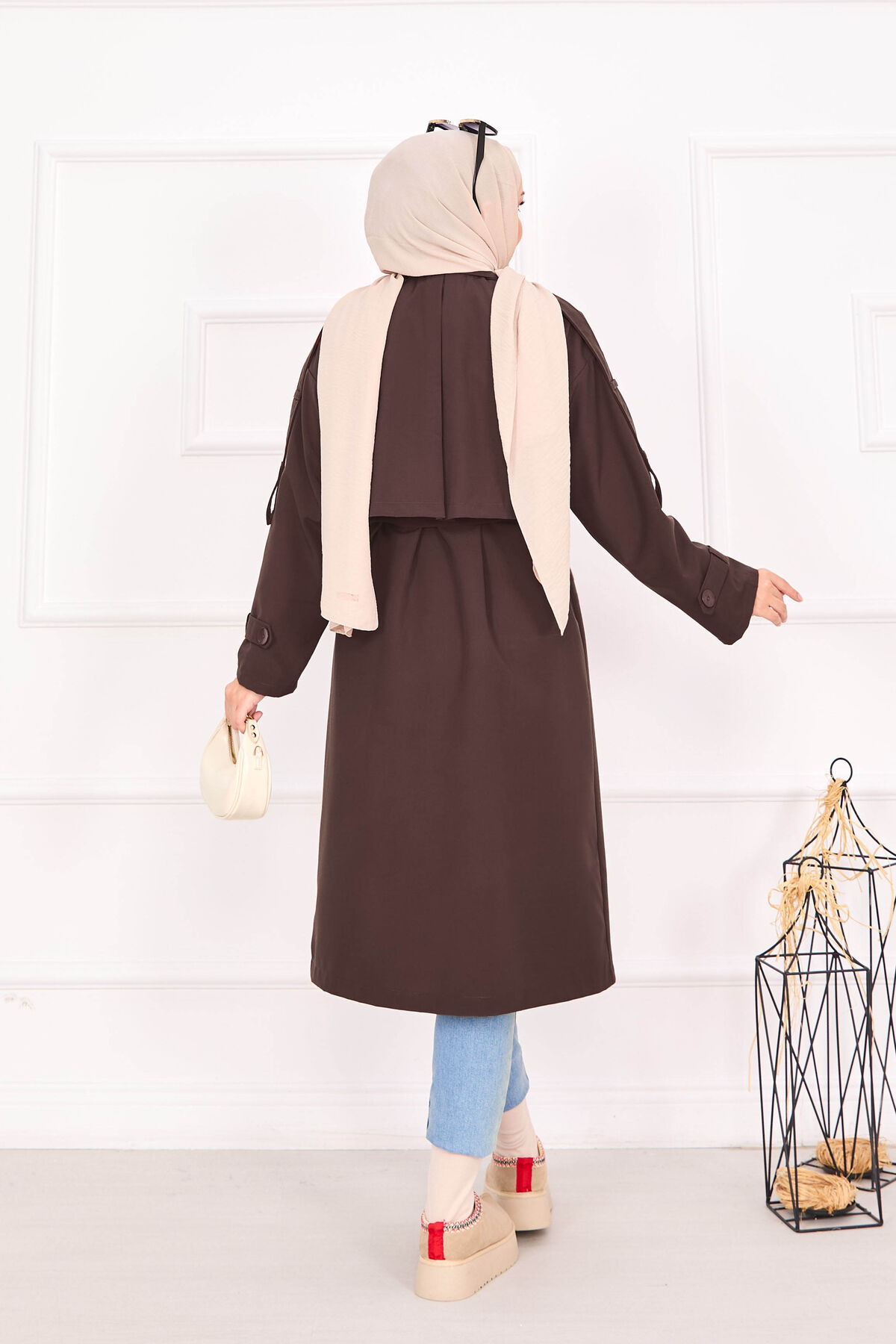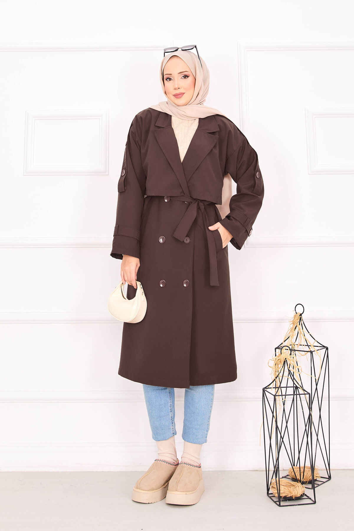 Kuşak Detaylı Omuz Apoletli Trençkot Kahve