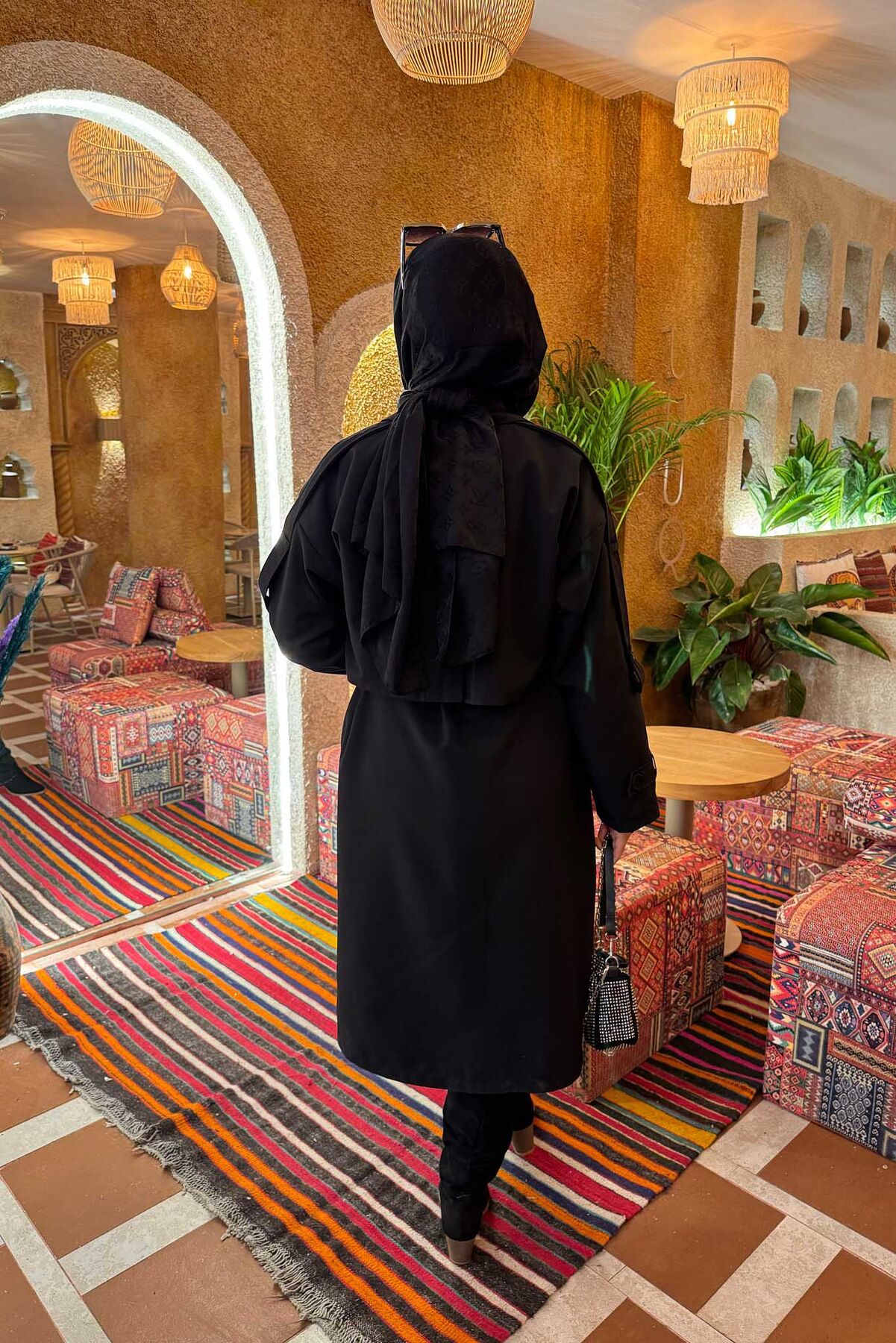 Kuşak Detaylı Omuz Apoletli Trençkot Siyah