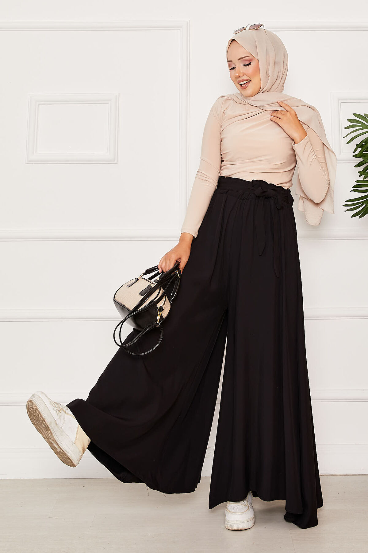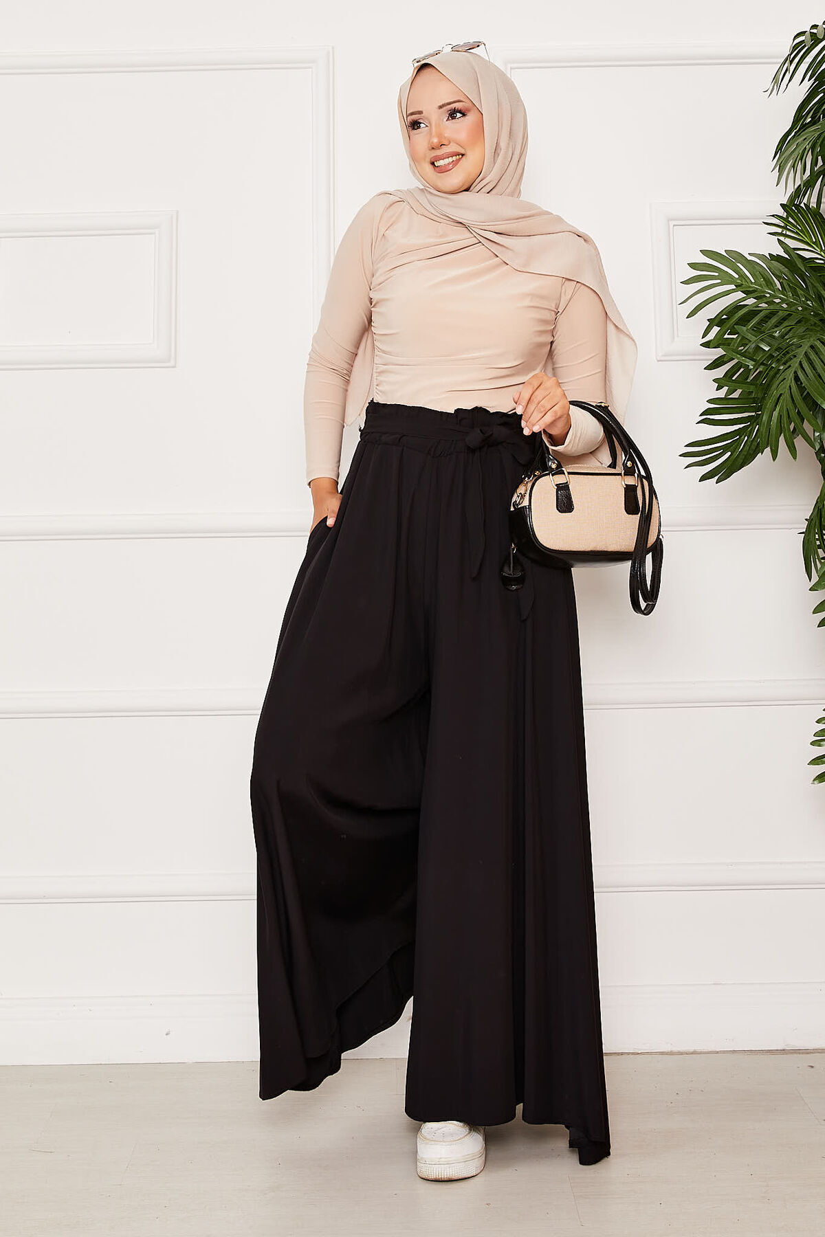 Mevsimlik kullanım için uygun olan Kuşaklı Etek Pantolon, hafif ve dökümlü yapısıyla gün boyu konfor sunar. Astarsız tasarımı sayesinde ferah bir kullanım sağlar. Belden önden kuşak detaylıdır ve bol paça kesimiyle etek görünümü kazandırılmıştır.