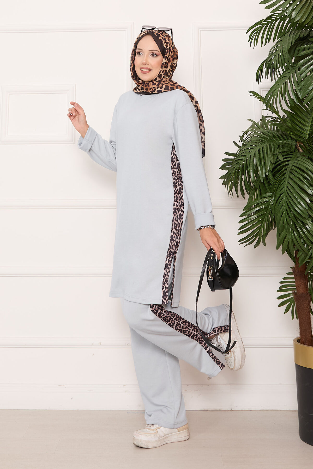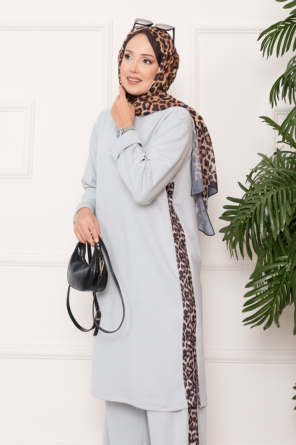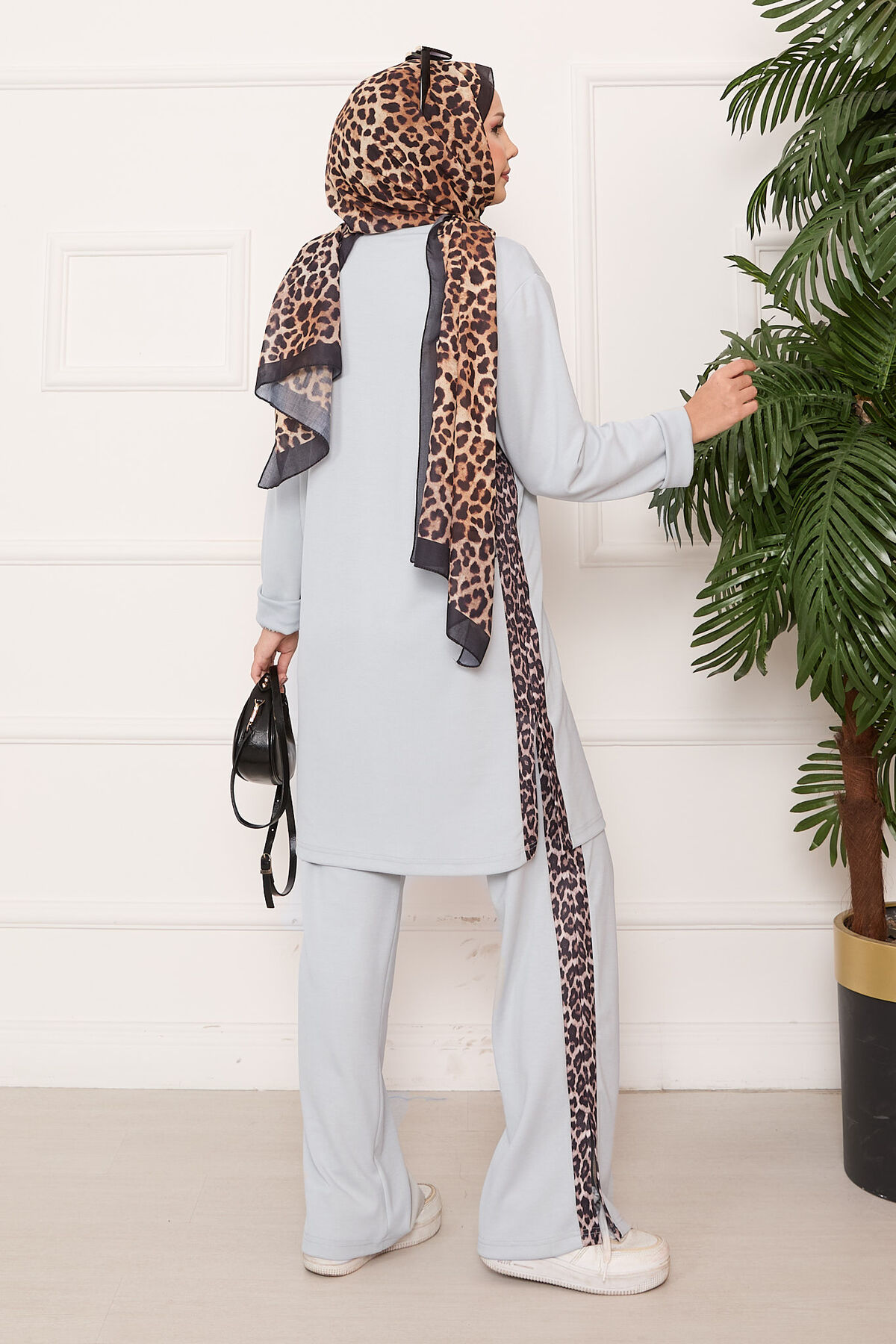 Leopar Şeritli Yırtmaçlı Oyşo Takım Gri