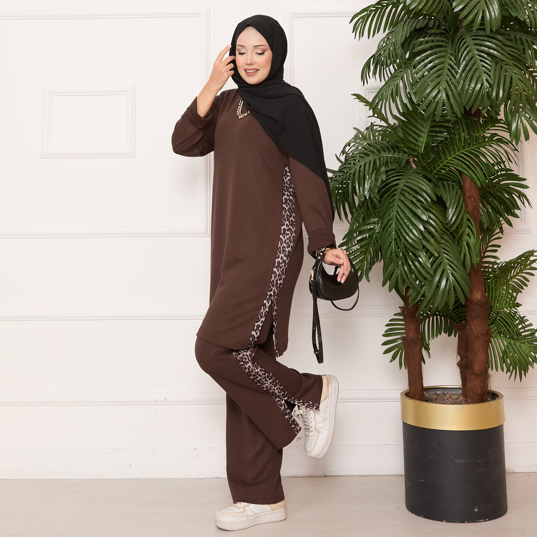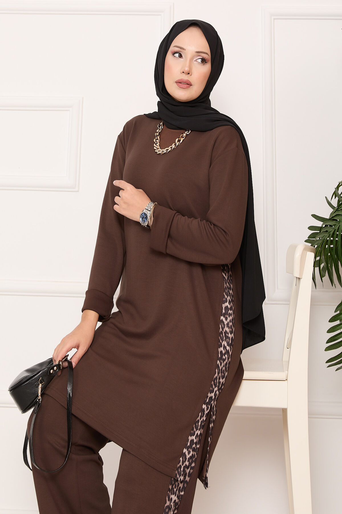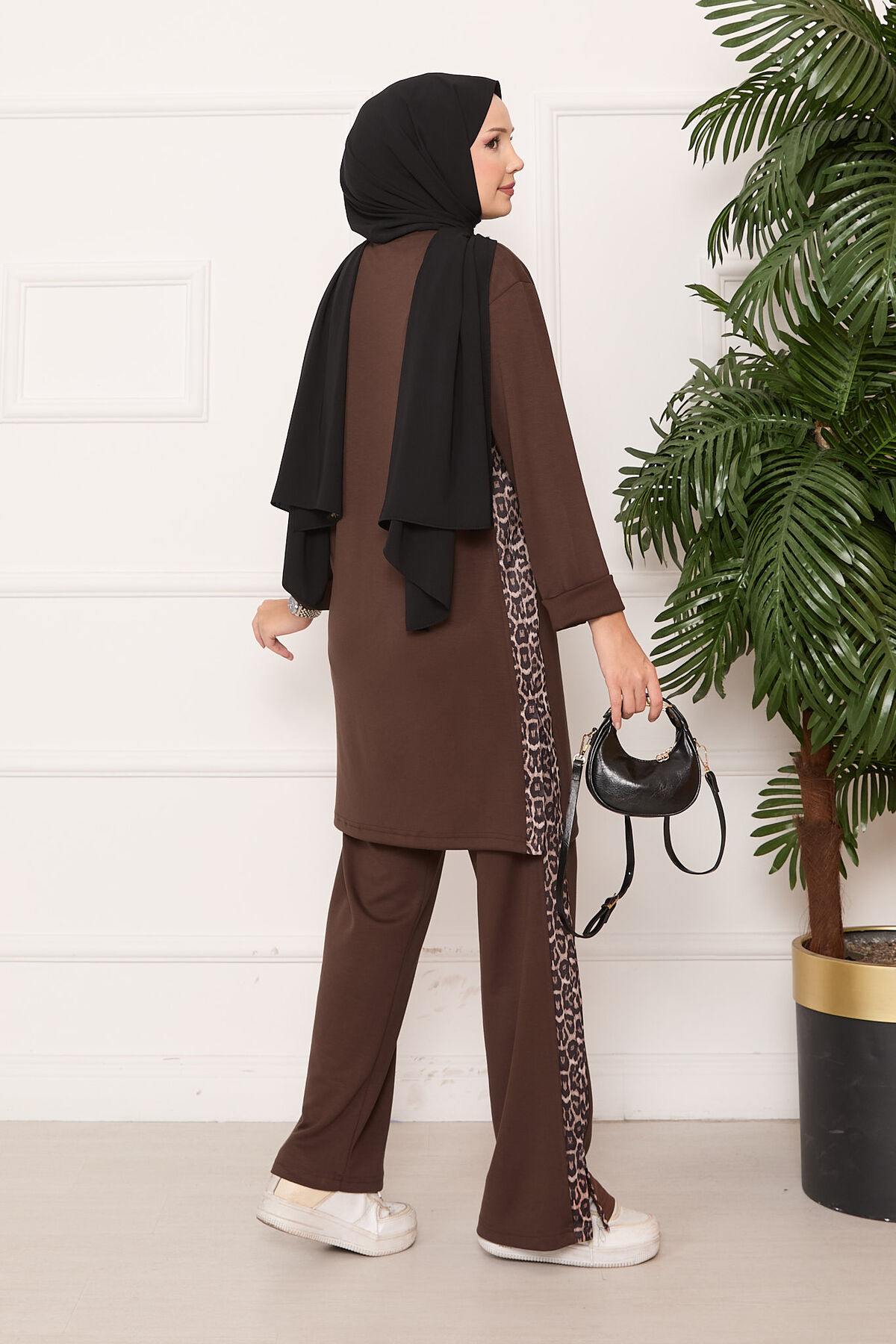 Leopar Şeritli Yırtmaçlı Oyşo Takım Kahve