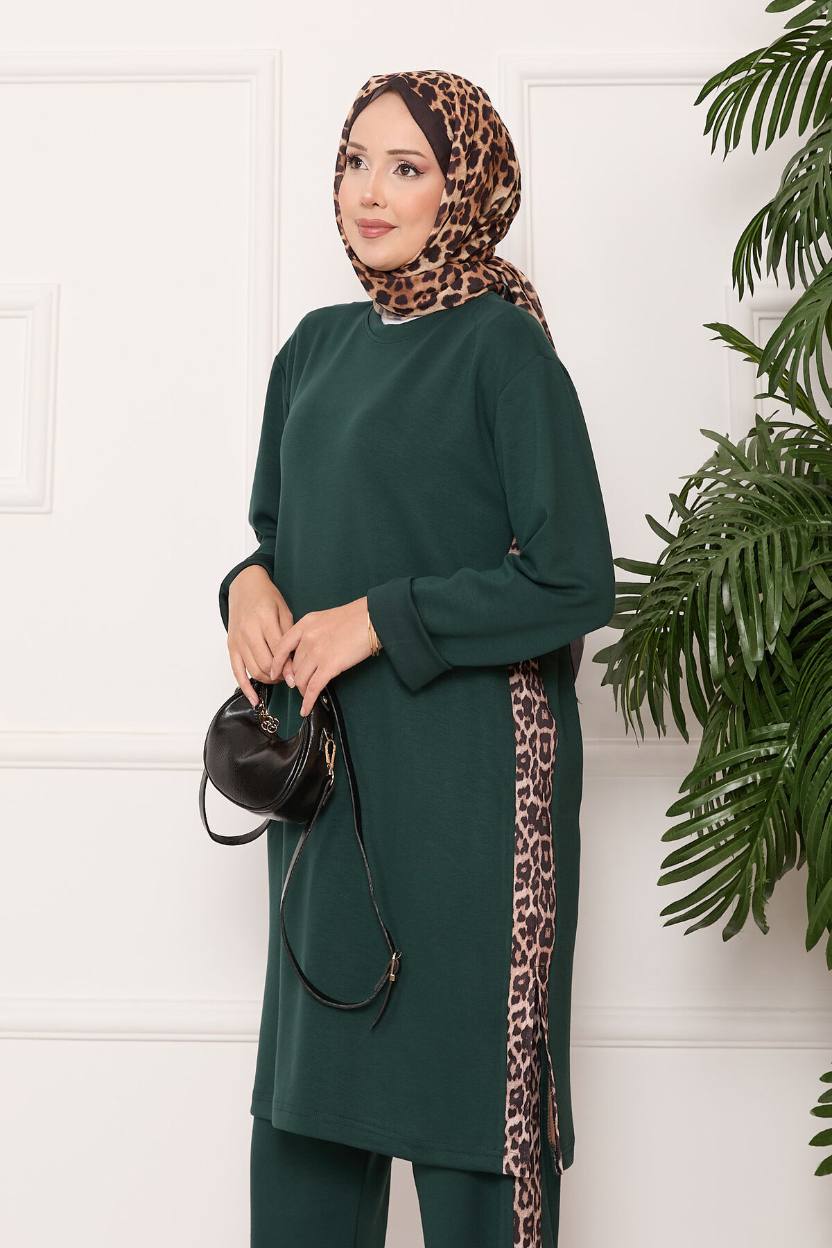 Leopar Şeritli Yırtmaçlı Oyşo Takım Zümrüt