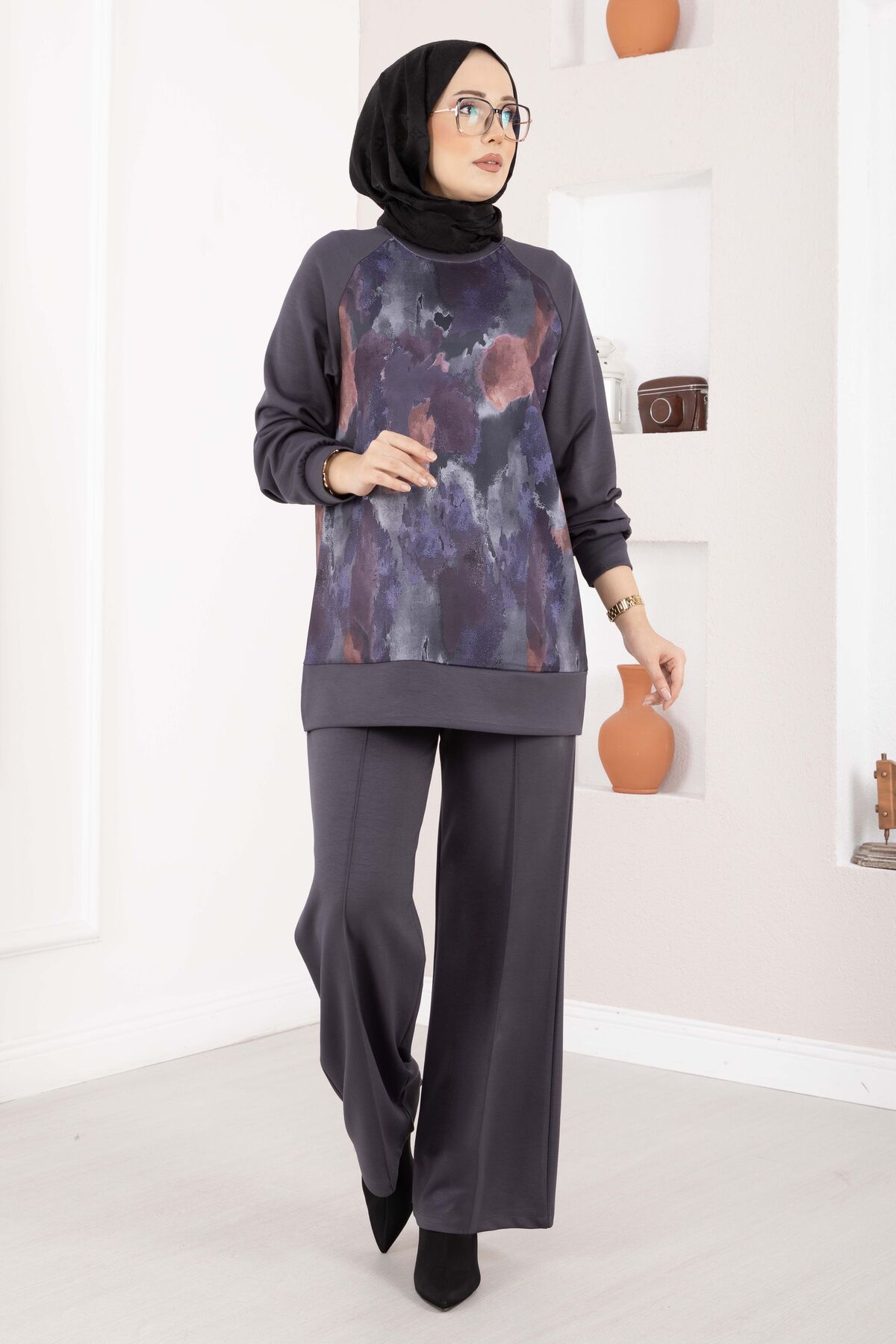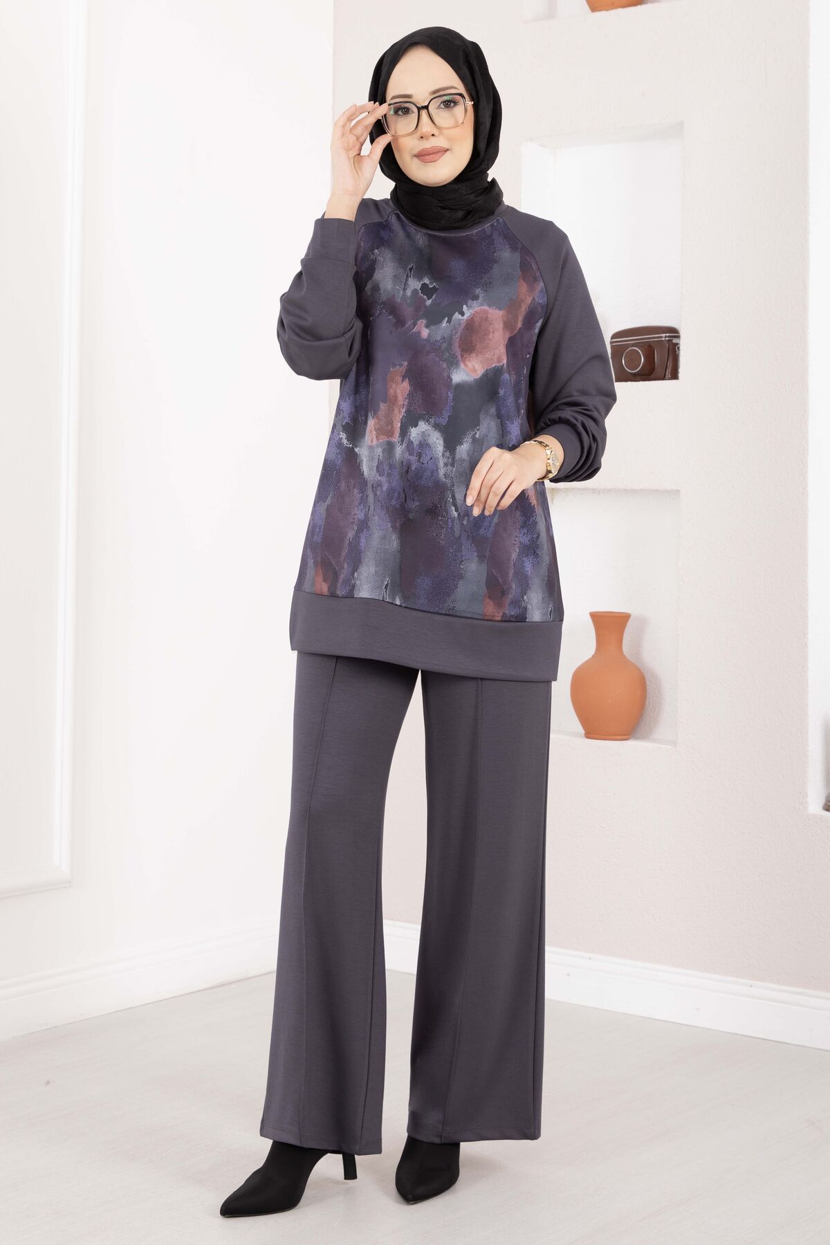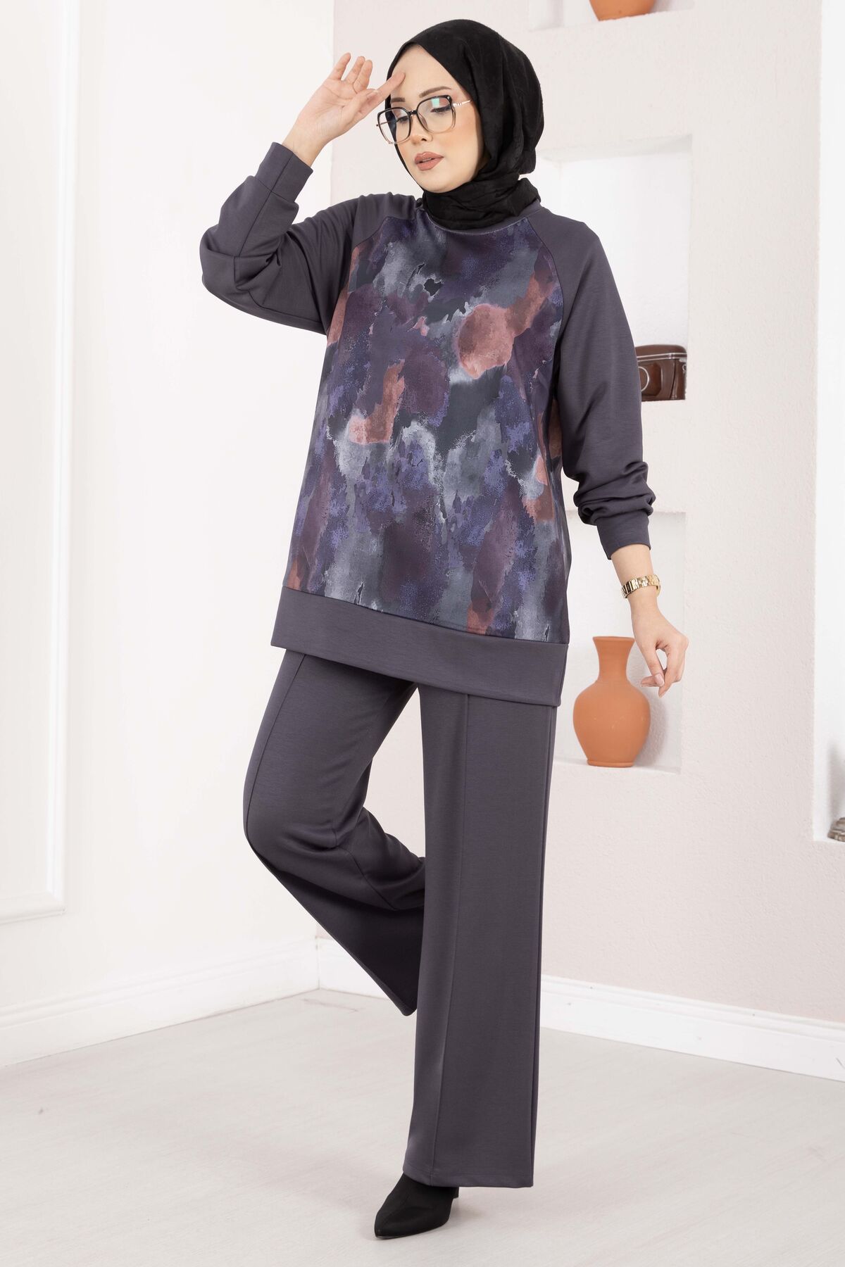 Modern desenleri ve rahat kalıbıyla öne çıkan Lina Desenli Tesettür İkili Takım, günlük şıklığı konforla buluşturur. Akıcı oysho kumaşı sayesinde gün boyu rahat bir kullanım sunarken, desenli tasarımı takıma zarif ve dinamik bir görünüm kazandırır. Tunik ve pantolondan oluşan iki parçalı yapısıyla pratik kombinler için idealdir.