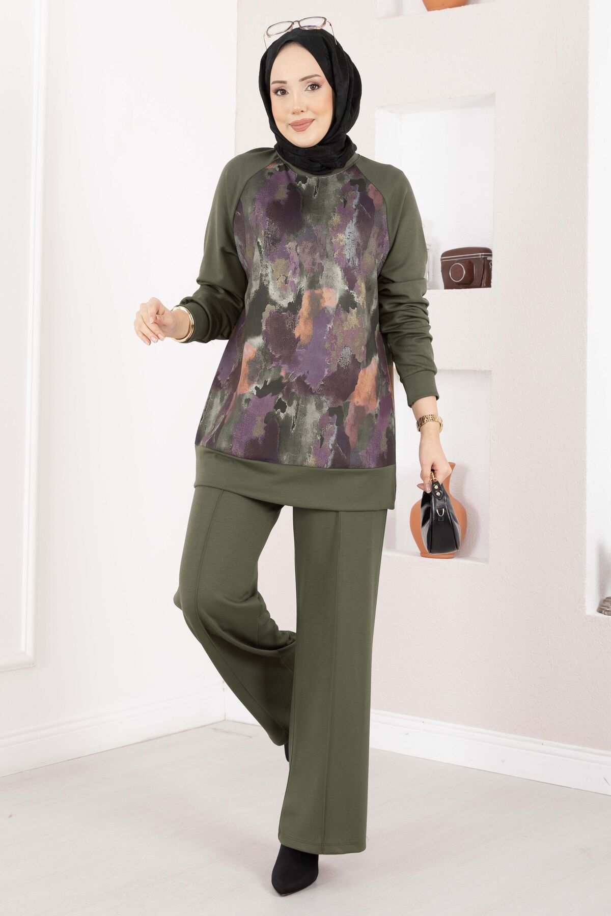 Modern desenleri ve rahat kalıbıyla öne çıkan Lina Desenli Tesettür İkili Takım, günlük şıklığı konforla buluşturur. Akıcı oysho kumaşı sayesinde gün boyu rahat bir kullanım sunarken, desenli tasarımı takıma zarif ve dinamik bir görünüm kazandırır. Tunik ve pantolondan oluşan iki parçalı yapısıyla pratik kombinler için idealdir.