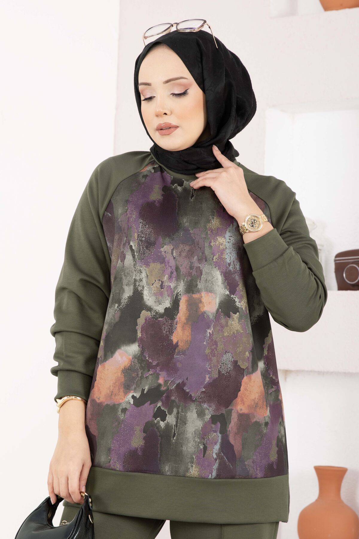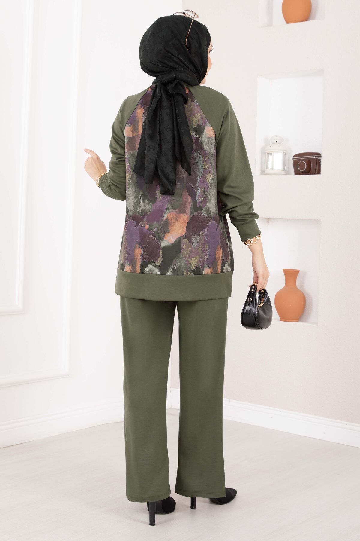 Lina Desenli Tesettür İkili Takım Haki