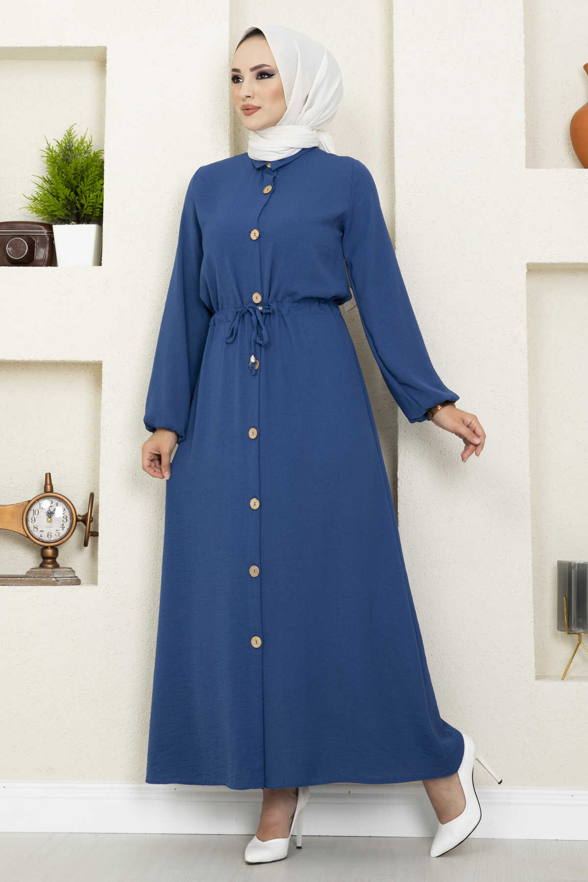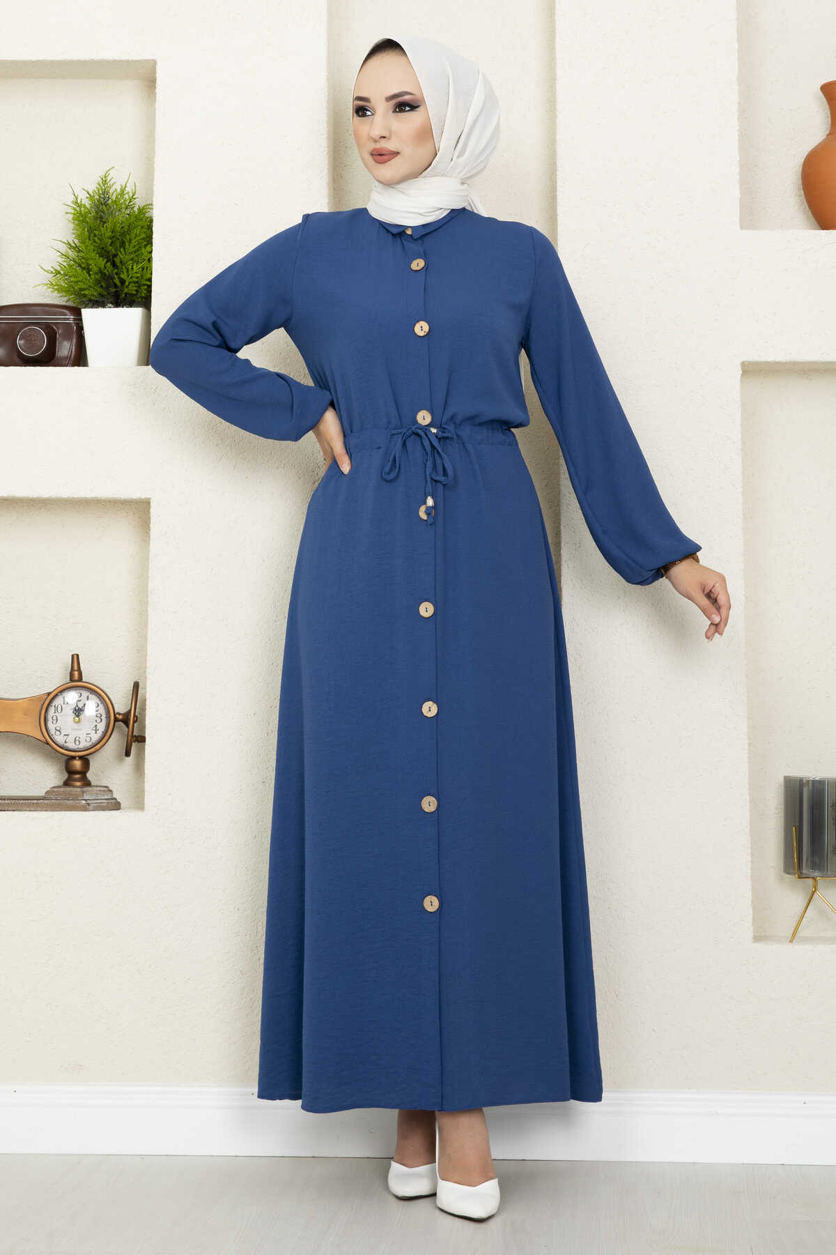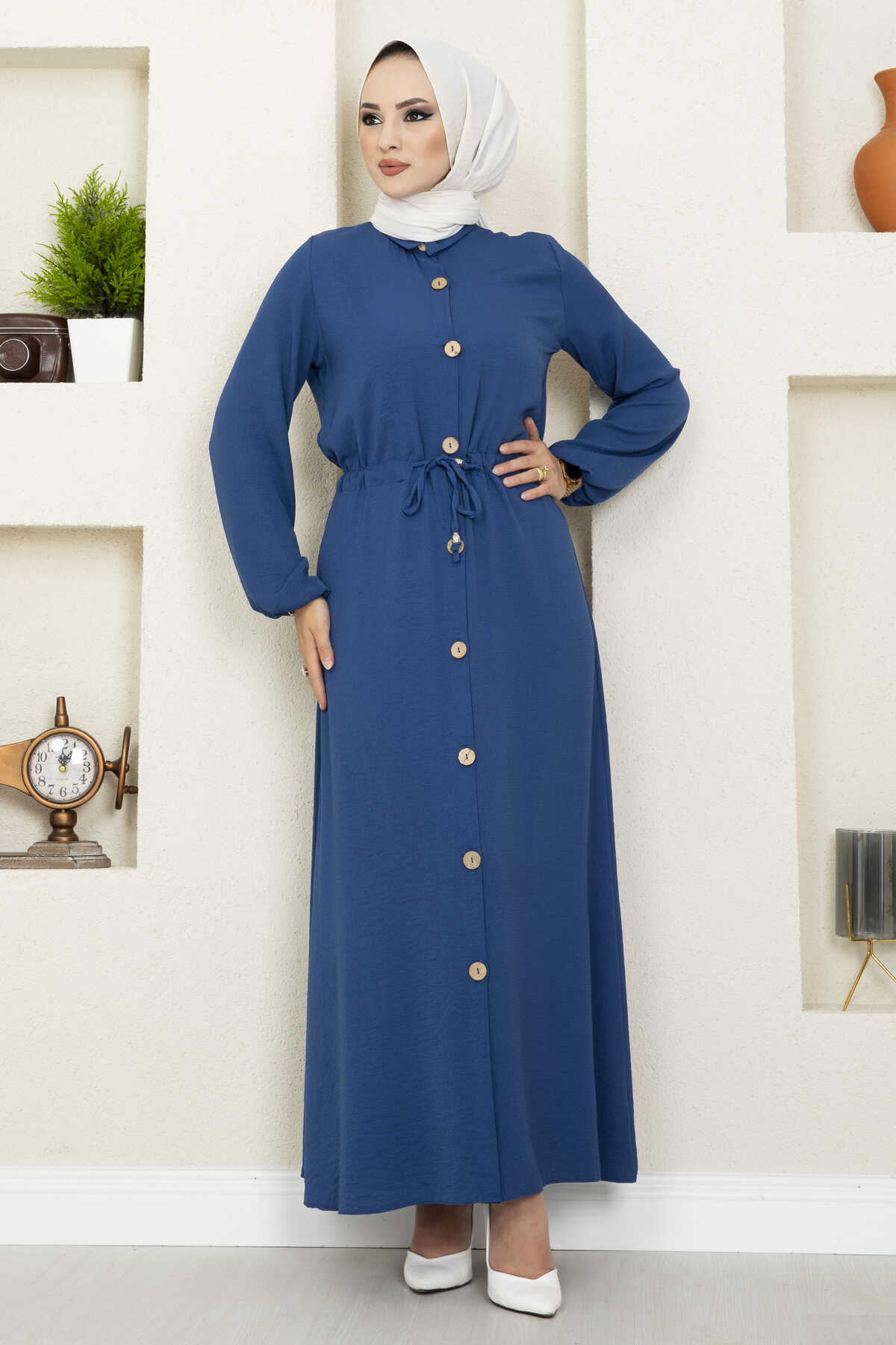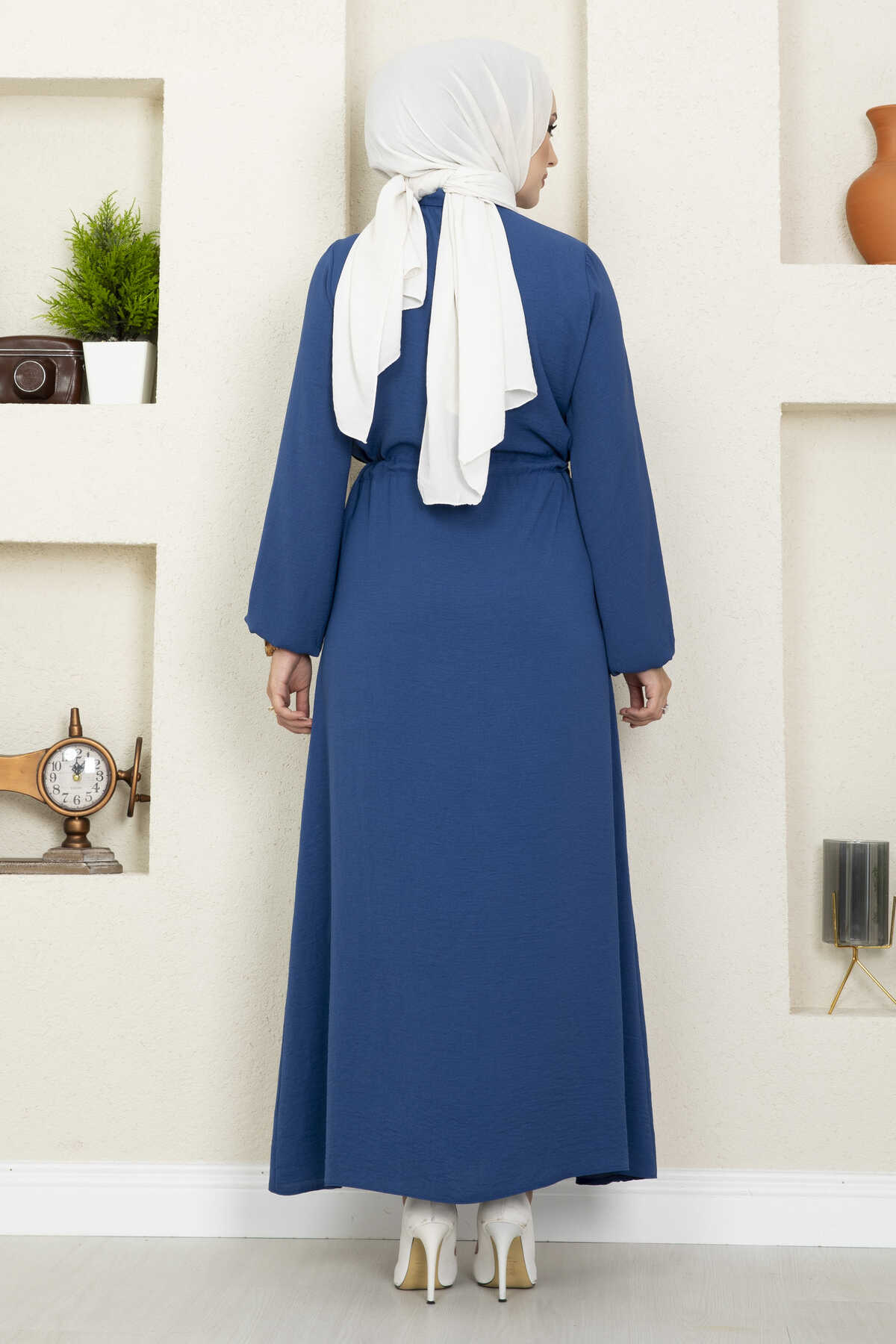 Linda Tünel Bağcıklı Tesettür Elbise İndigo