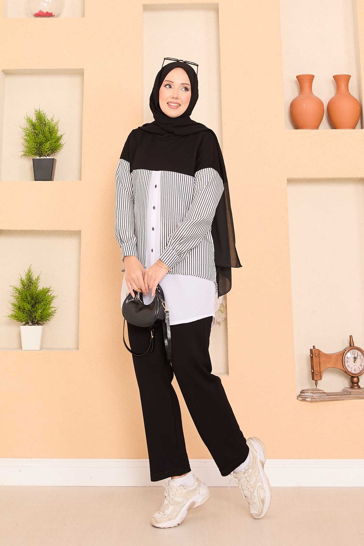 Loyşa Gömlek Garnili Tesettür İkili Takım Siyah