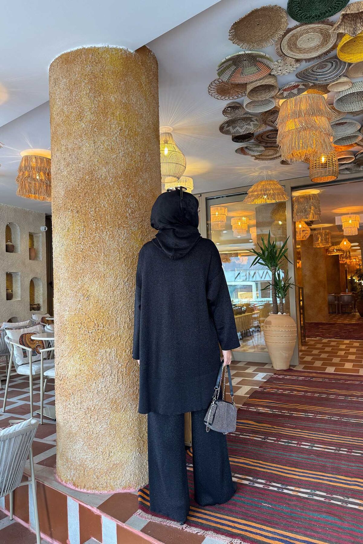 Lüks Taş Şeritli Simli Triko İkili Takım Siyah Yorumları