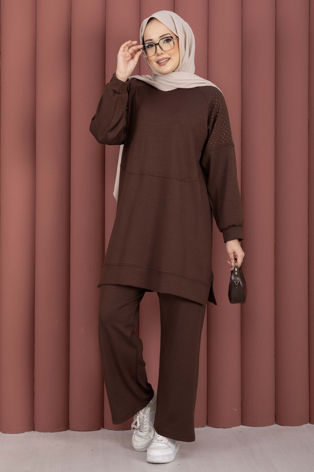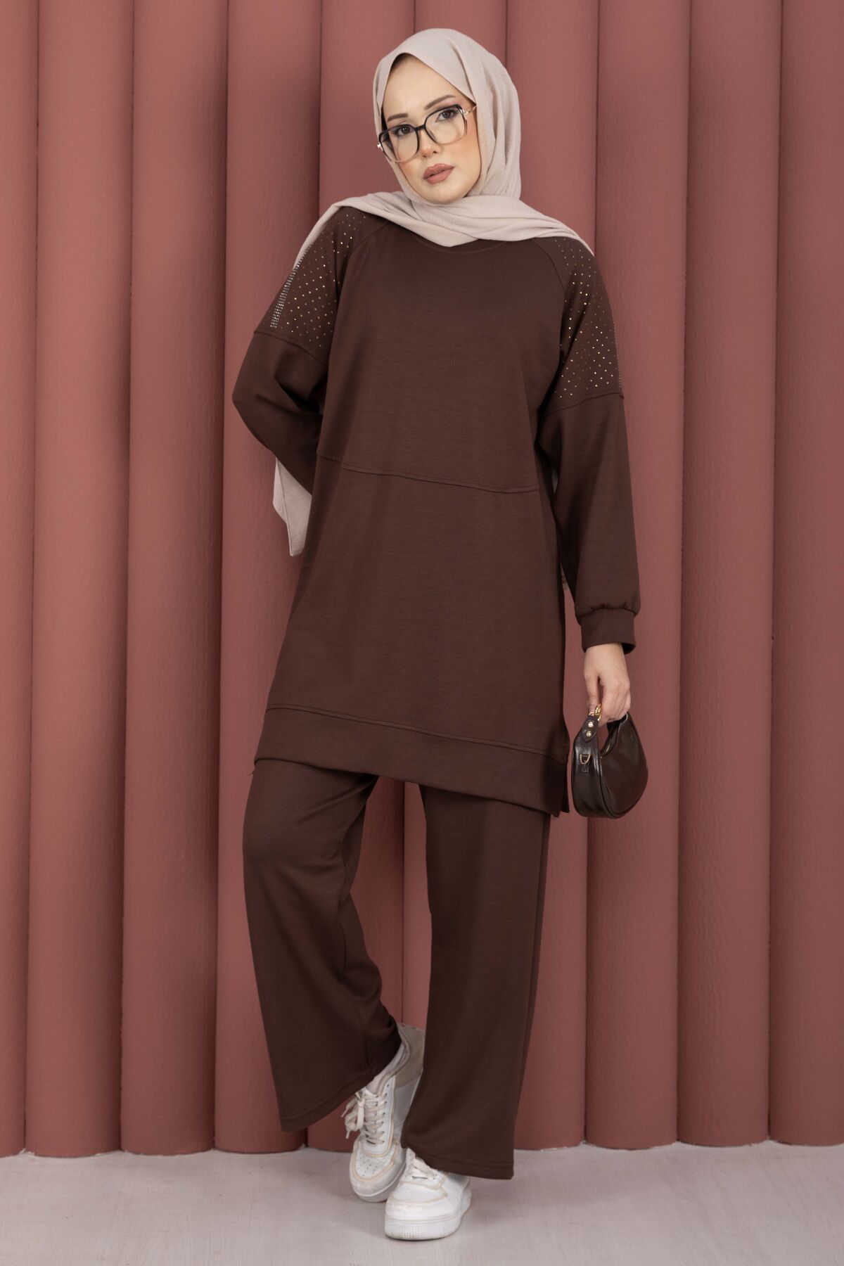Luna Taş Detaylı Oyşo İkili Takım Kahve