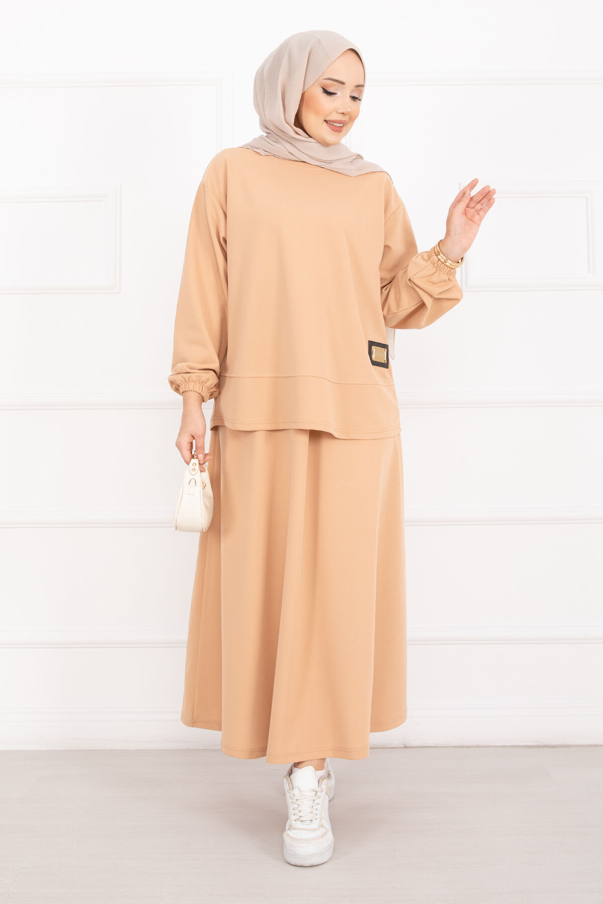 Luvia Gold Armalı Etekli Tesettür Takım Camel Yorumları
