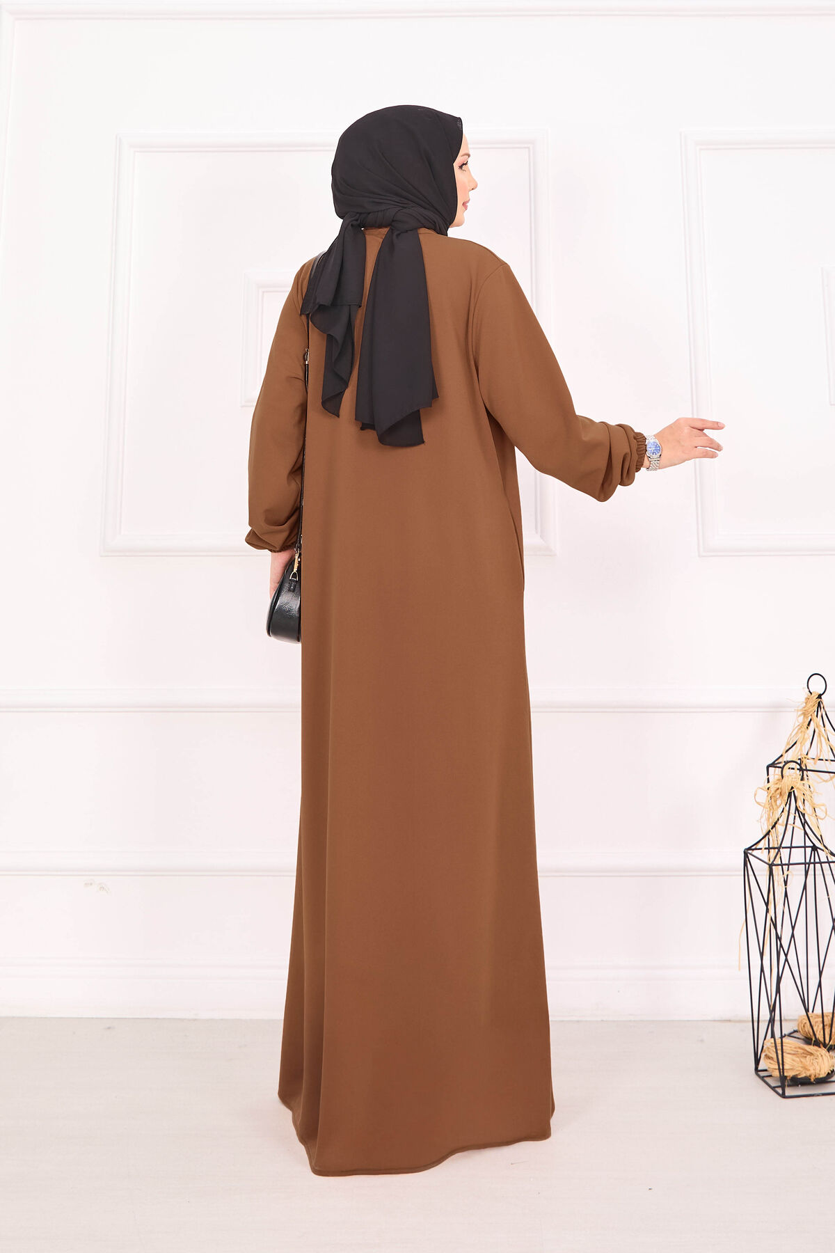 Manşeti Lastikli Cepli Tesettür Ferace Taba