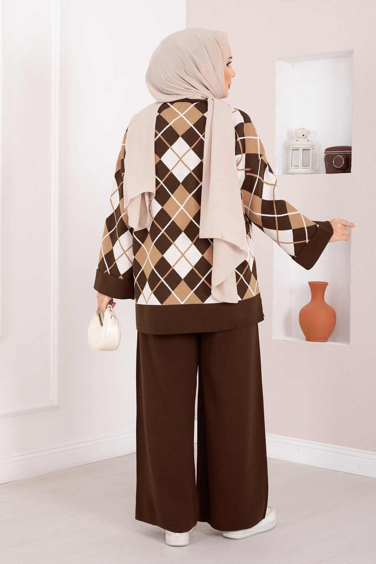 Milano Baklava Desen Tesettür Triko Takım Kahve