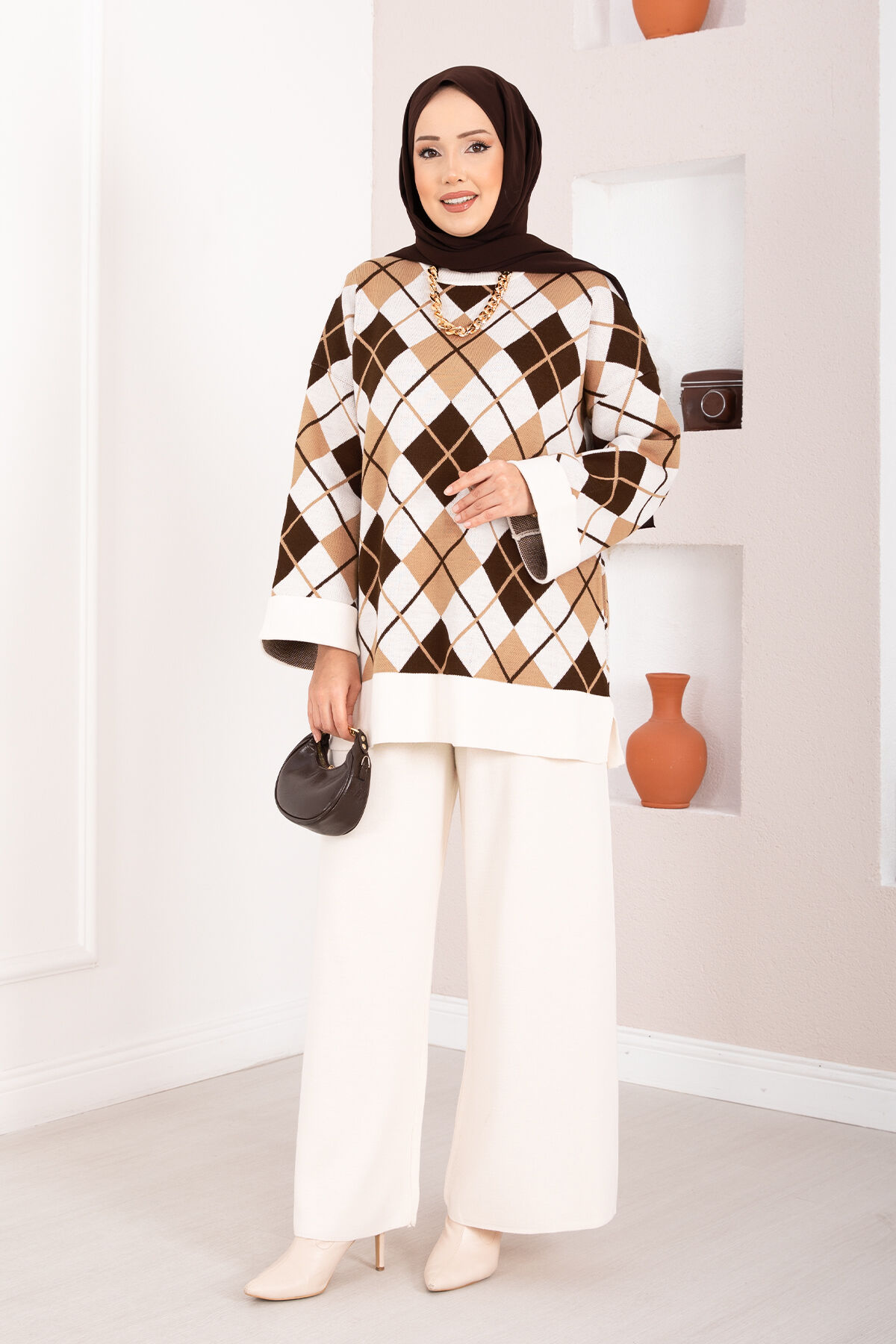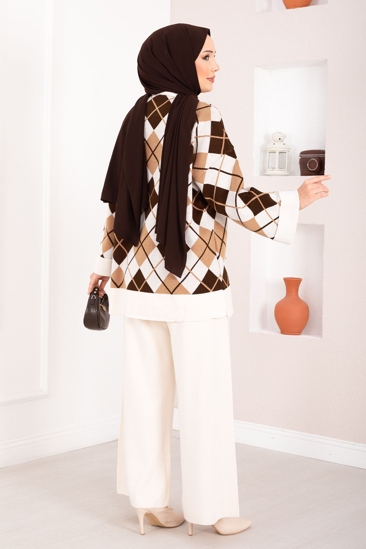 - Zarif baklava deseni ve modern kesimiyle öne çıkan Milano Baklava Desen Tesettür Triko Takım, şıklık ve konforu bir arada sunar. Pantolonlu tasarımıyla günlük kullanımdan ofis şıklığına kadar geniş bir kullanım alanı sunan takım, beli bağlama ipli yapısı sayesinde vücuda uyumlu ve rahat bir kullanım sağlar. Kol katlama detayları ise tasarıma modern ve dinamik bir hava katar.