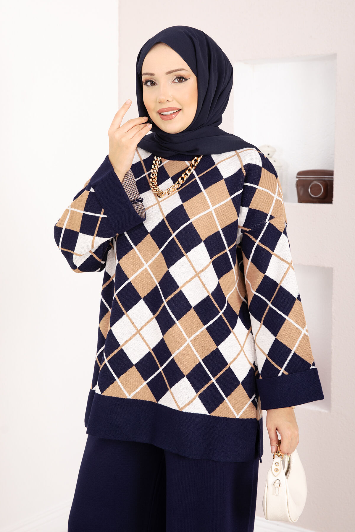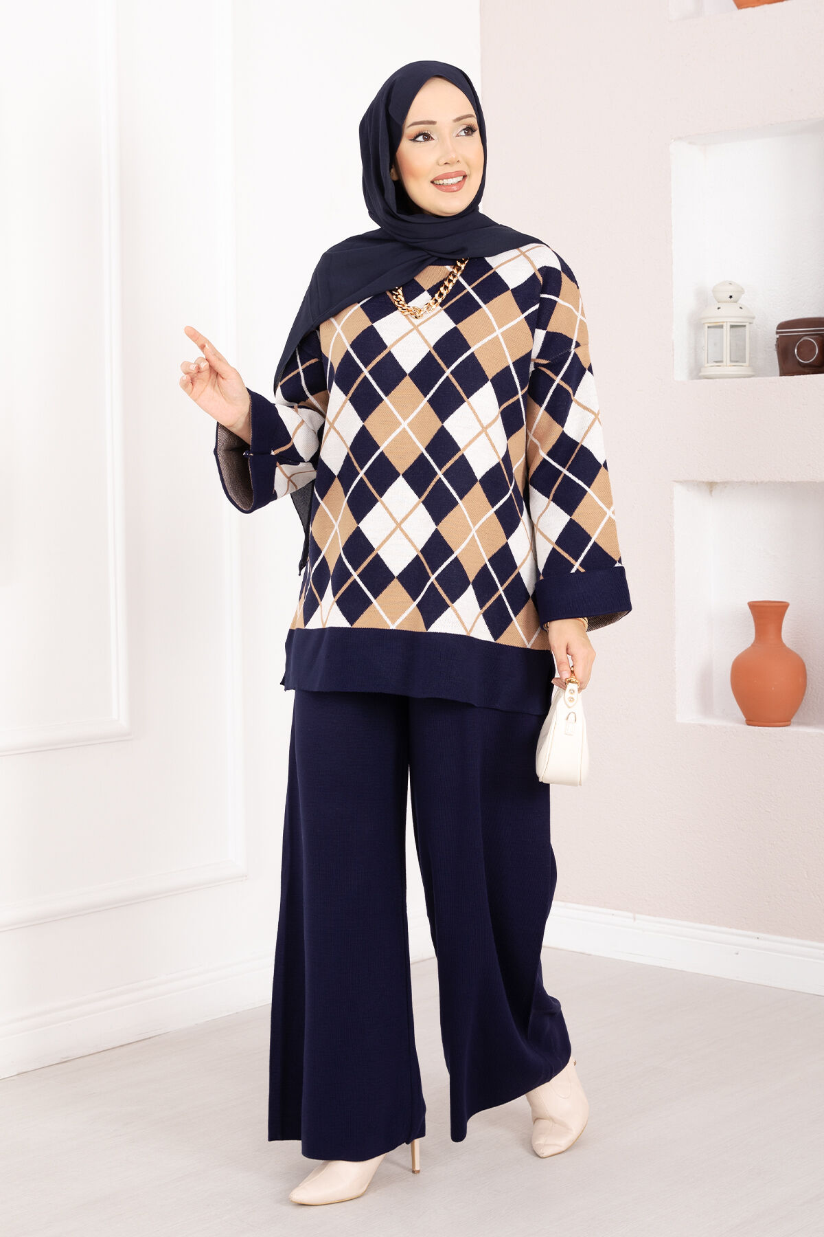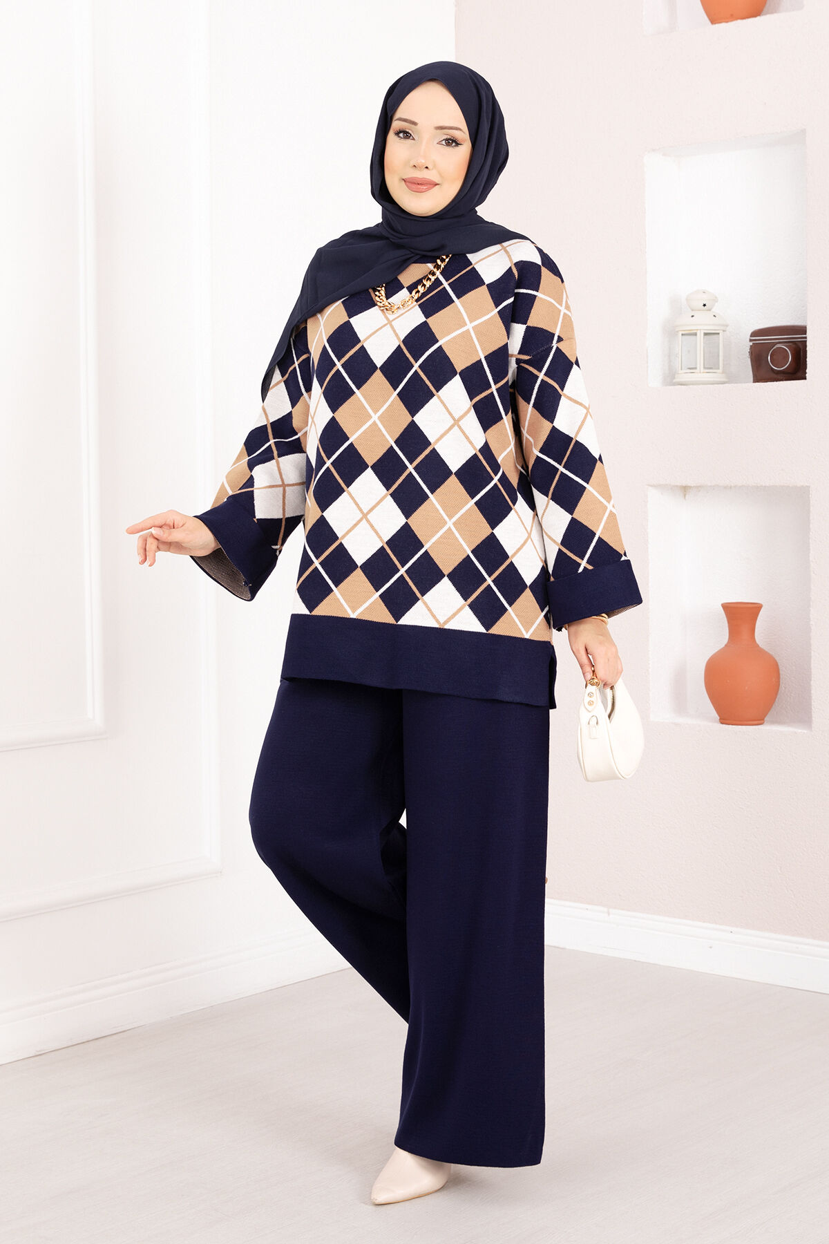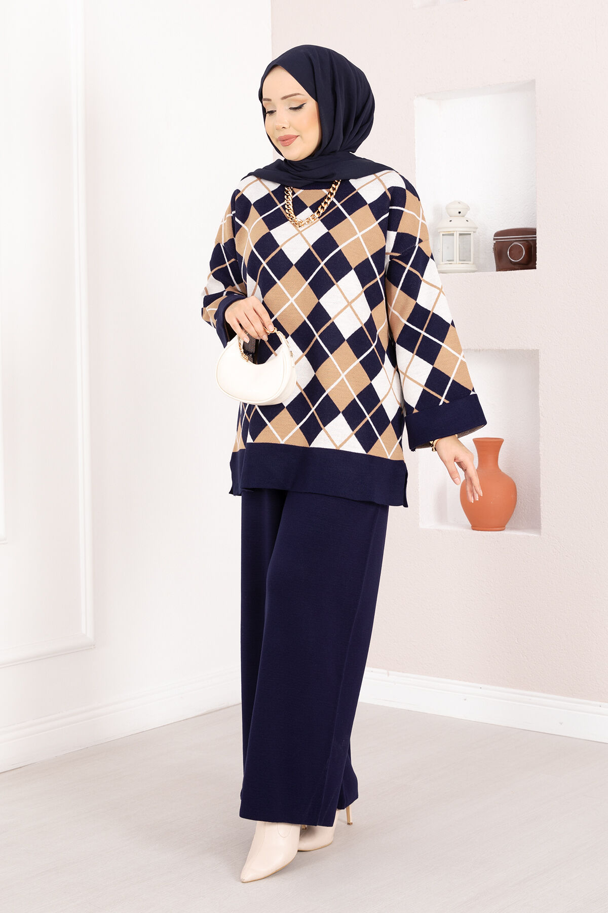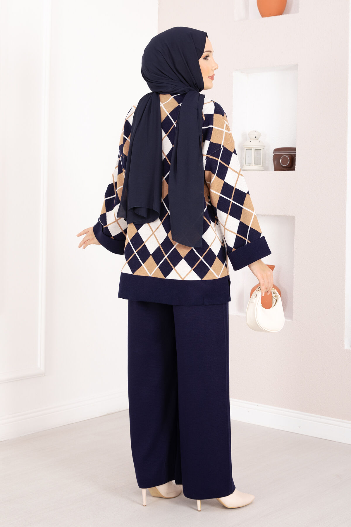 Milano Baklava Desen Tesettür Triko Takım Lacivert