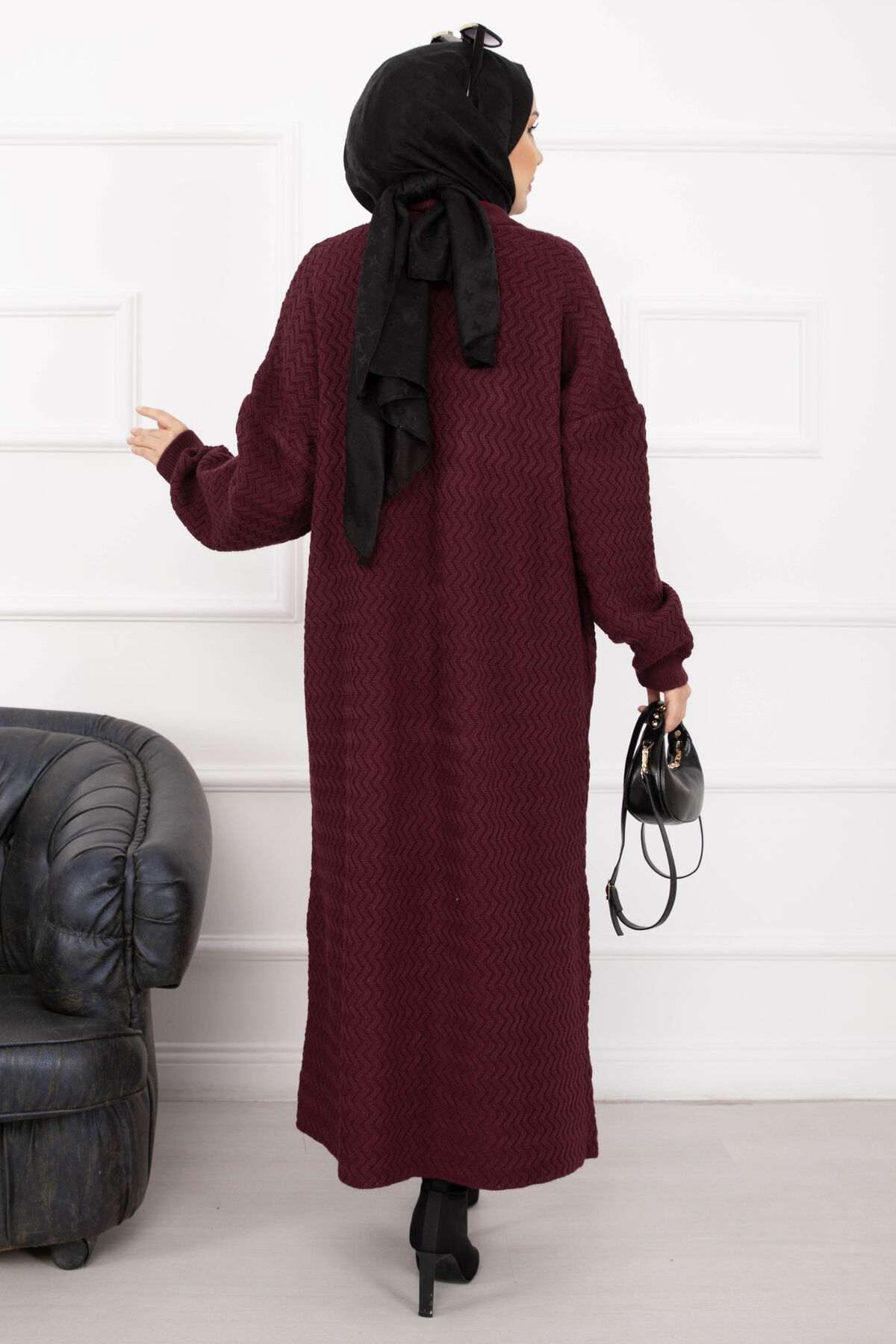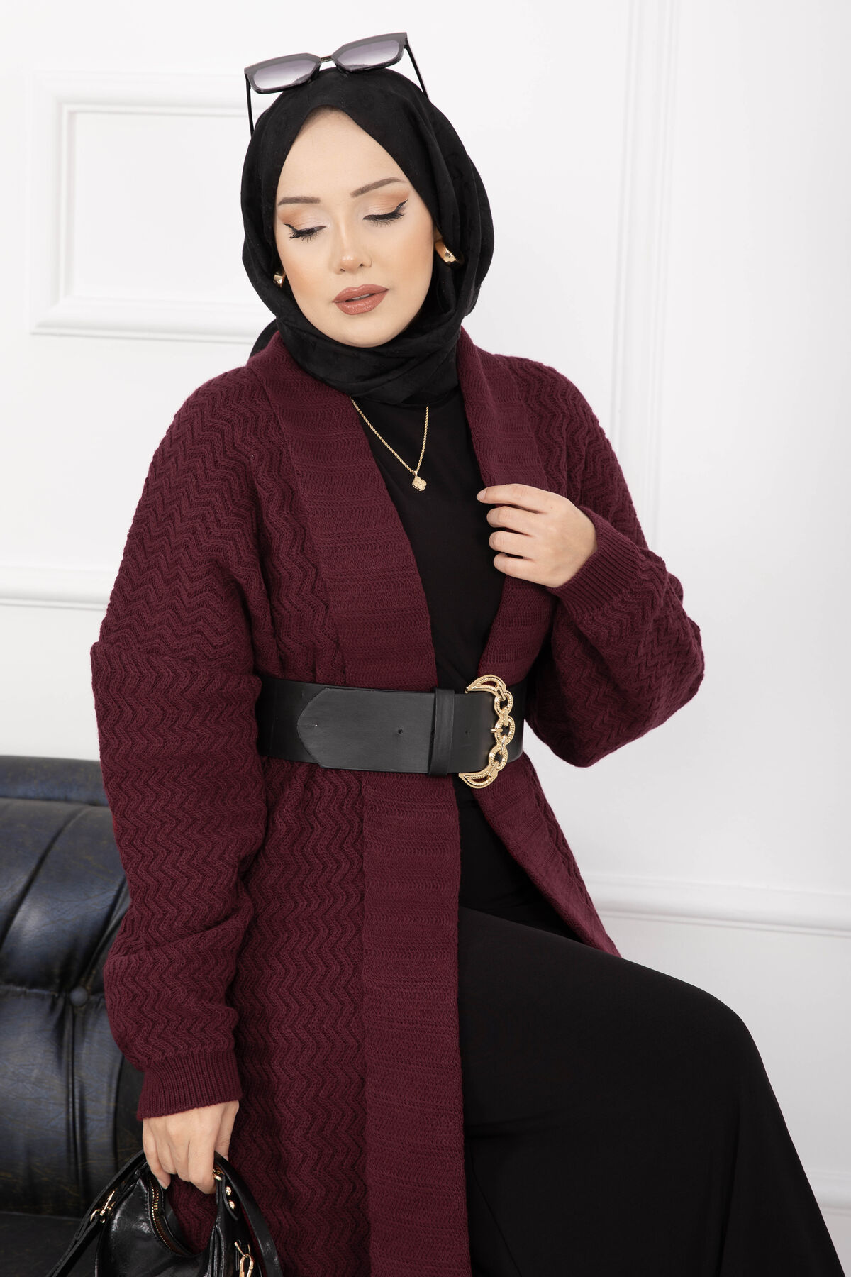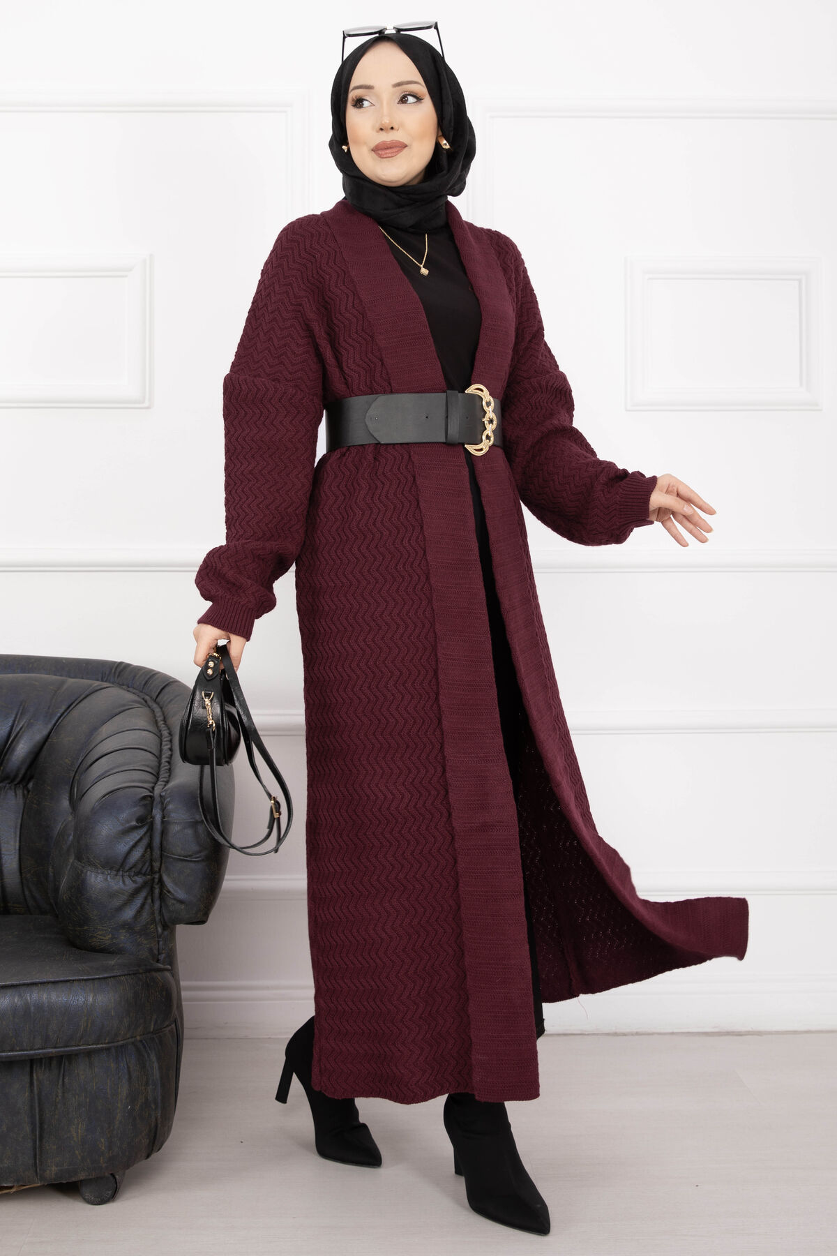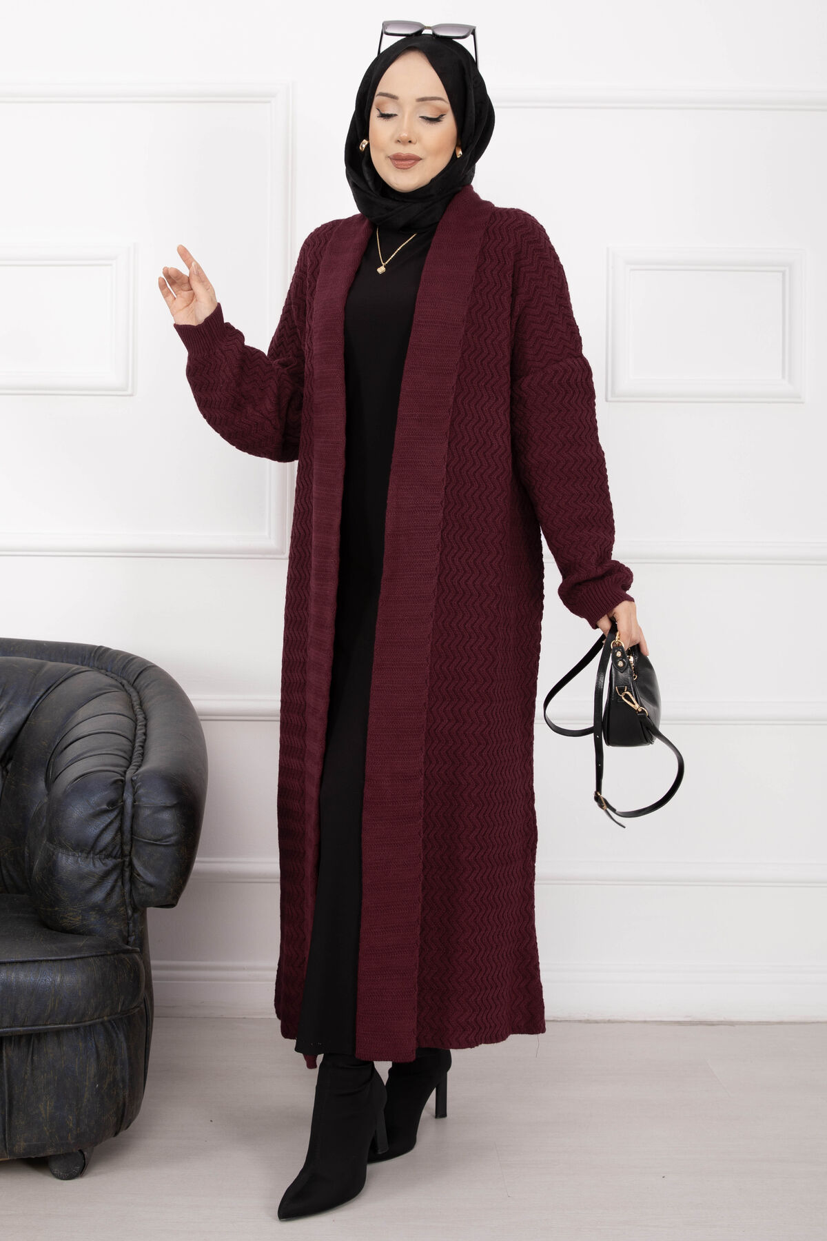 Mina Şal Yaka Uzun Triko Hırka Bordo
