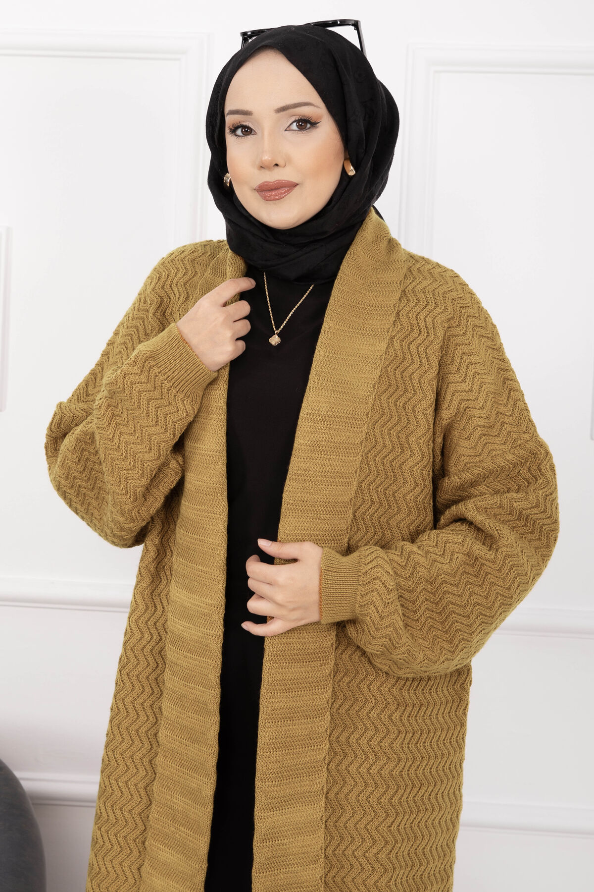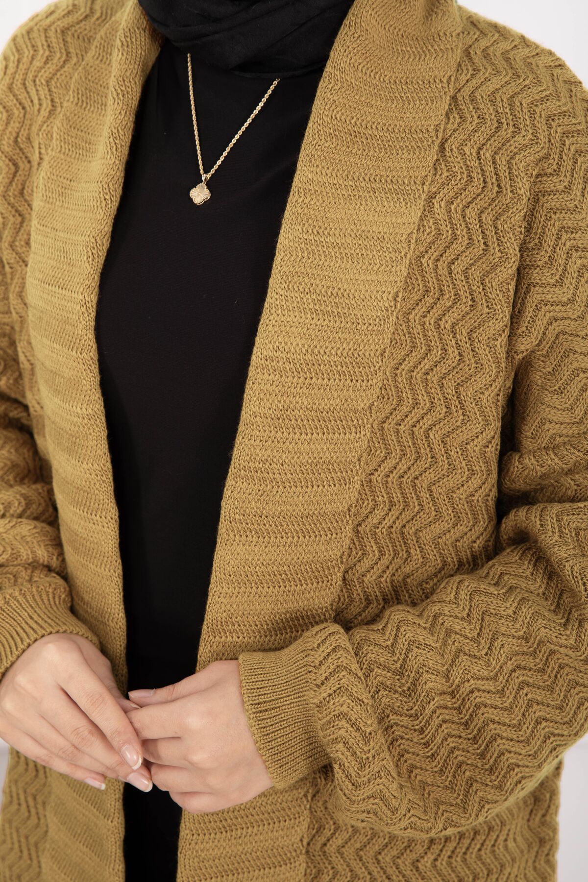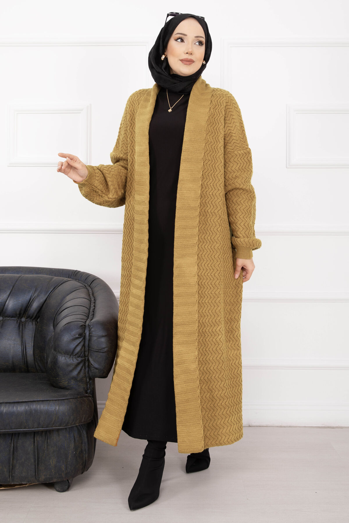 Mina Şal Yaka Uzun Triko Hırka Hardal