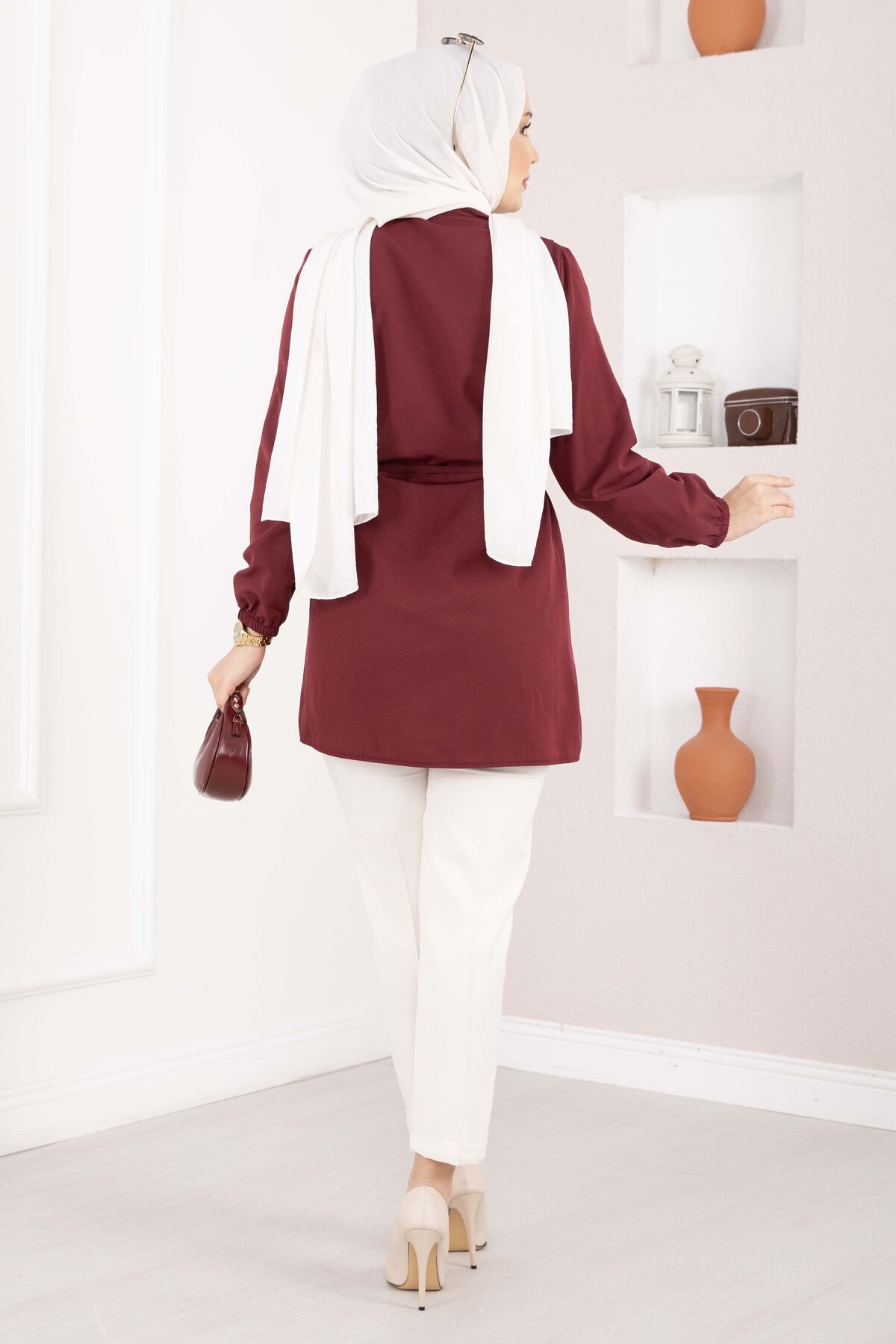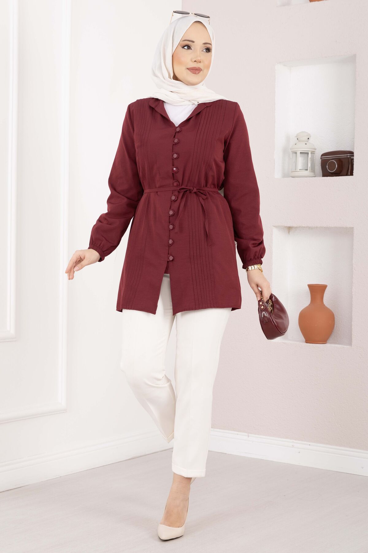Nervür Detaylı Bağcıklı Gömlek Bordo Yorumları