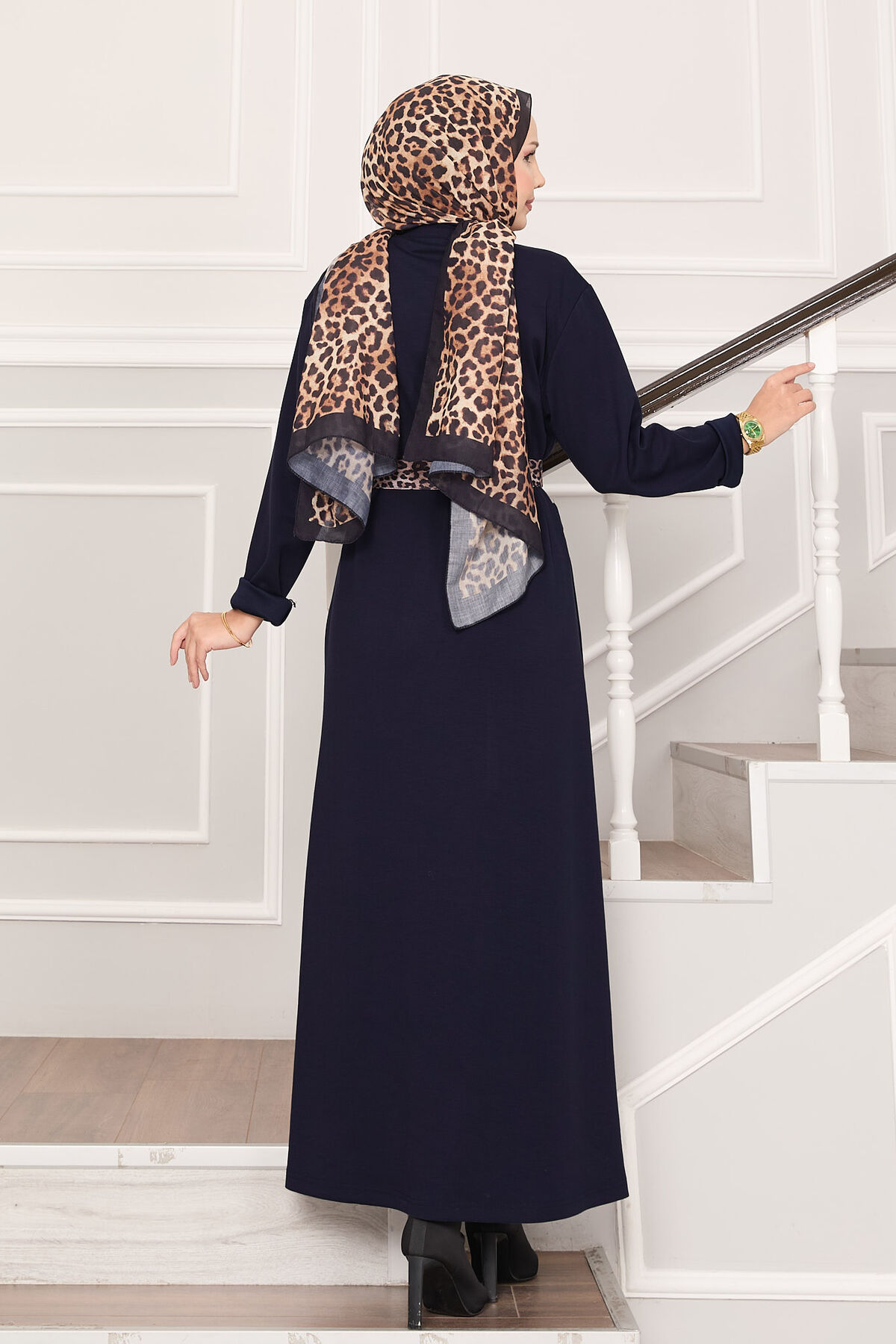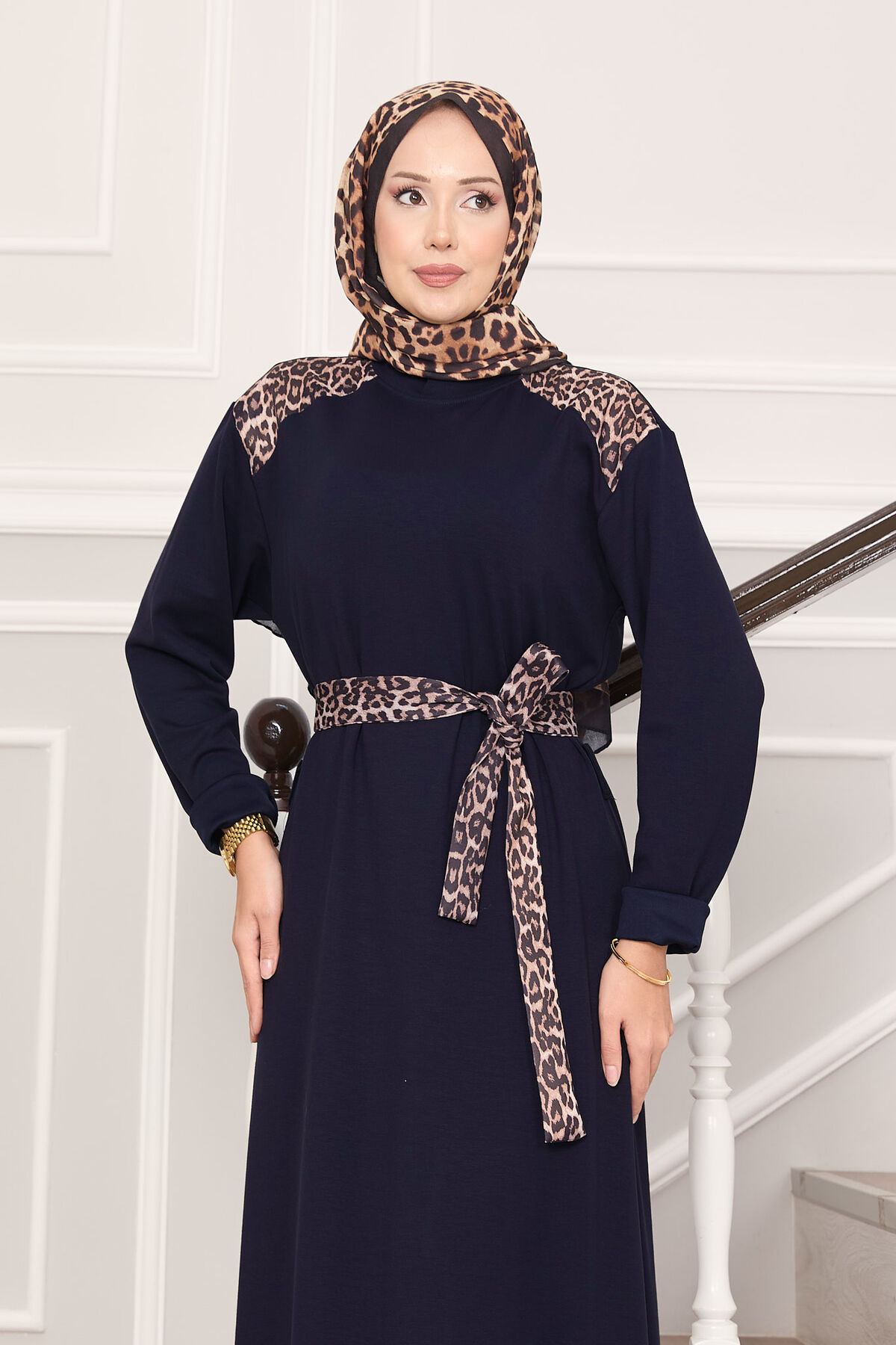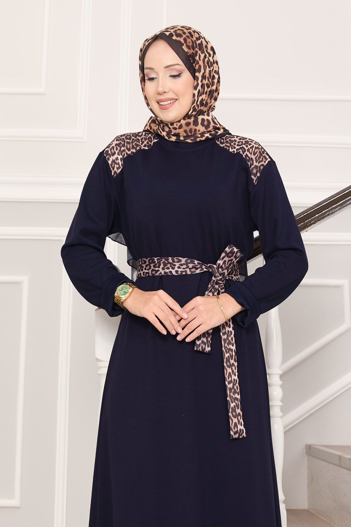 Omuz Leopar Garnili Kuşaklı Oyşo Elbise Lacivert Yorumları