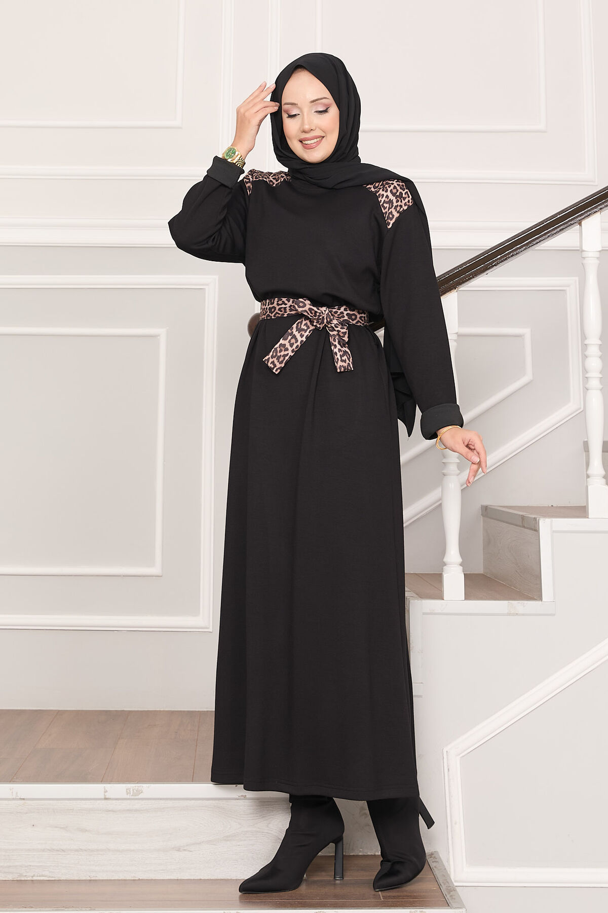 Omuz Leopar Garnili Kuşaklı Oyşo Elbise Siyah Yorumları